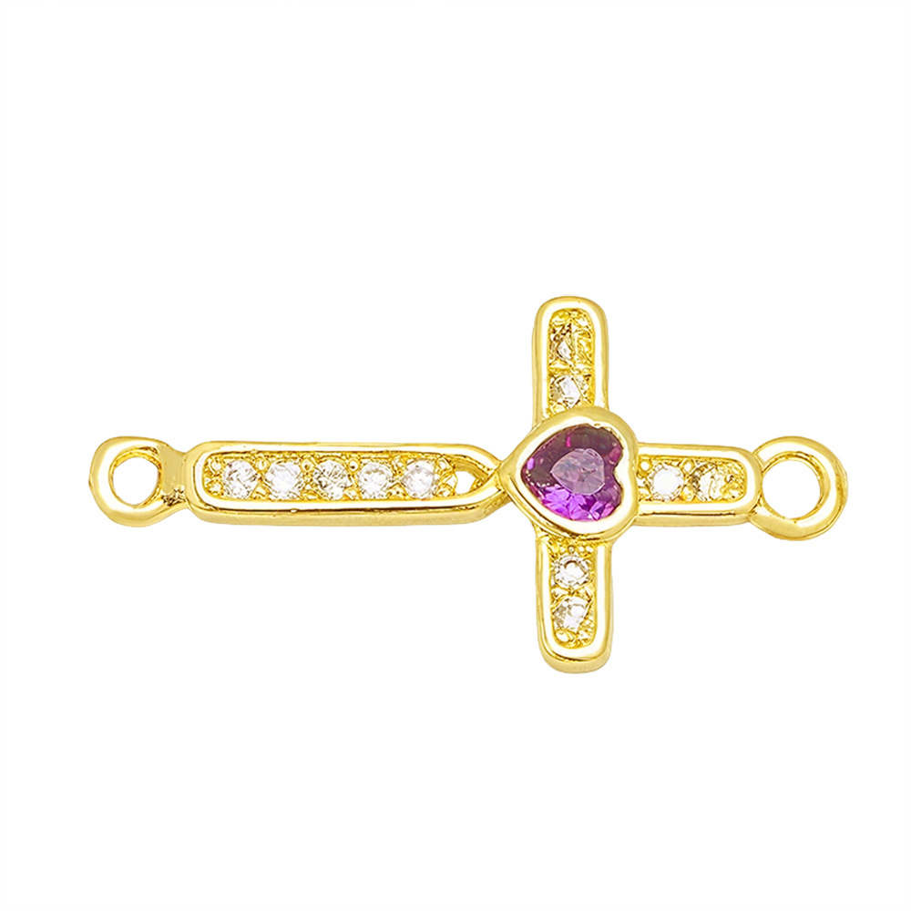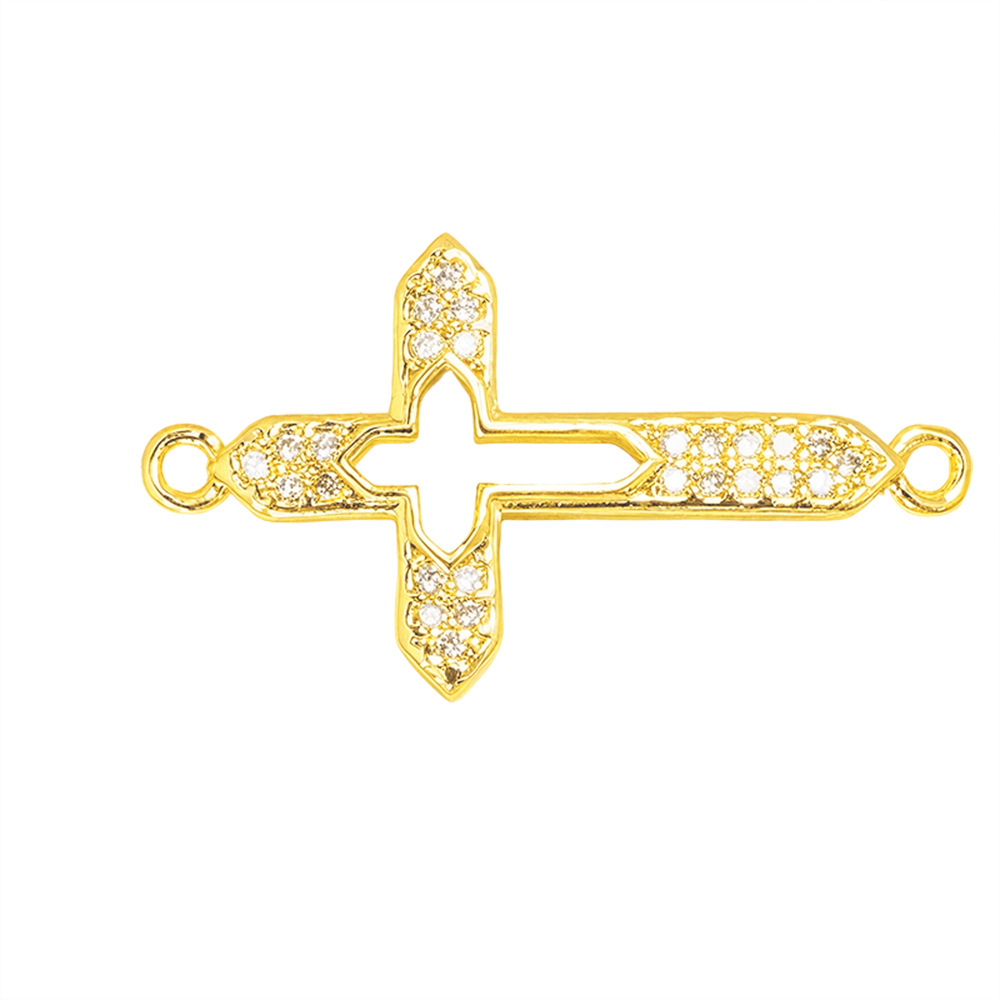 Cubic Zirconia Micro Pave Brass Connector, Cross, gold color plated, DIY & different styles for choice & micro pave cubic zirconia, Sold By PC