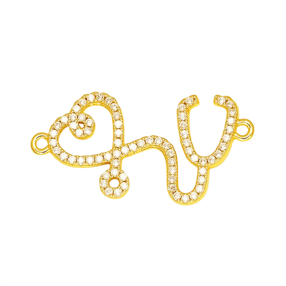 Cubic Zirconia Micro Pave Brass Connector, gold color plated, fashion jewelry & DIY & micro pave cubic zirconia & for woman, golden Approx 1mm