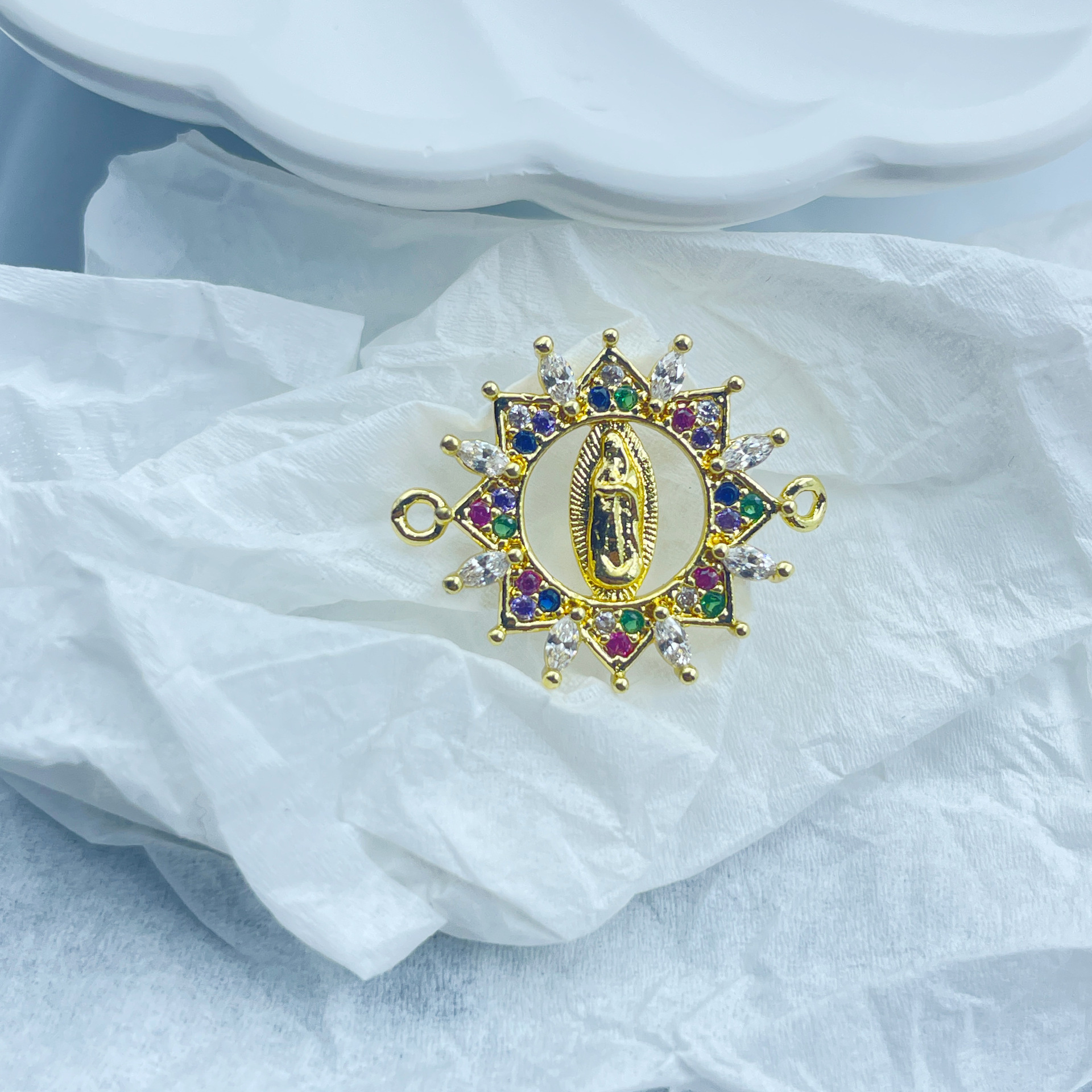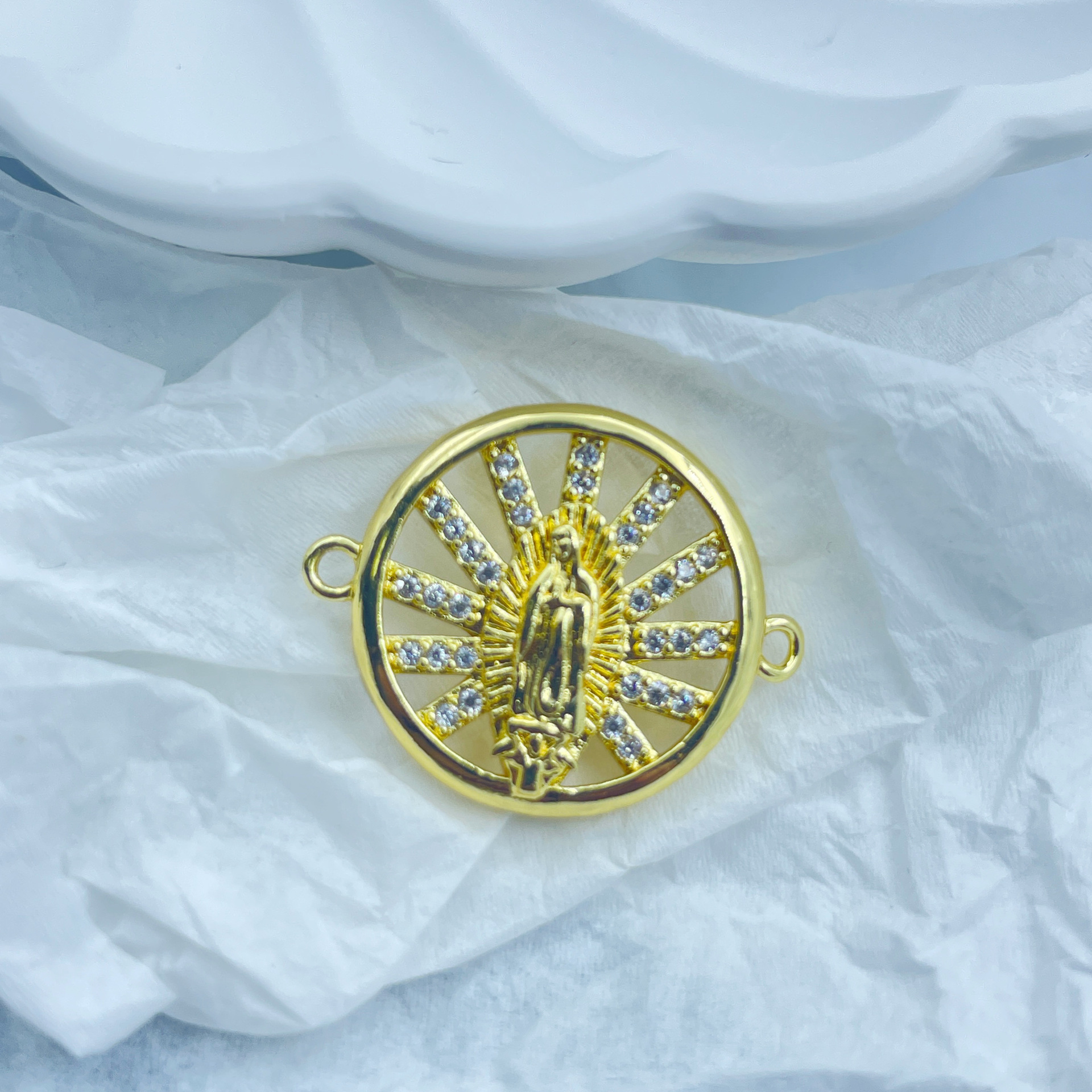Cubic Zirconia Micro Pave Brass Connector, Virgin Mary, gold color plated, DIY & different styles for choice & micro pave cubic zirconia & hollow, Sold By PC