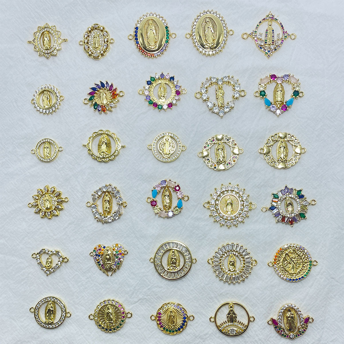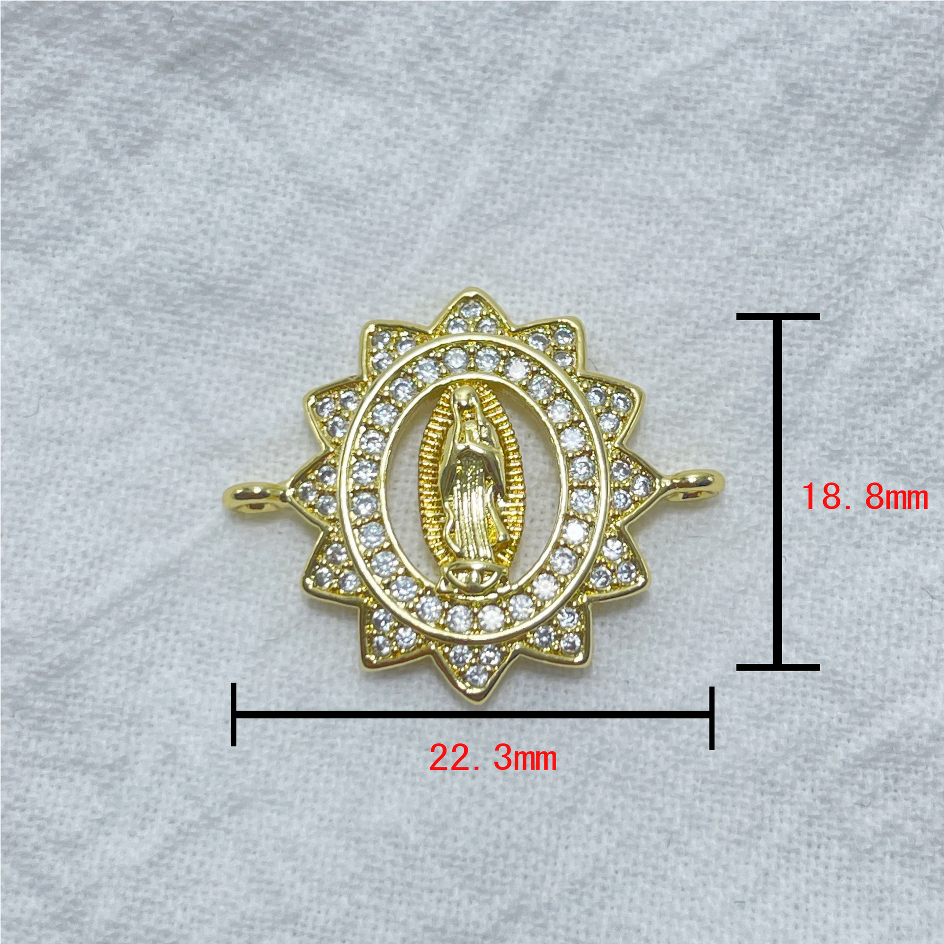 Cubic Zirconia Micro Pave Brass Connector, Virgin Mary, gold color plated, DIY & different styles for choice & micro pave cubic zirconia & hollow, Sold By PC
