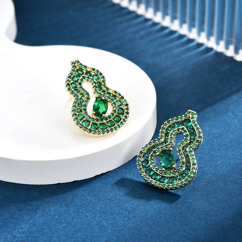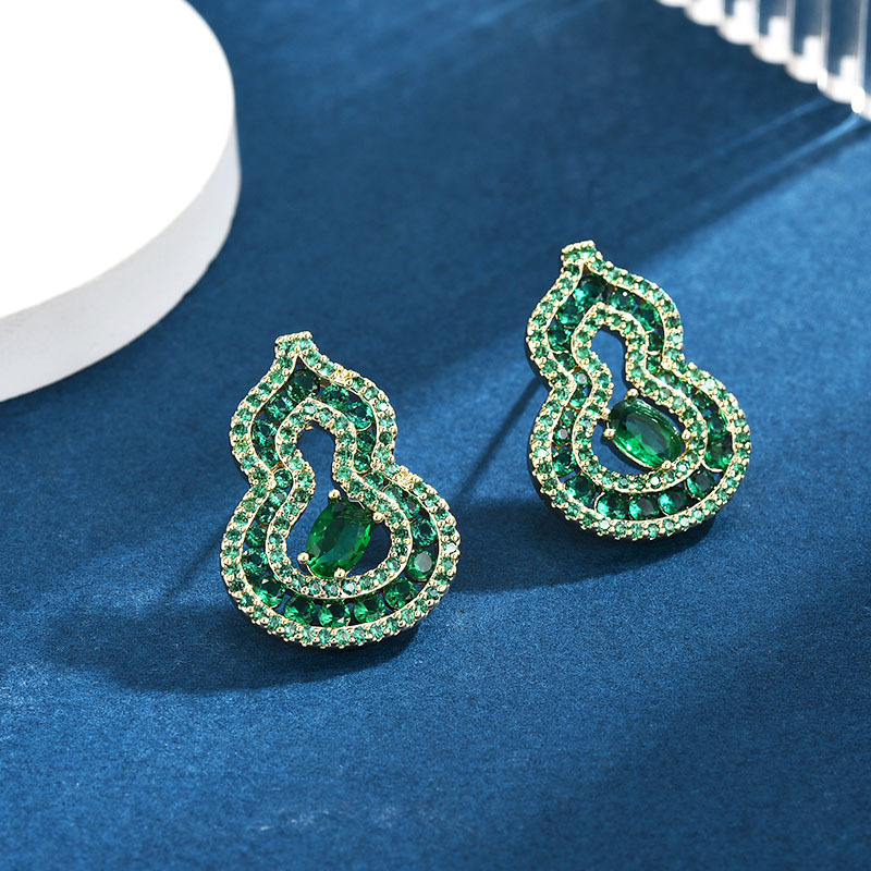 Cubic Zirconia Micro Pave Brass Earring, micro pave cubic zirconia & for woman, green, 15x21mm, Sold By Pair