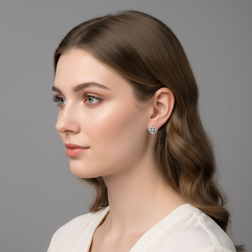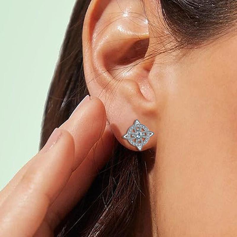 Cubic Zirconia Micro Pave Brass Earring, silver color plated, micro pave cubic zirconia & for woman, 12.8x12.8mm, Sold By Pair