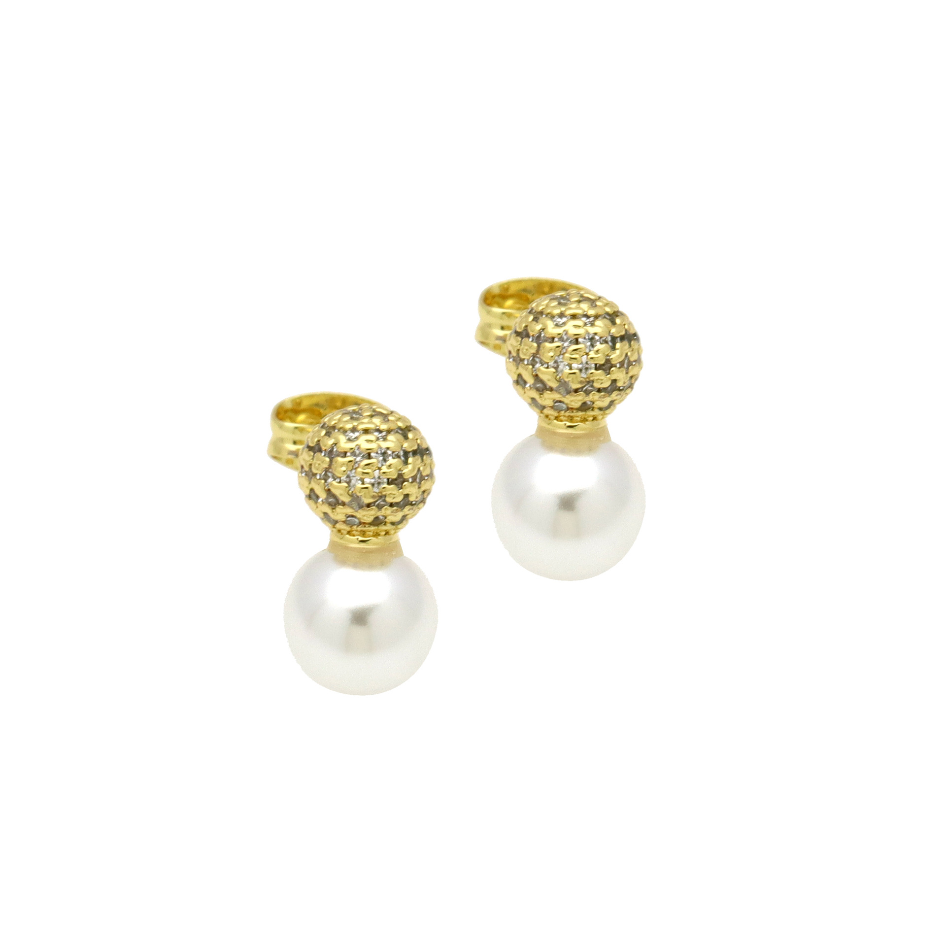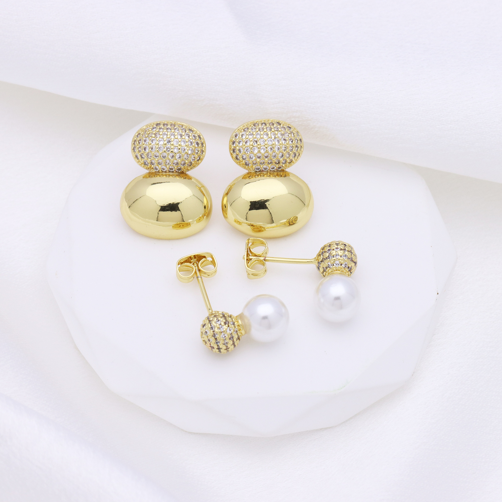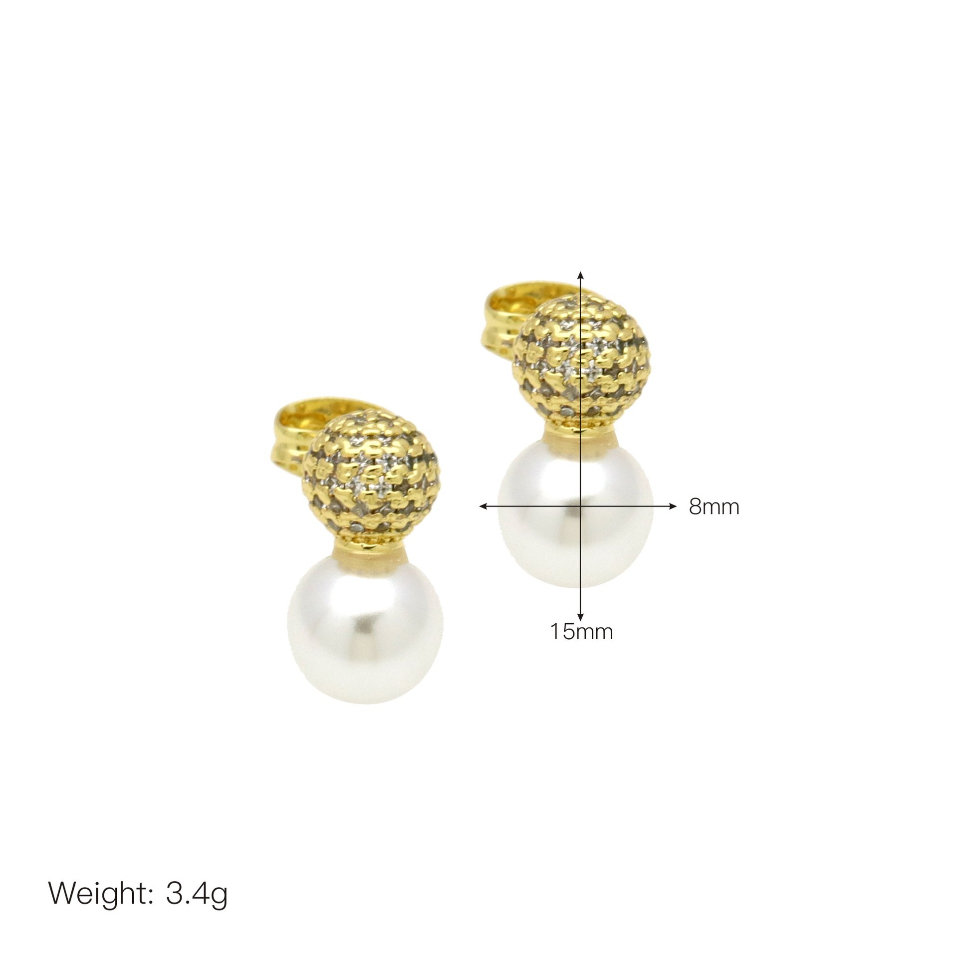 Cubic Zirconia Micro Pave Brass Earring, with Plastic Pearl, gold color plated, different styles for choice & micro pave cubic zirconia & for woman, more colors for choice, Sold By Pair