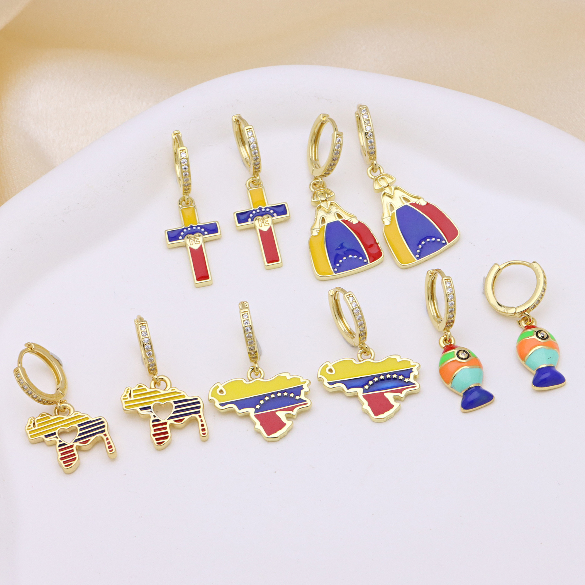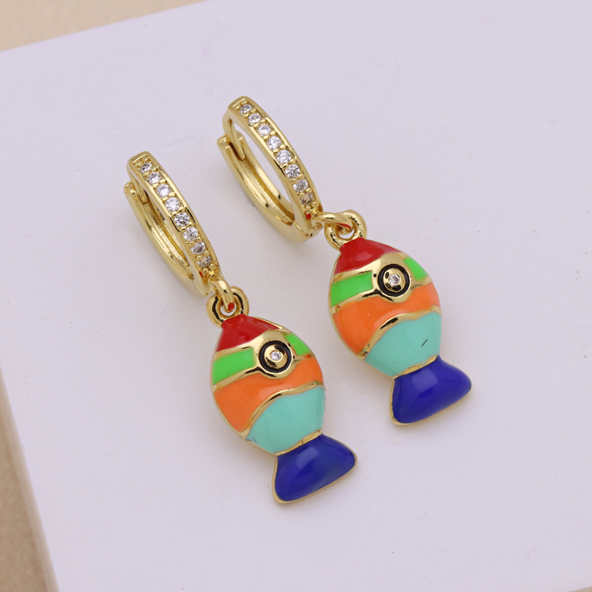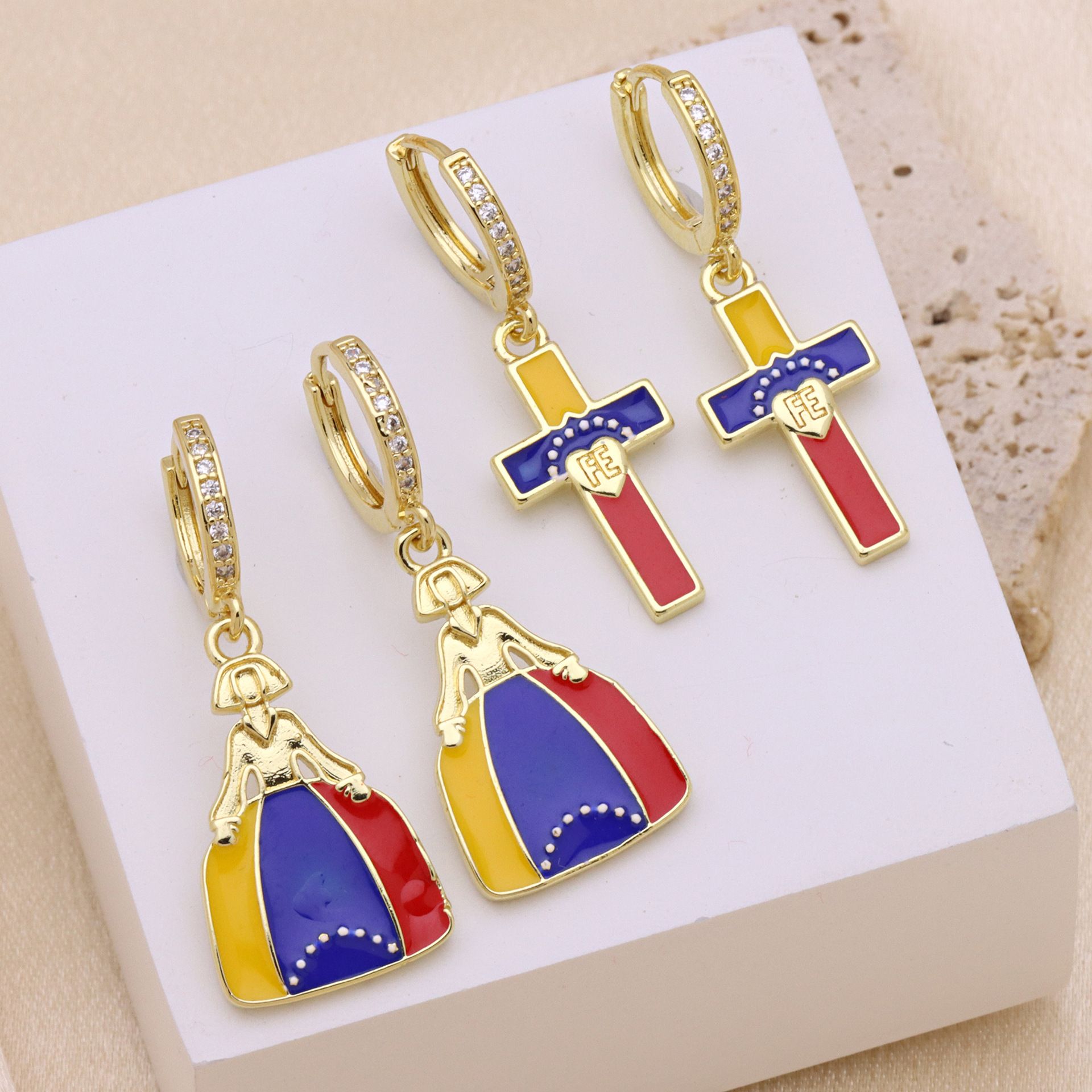 Cubic Zirconia Micro Pave Brass Earring, plated, fashion jewelry & micro pave cubic zirconia & enamel