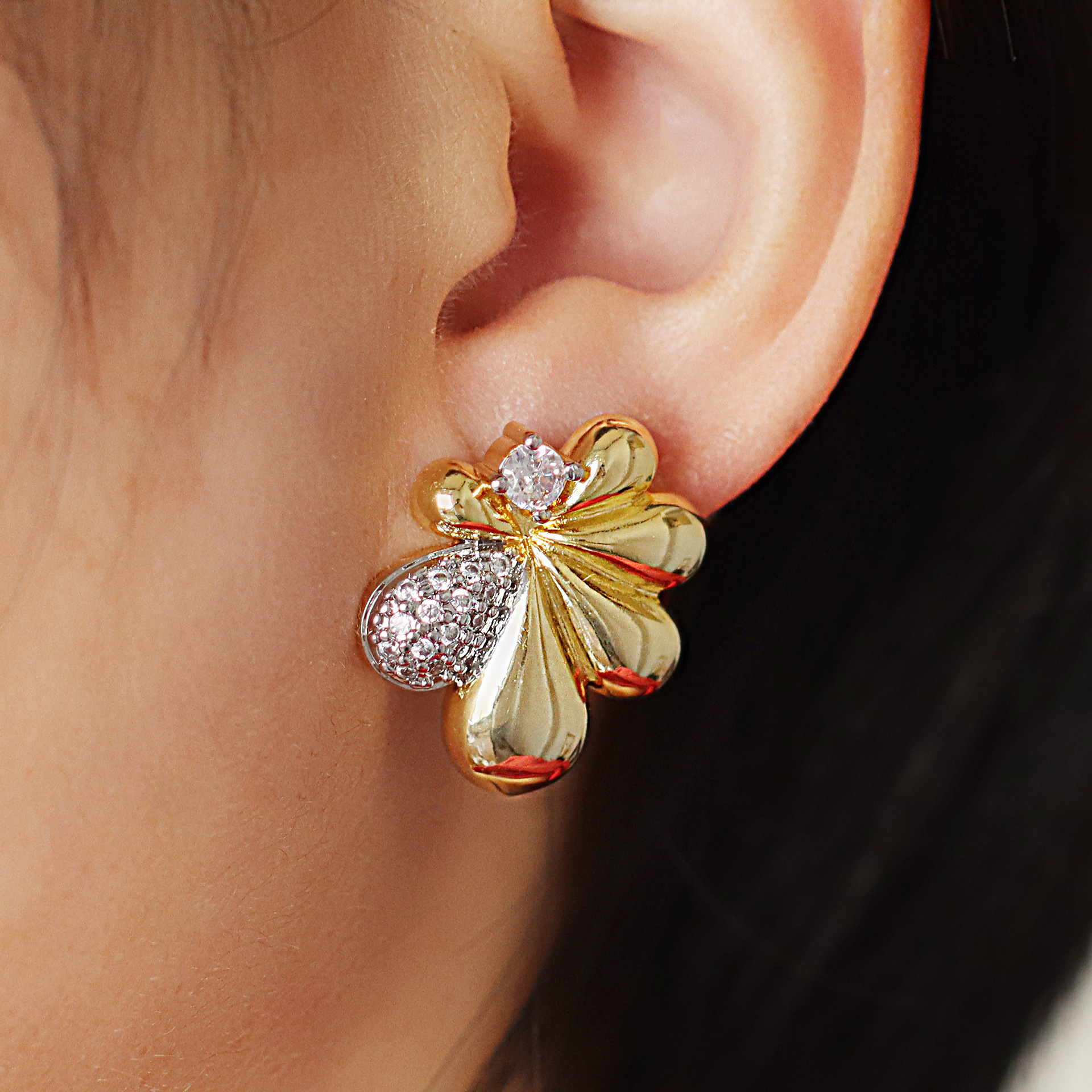 Cubic Zirconia Micro Pave Brass Earring, Leaf, plated, fashion jewelry & micro pave cubic zirconia & for woman