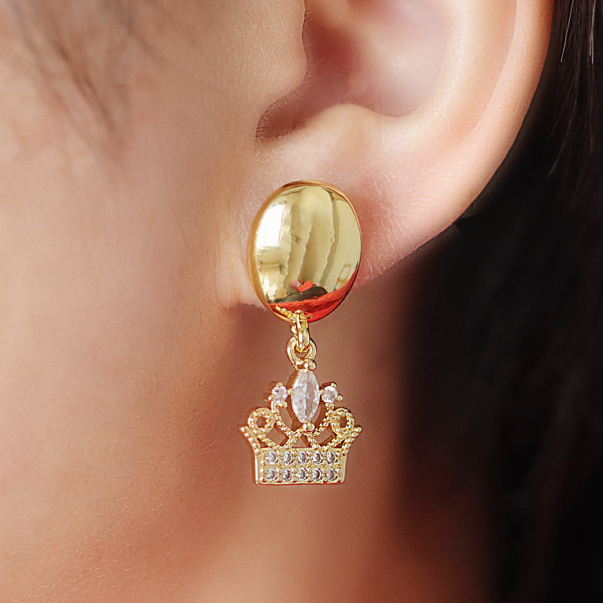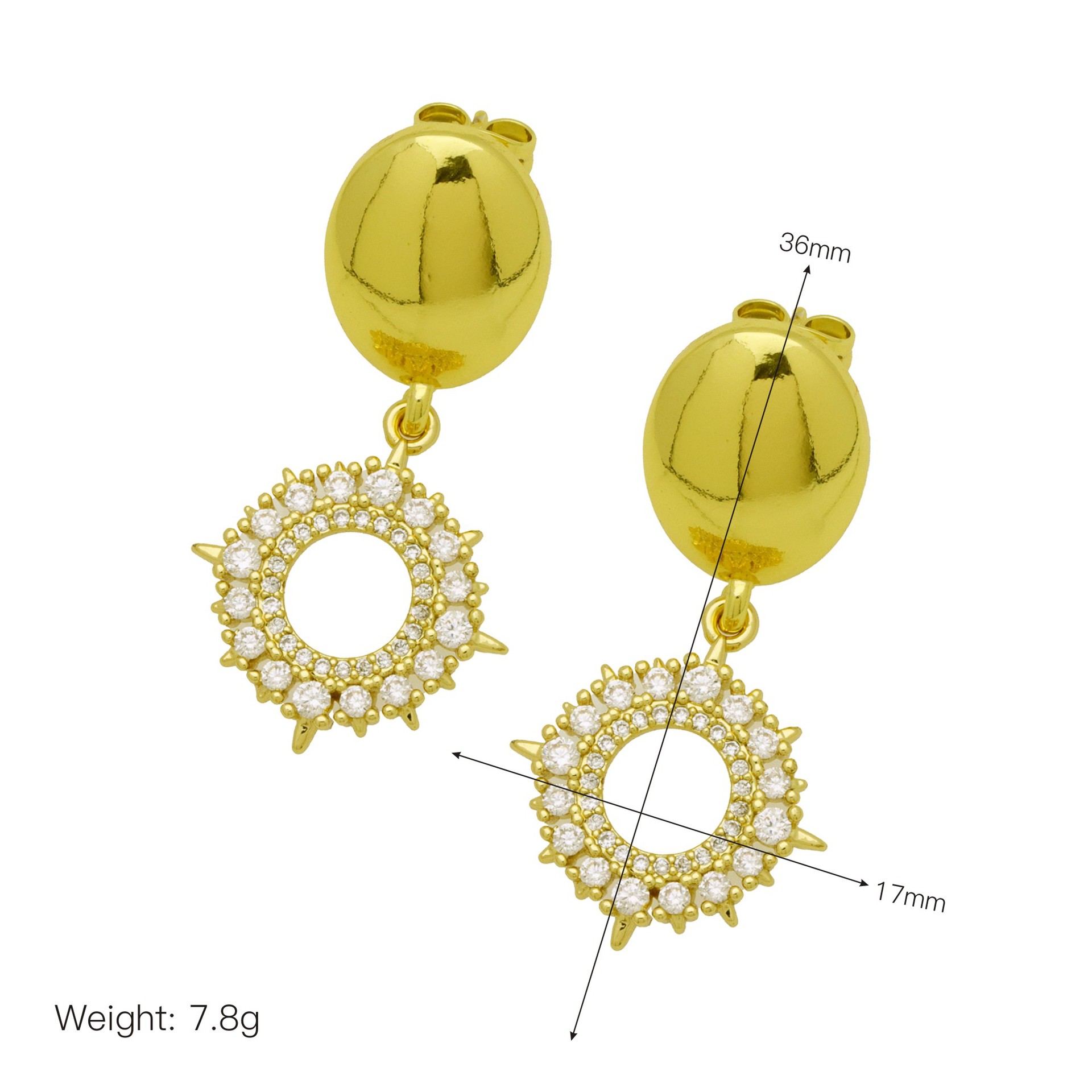 Cubic Zirconia Micro Pave Brass Earring, Safety Pin, gold color plated, fashion jewelry & micro pave cubic zirconia & for woman, golden
