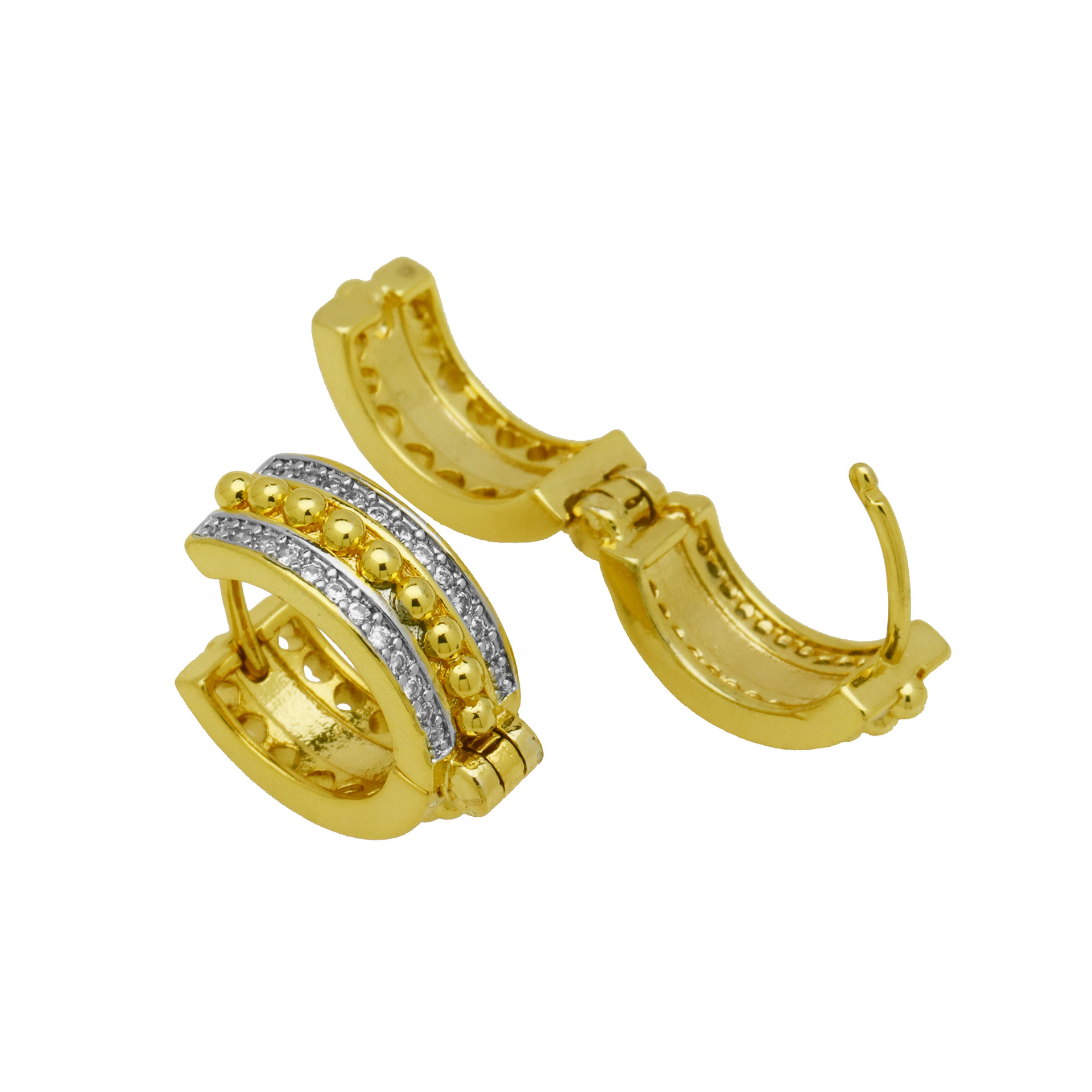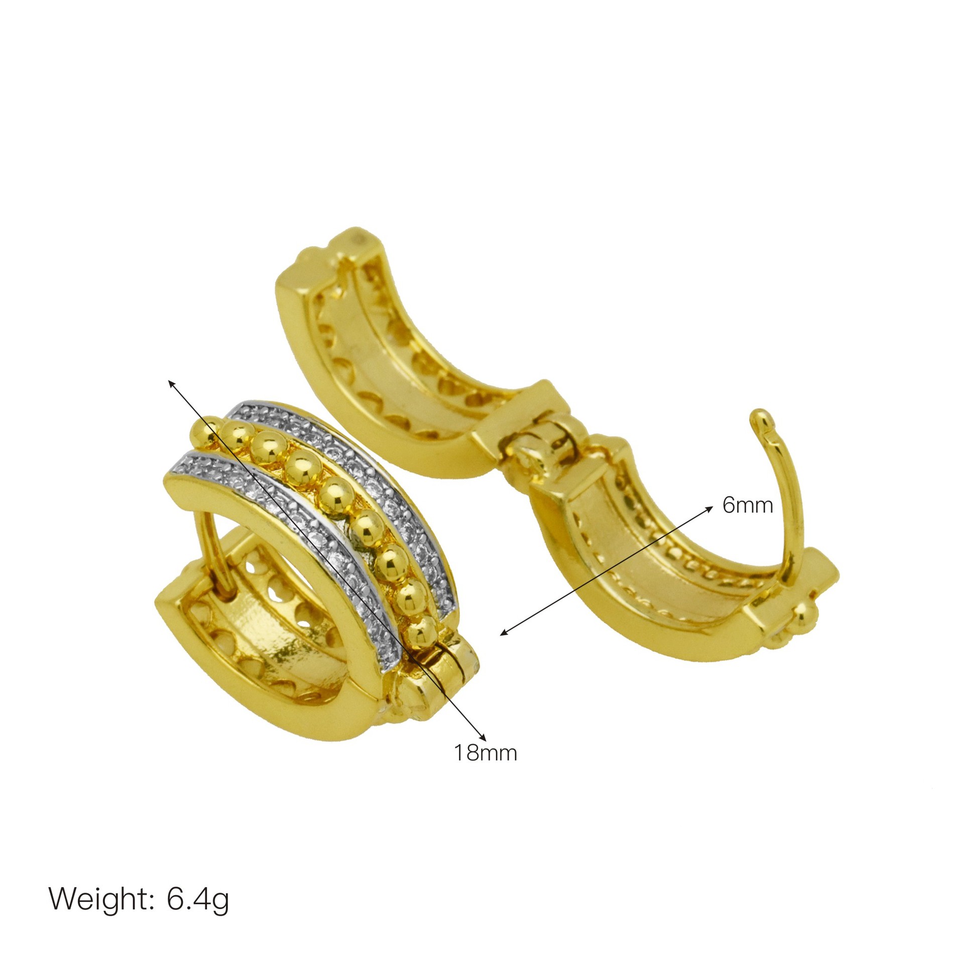 Cubic Zirconia Micro Pave Brass Earring, Safety Pin, gold color plated, fashion jewelry & micro pave cubic zirconia & for woman, golden