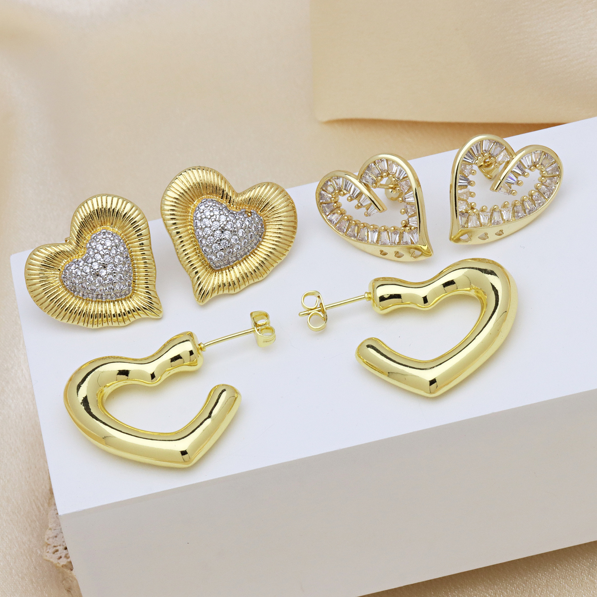 Cubic Zirconia Micro Pave Brass Earring, Heart, plated, different styles for choice & micro pave cubic zirconia & for woman, more colors for choice, Sold By Pair