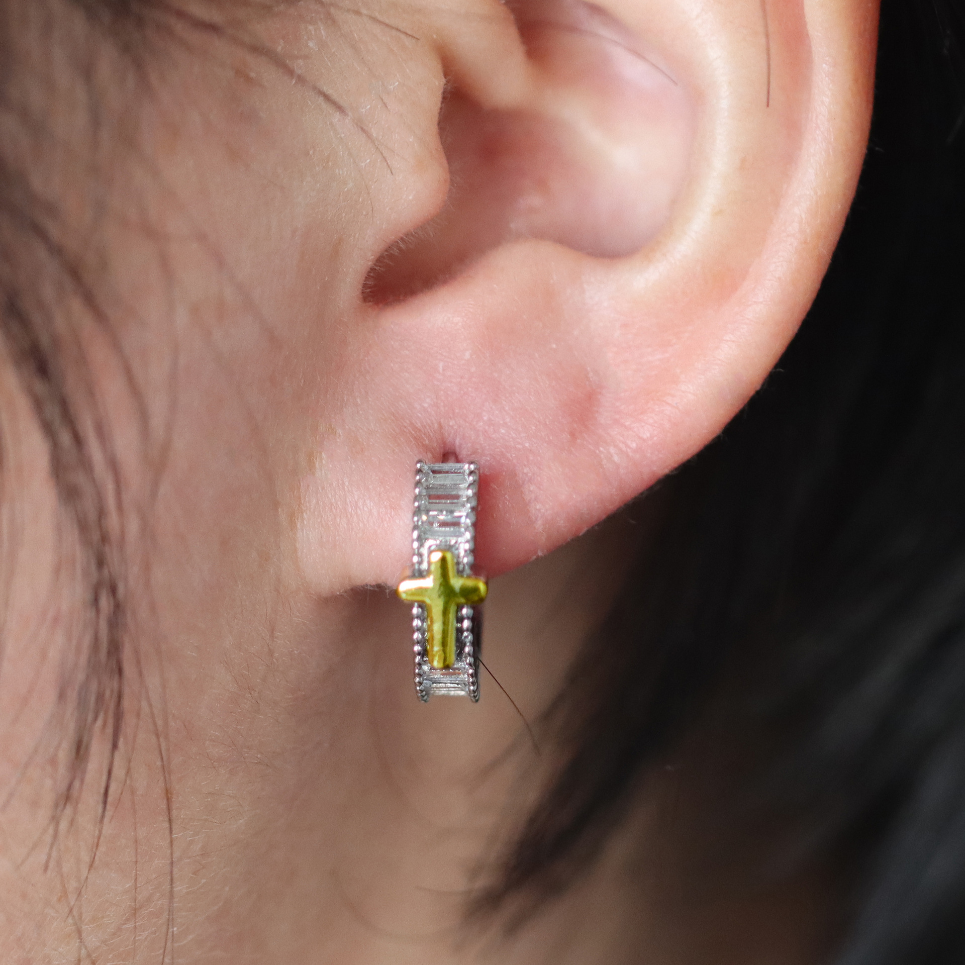 Cubic Zirconia Micro Pave Brass Earring, Safety Pin, gold color plated, fashion jewelry & micro pave cubic zirconia & for woman, golden