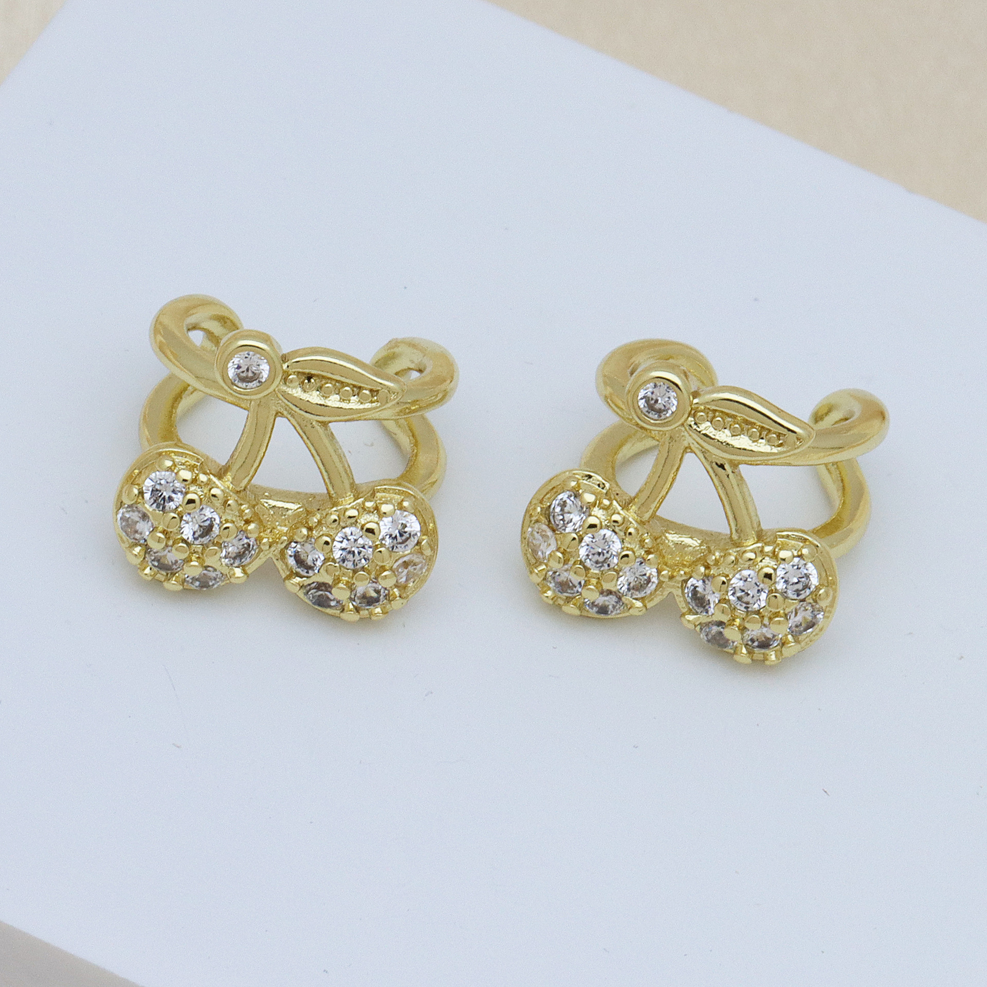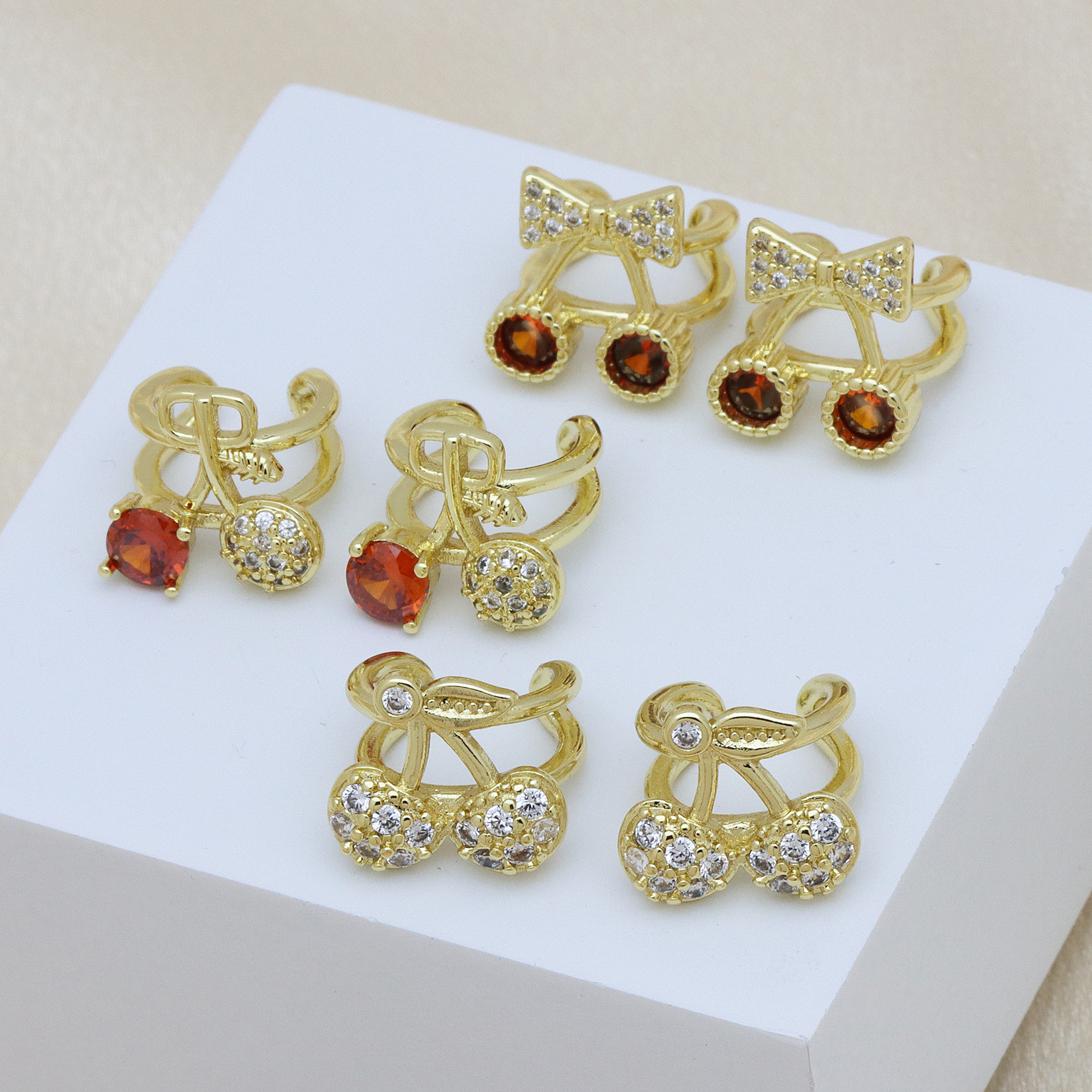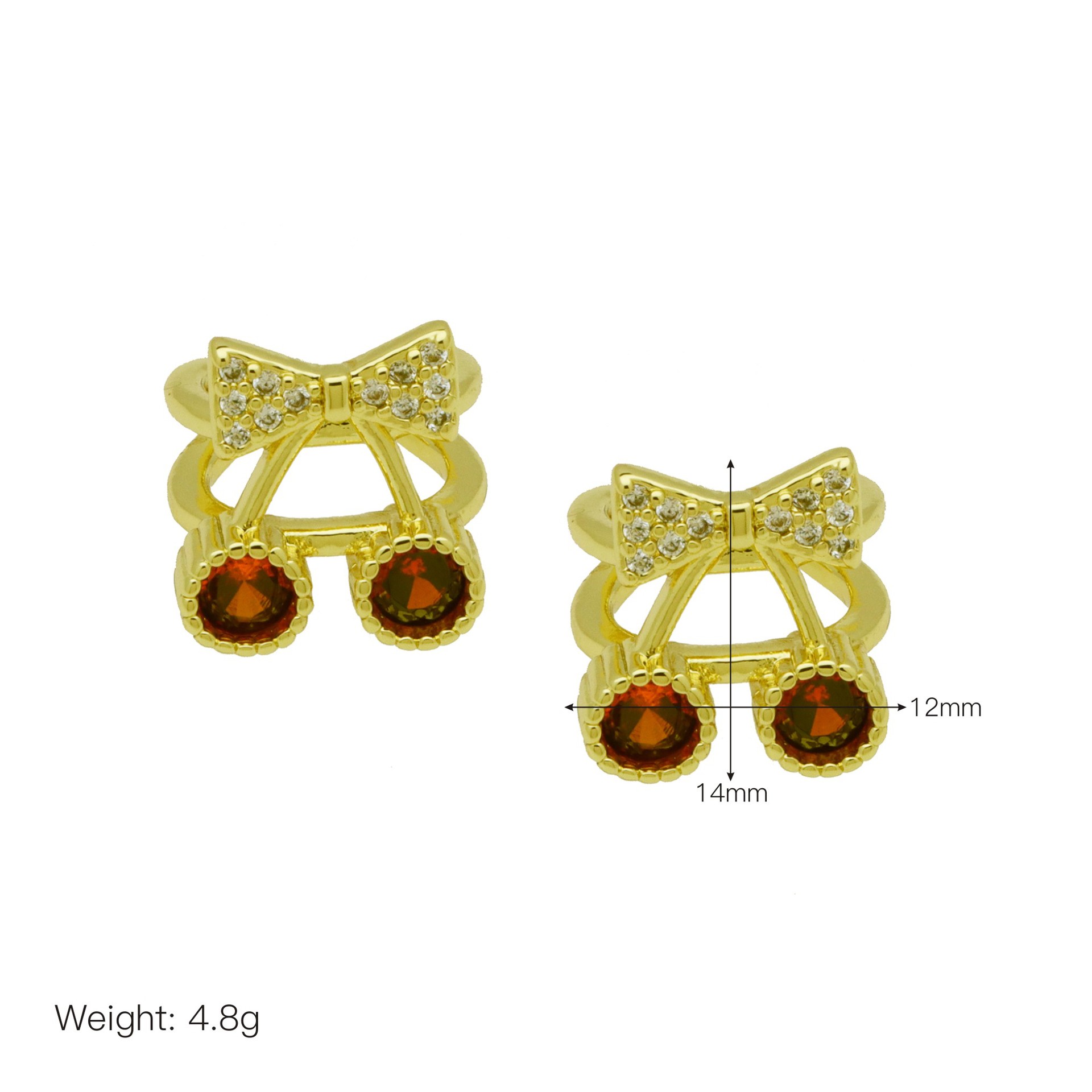 Cubic Zirconia Micro Pave Brass Earring, Cherry, gold color plated, different styles for choice & micro pave cubic zirconia & for woman, more colors for choice, Sold By Pair