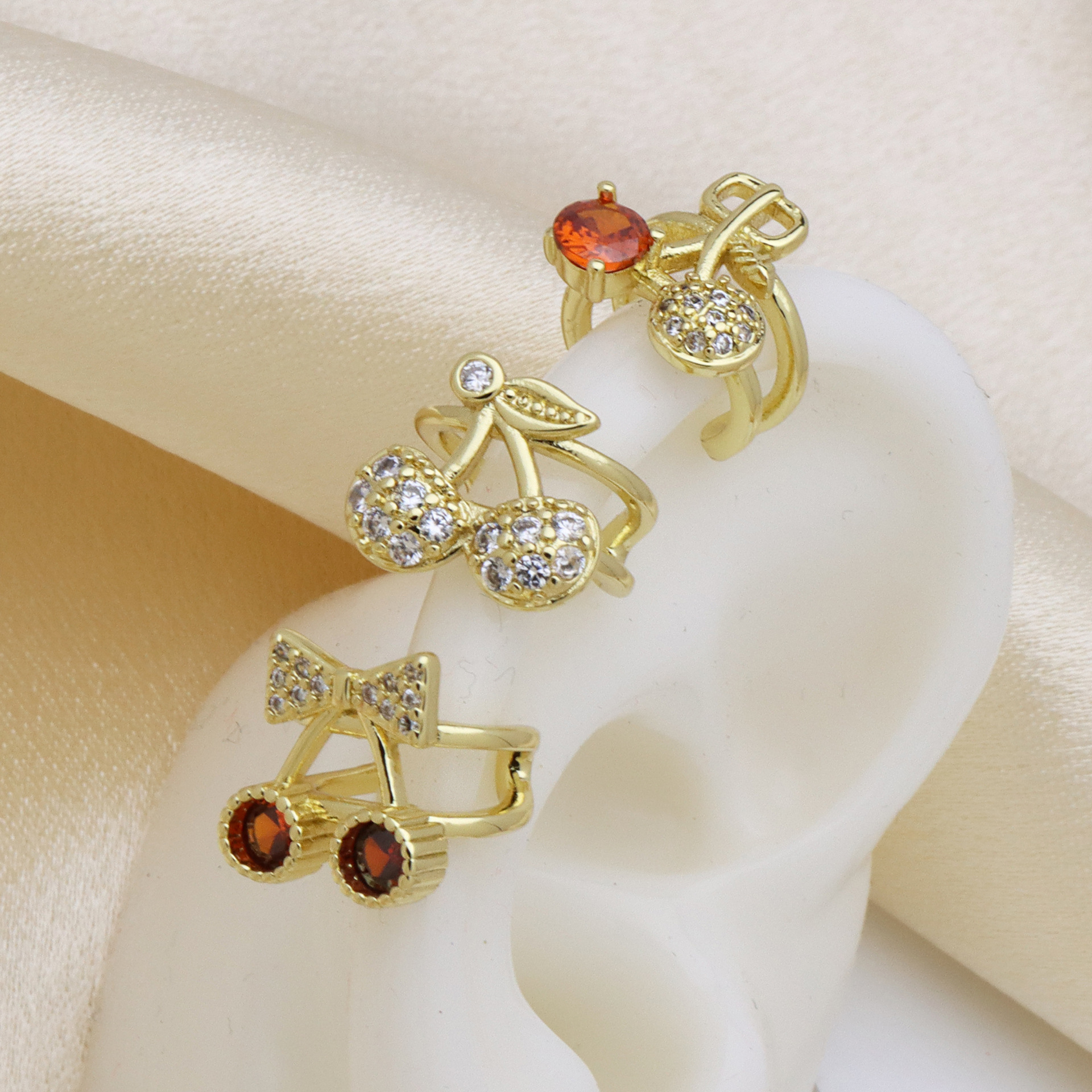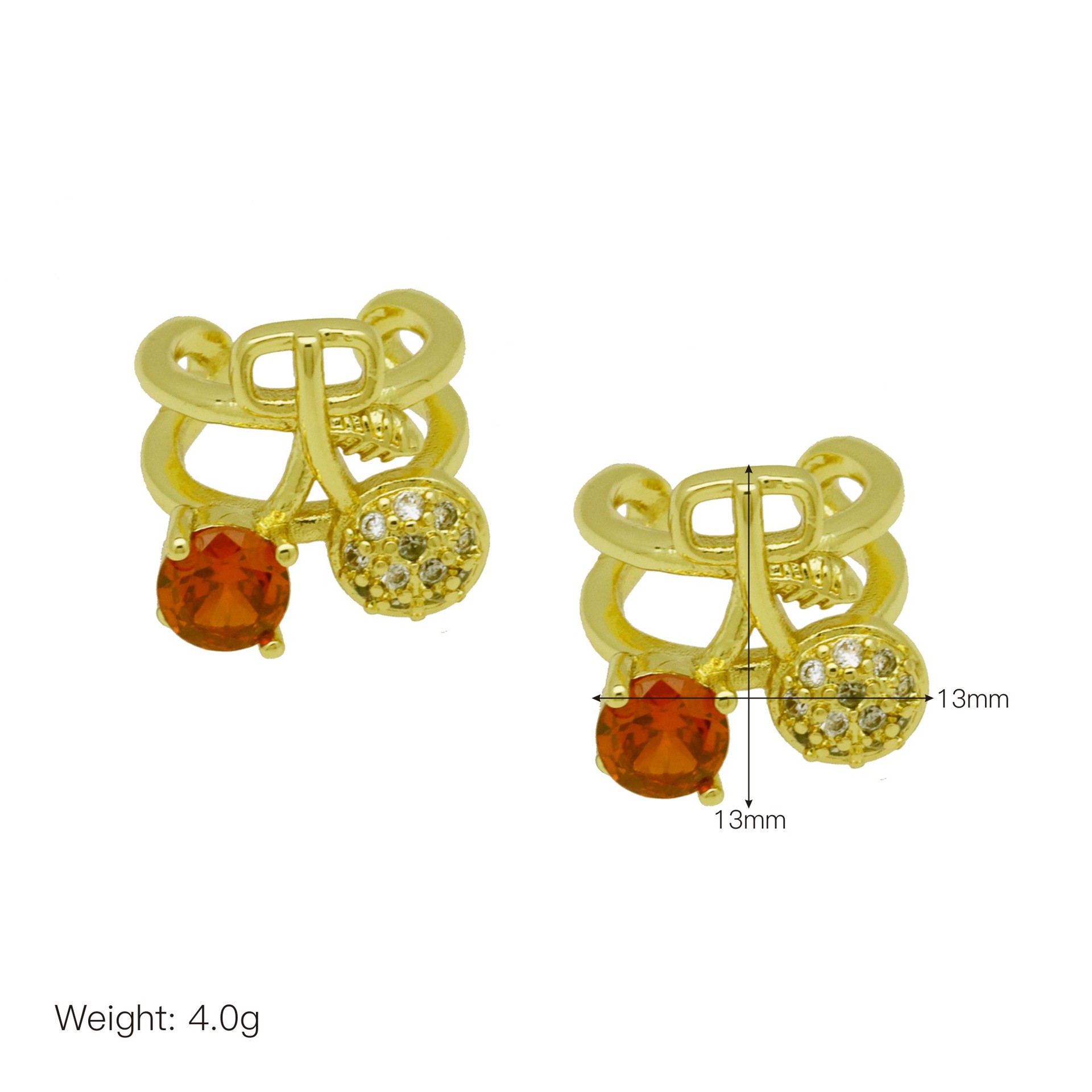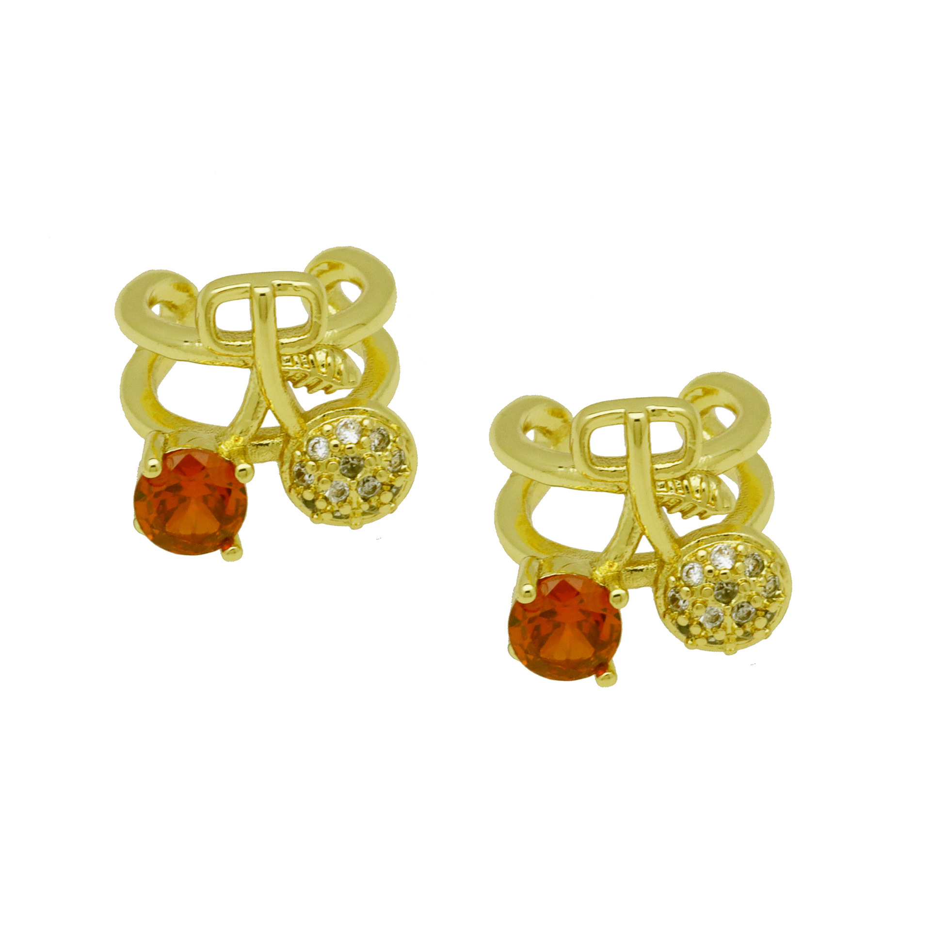 Cubic Zirconia Micro Pave Brass Earring, Cherry, gold color plated, different styles for choice & micro pave cubic zirconia & for woman, more colors for choice, Sold By Pair