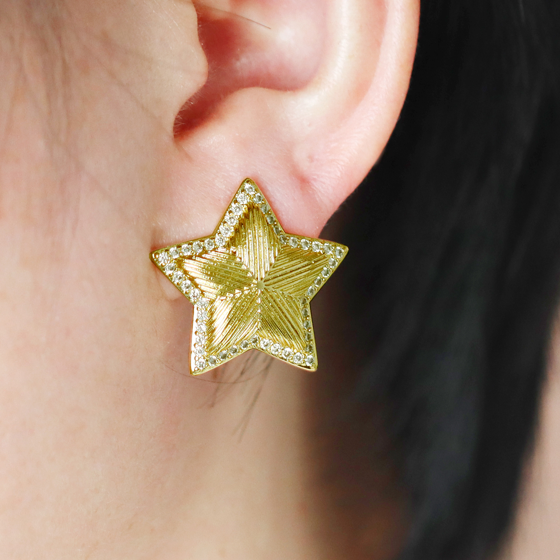 Cubic Zirconia Micro Pave Brass Earring, Safety Pin, gold color plated, fashion jewelry & micro pave cubic zirconia & for woman, golden
