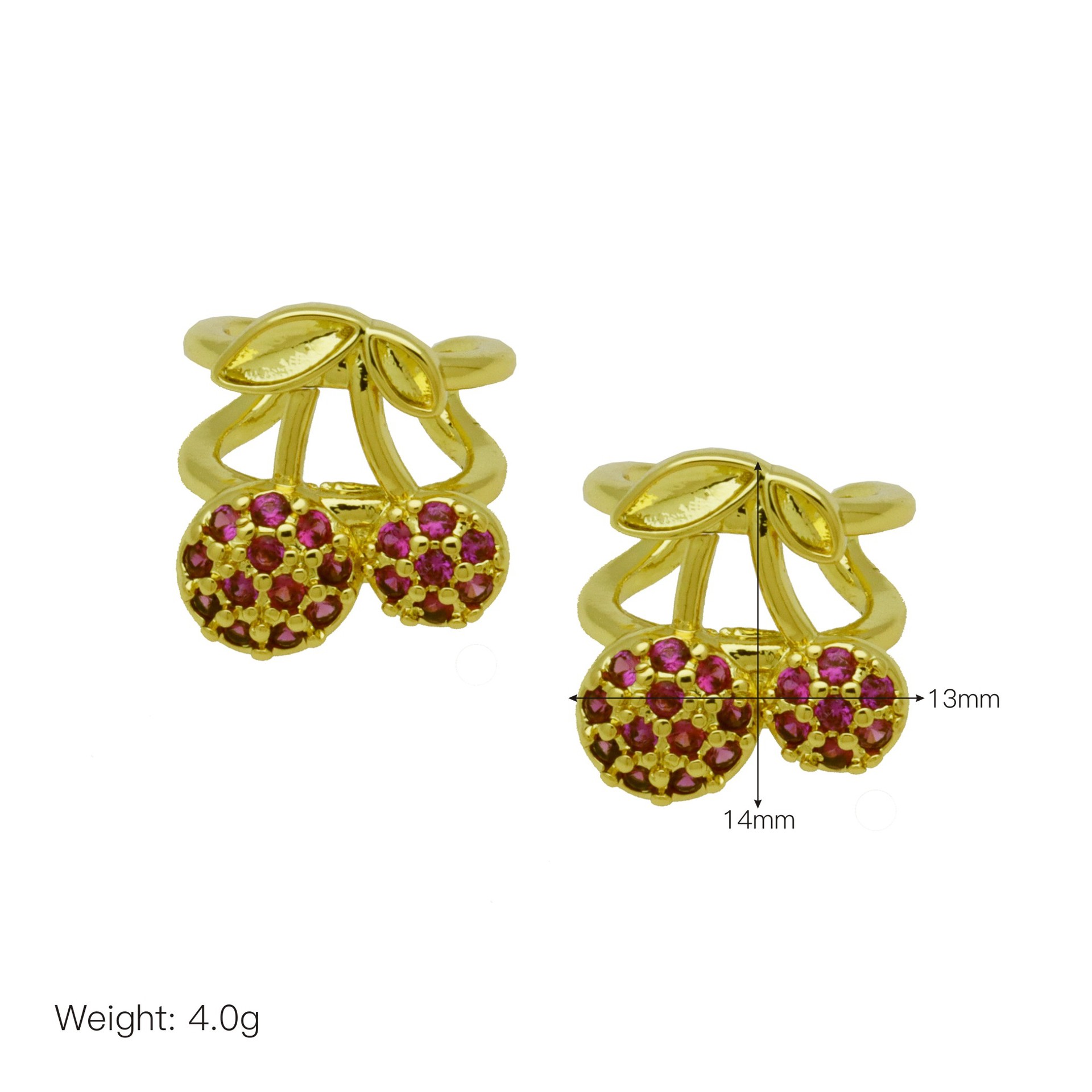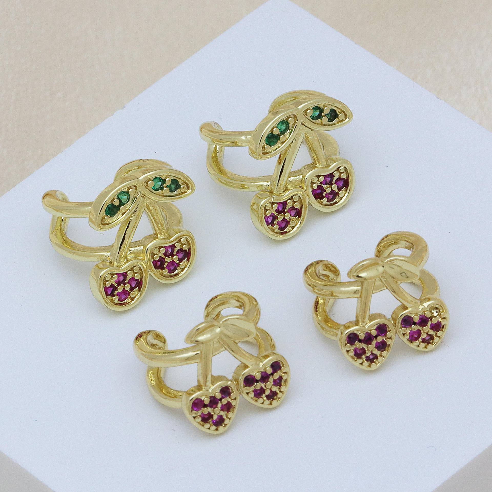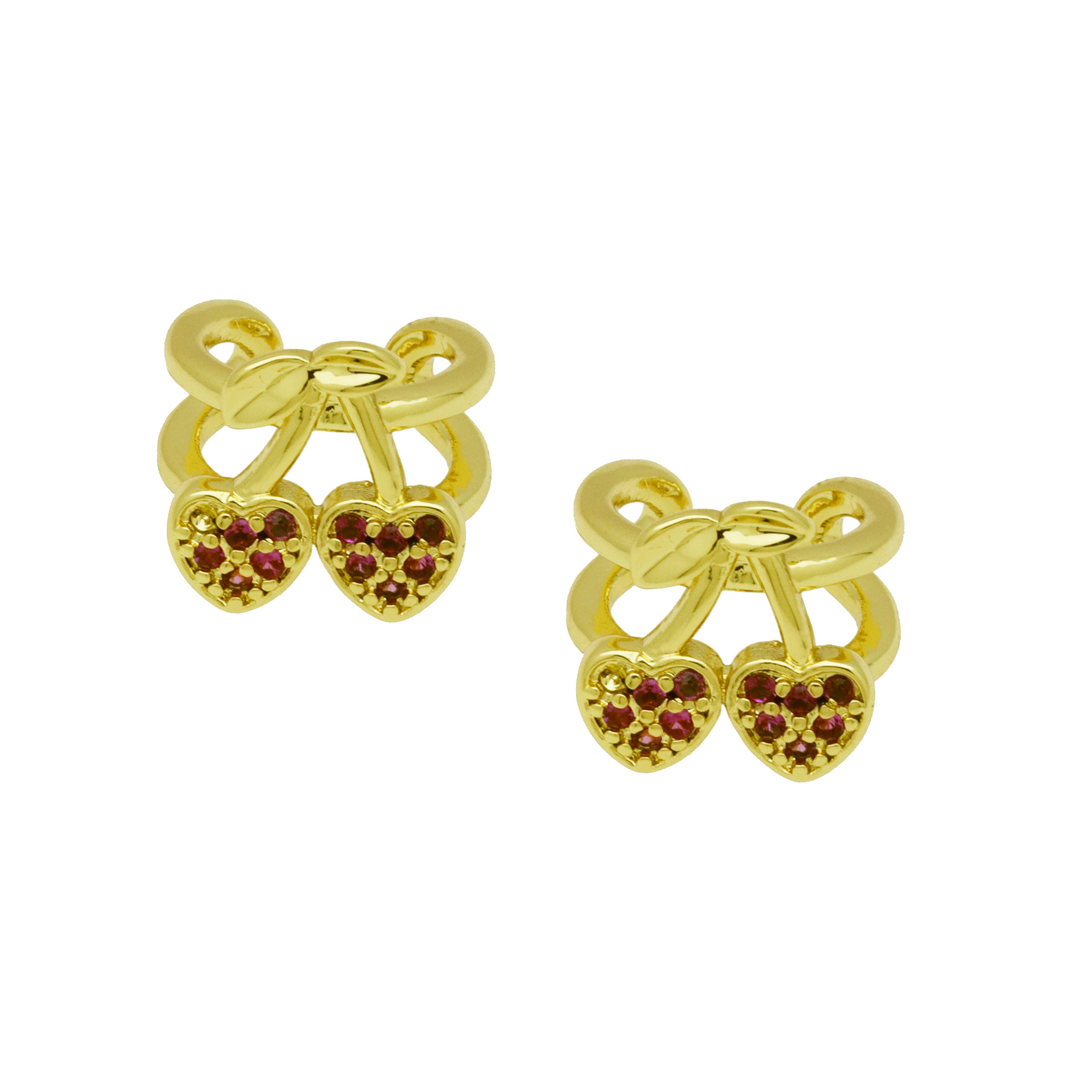 Cubic Zirconia Micro Pave Brass Earring, Cherry, gold color plated, different styles for choice & micro pave cubic zirconia & for woman, more colors for choice, Sold By Pair