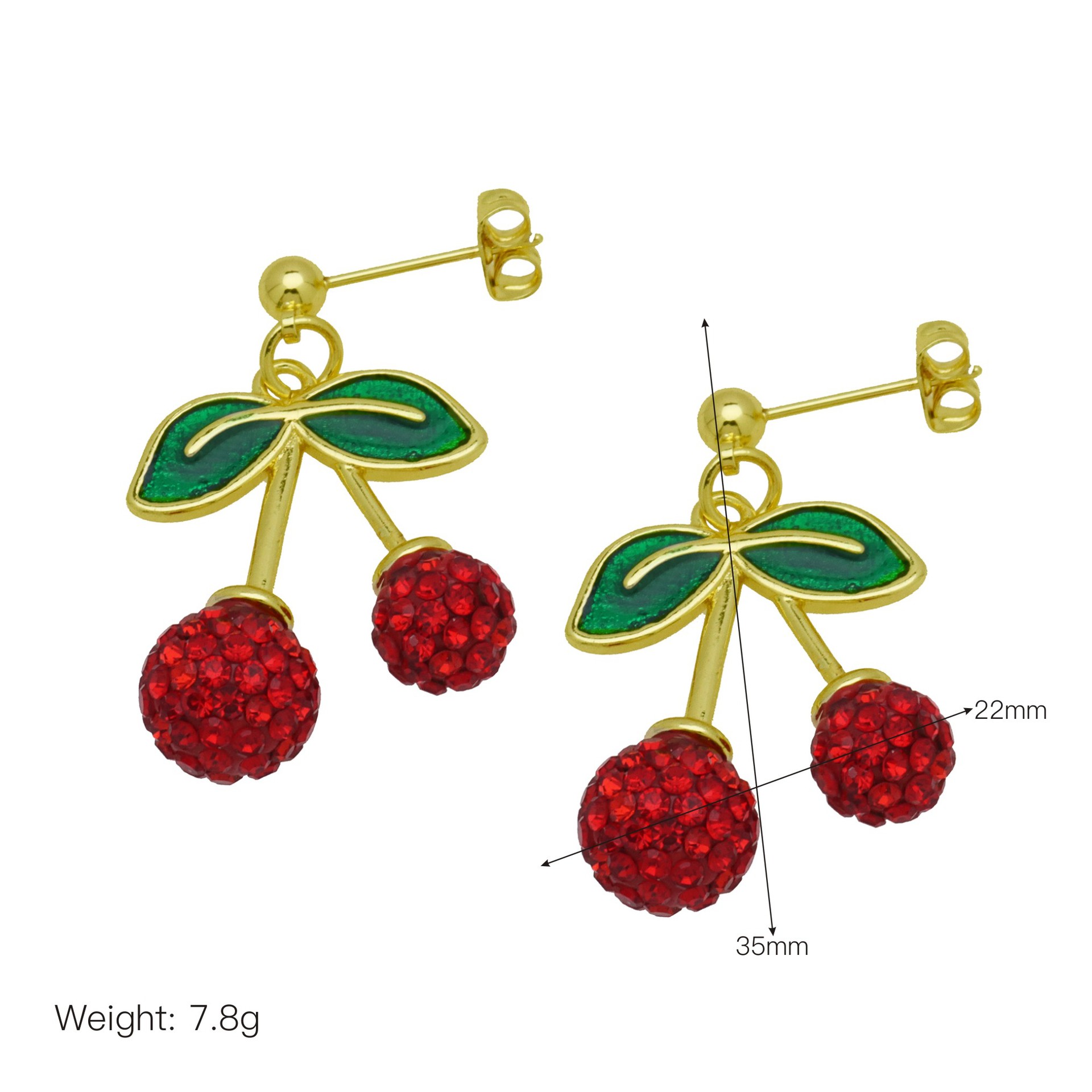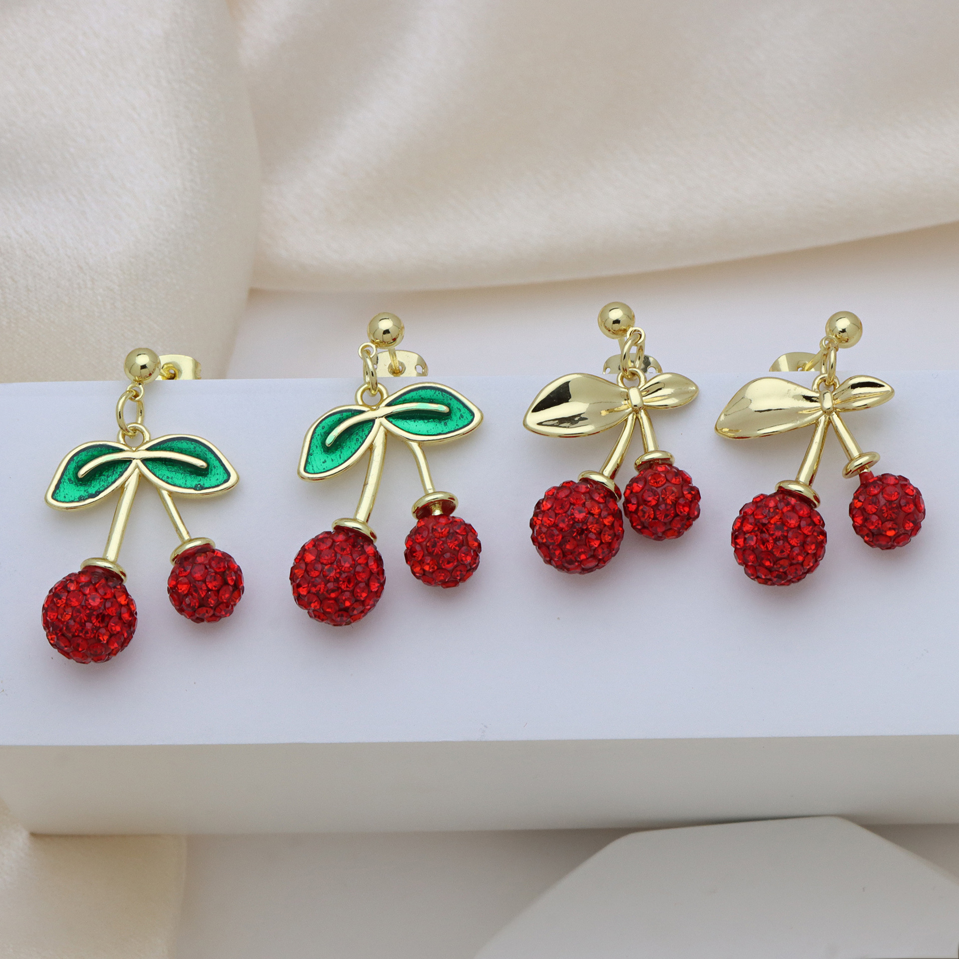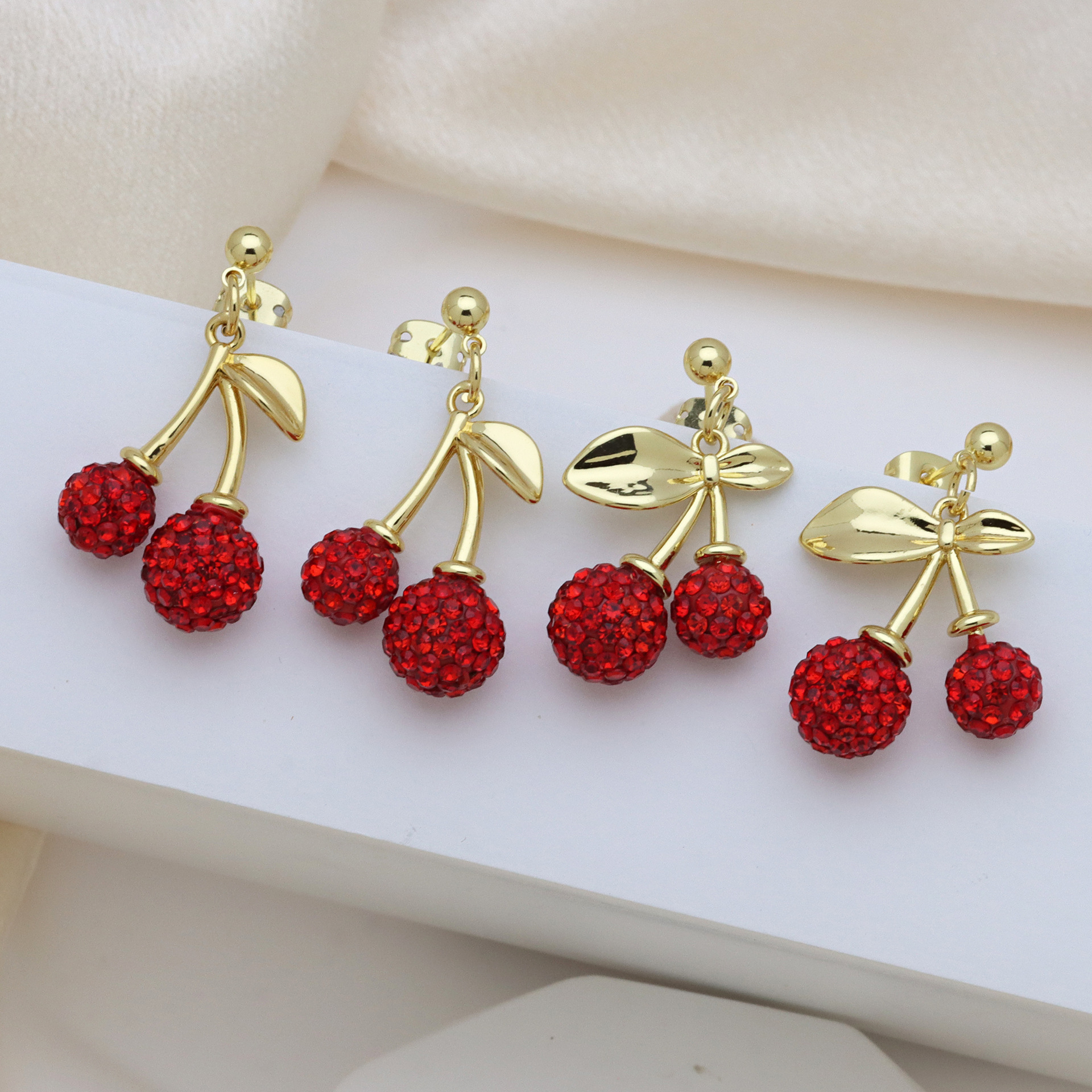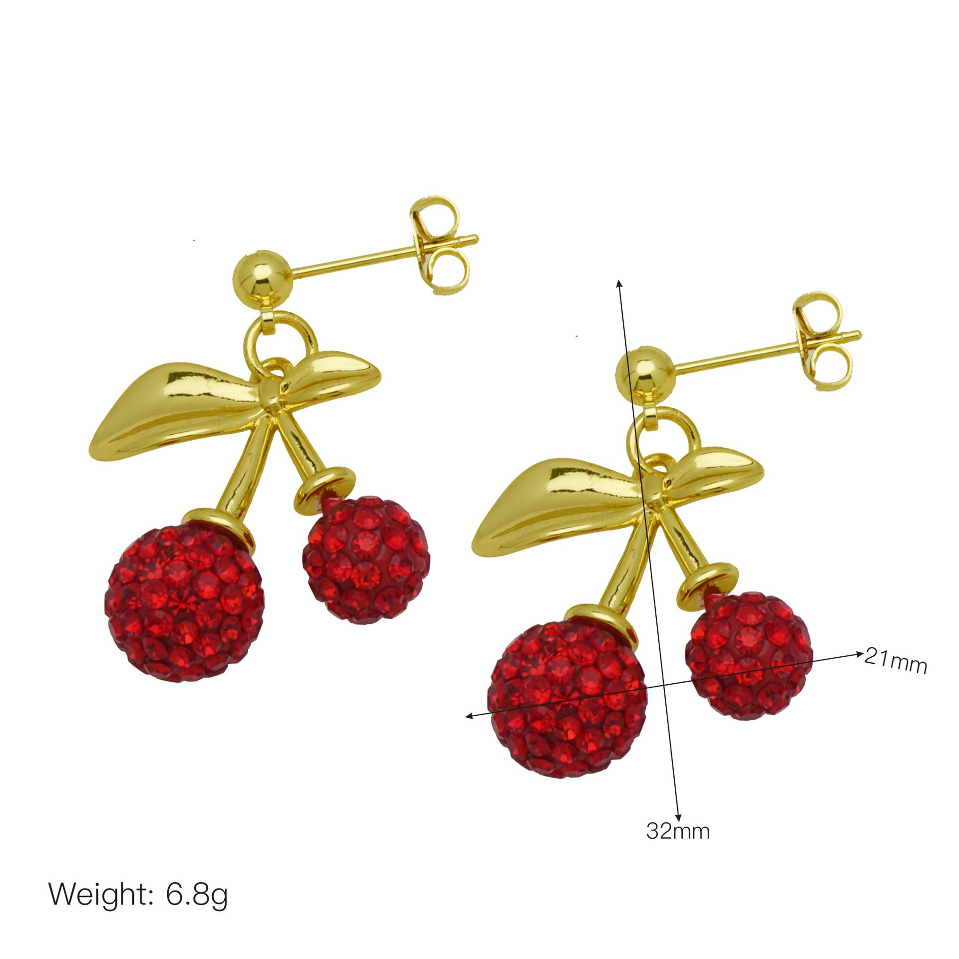 Cubic Zirconia Micro Pave Brass Earring, Cherry, gold color plated, different styles for choice & micro pave cubic zirconia & for woman & enamel, more colors for choice, Sold By Pair
