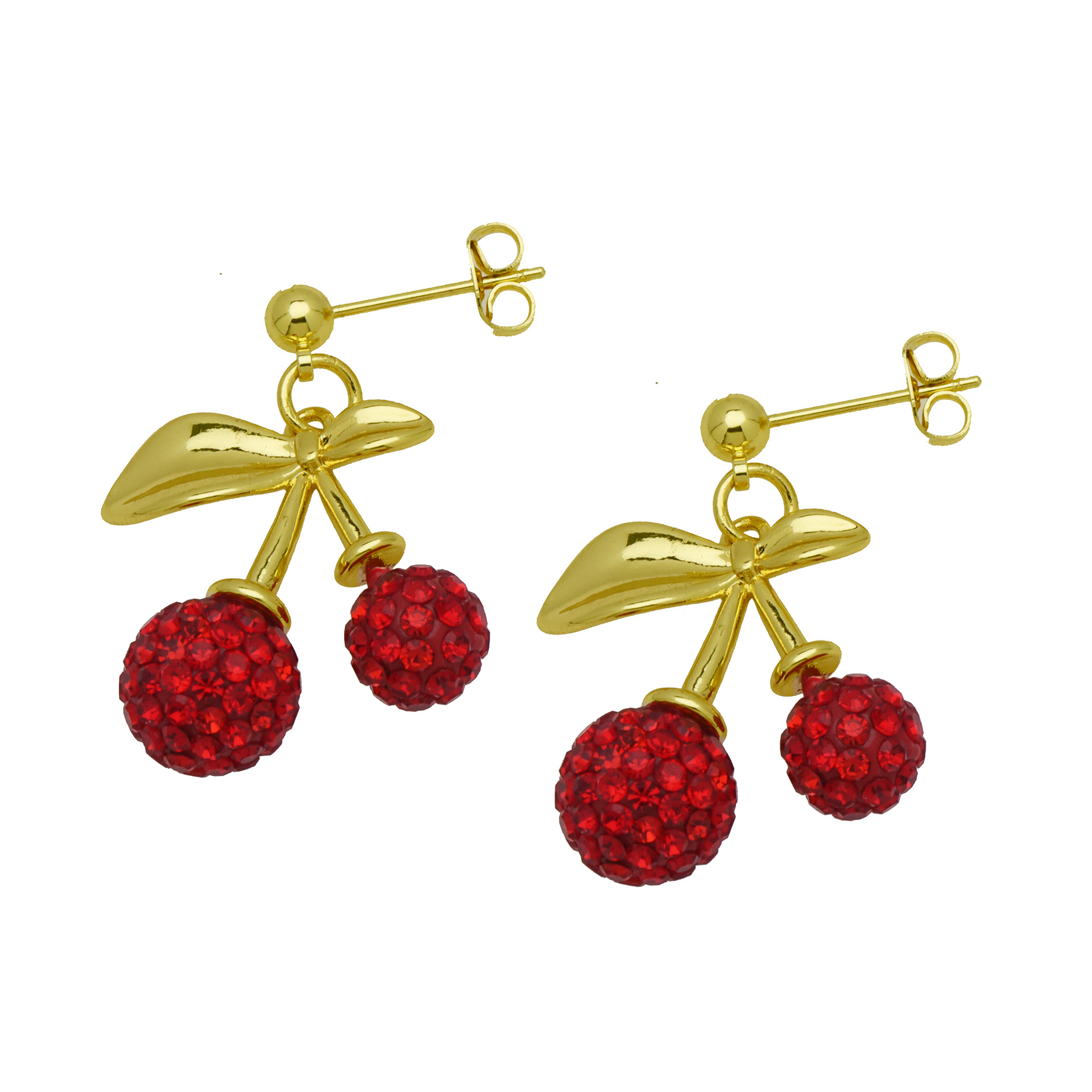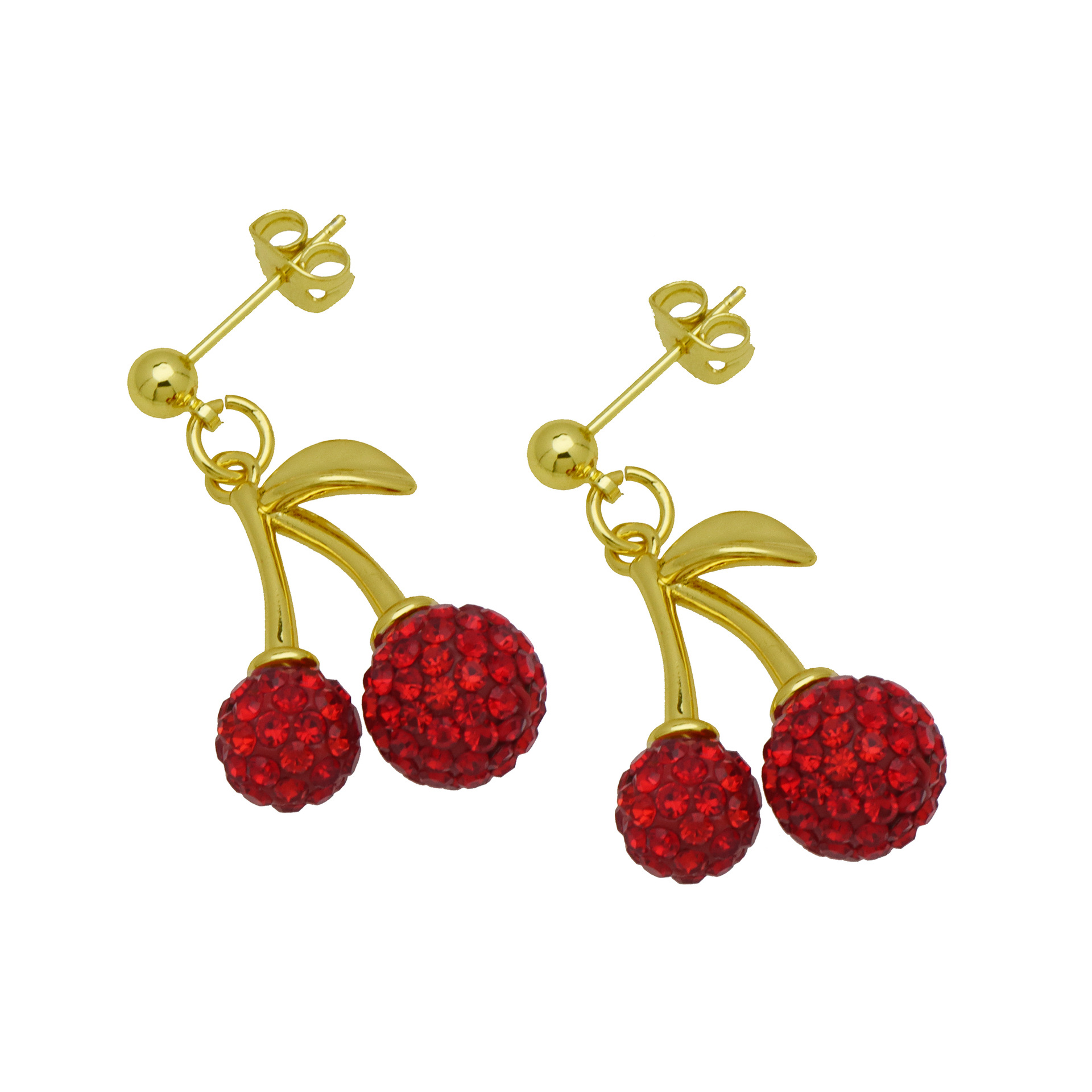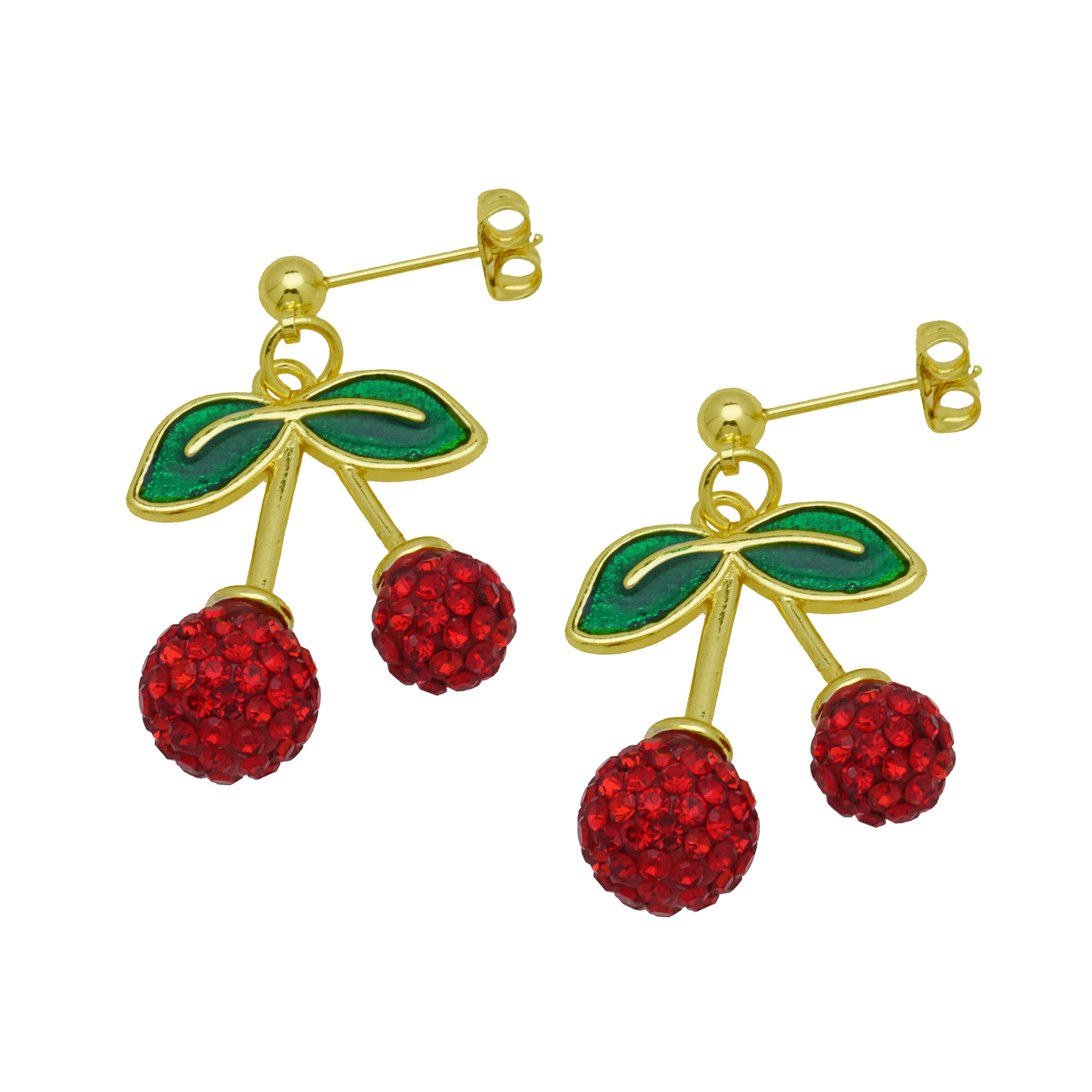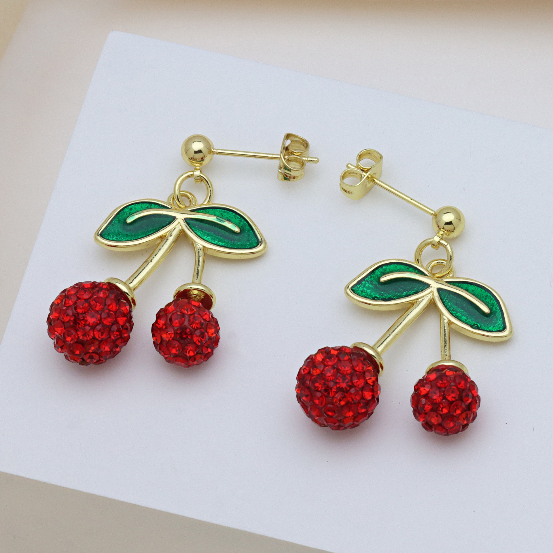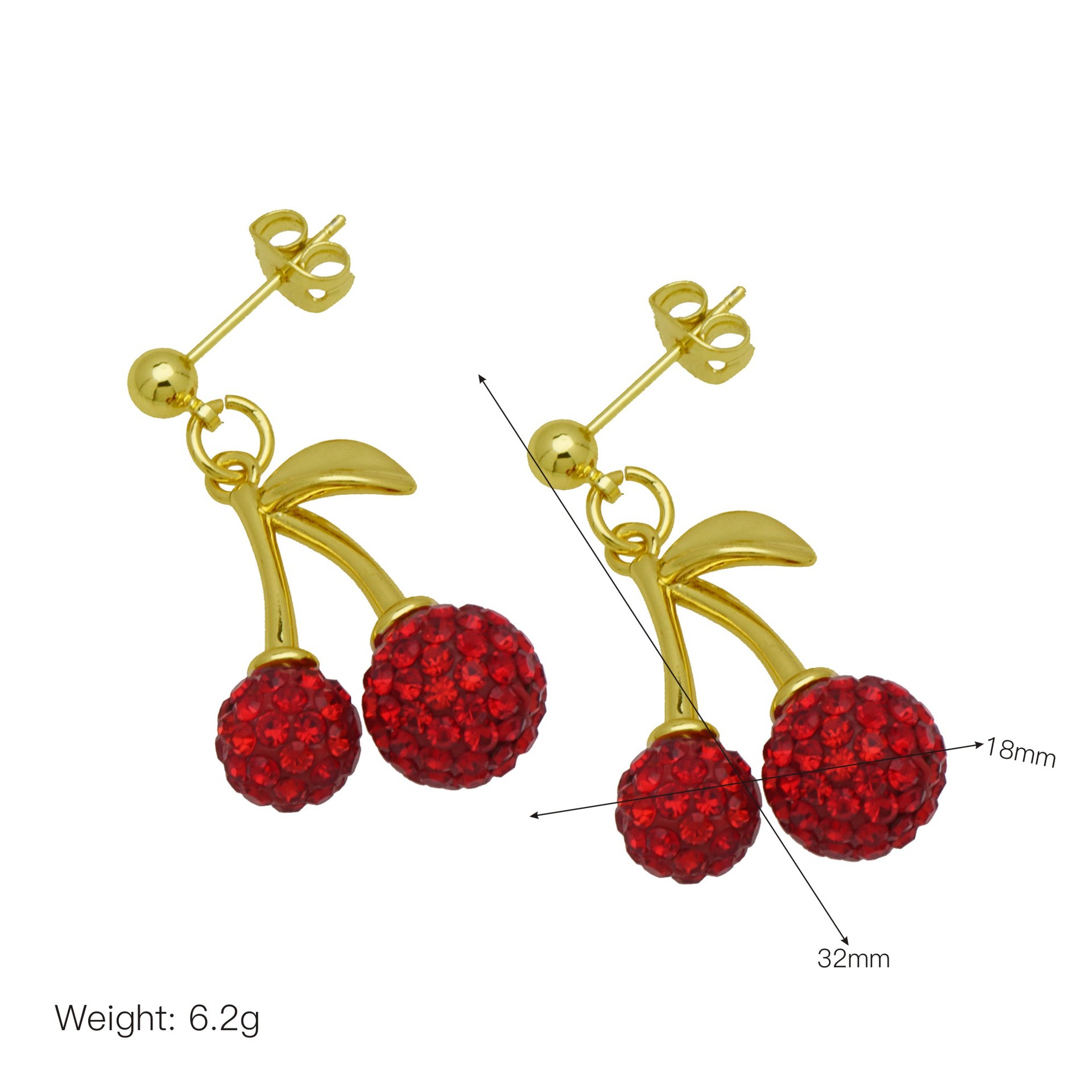 Cubic Zirconia Micro Pave Brass Earring, Cherry, gold color plated, different styles for choice & micro pave cubic zirconia & for woman & enamel, more colors for choice, Sold By Pair