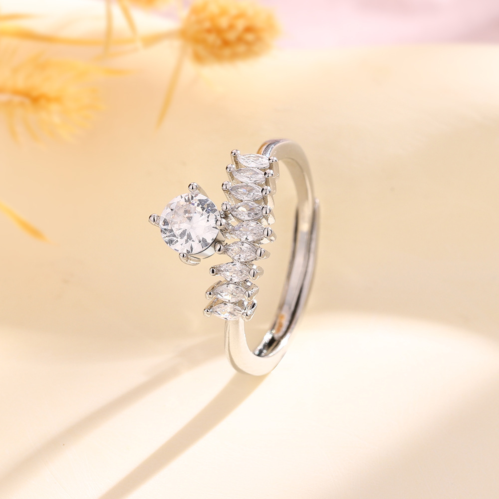 Cubic Zirconia Micro Pave Brass Finger Ring, plated, micro pave cubic zirconia & for woman, platinum color, Sold By PC