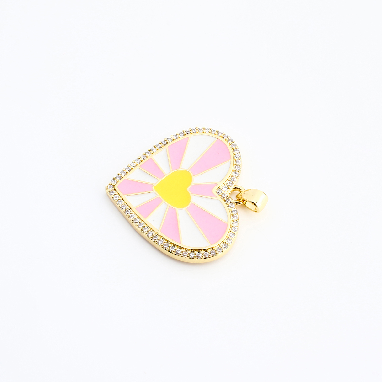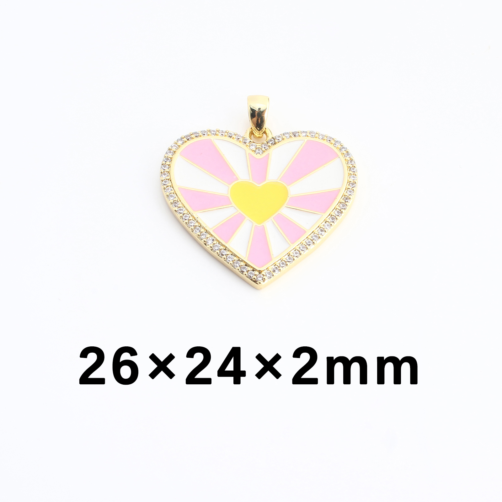 Cubic Zirconia Micro Pave Brass Pendant, Heart, gold color plated, DIY & micro pave cubic zirconia & enamel, 26x24x2mm, Sold By PC