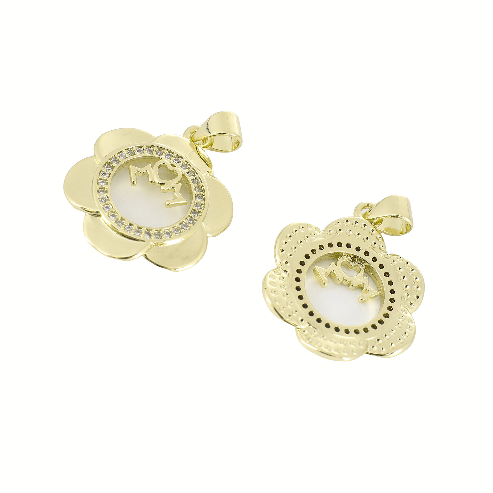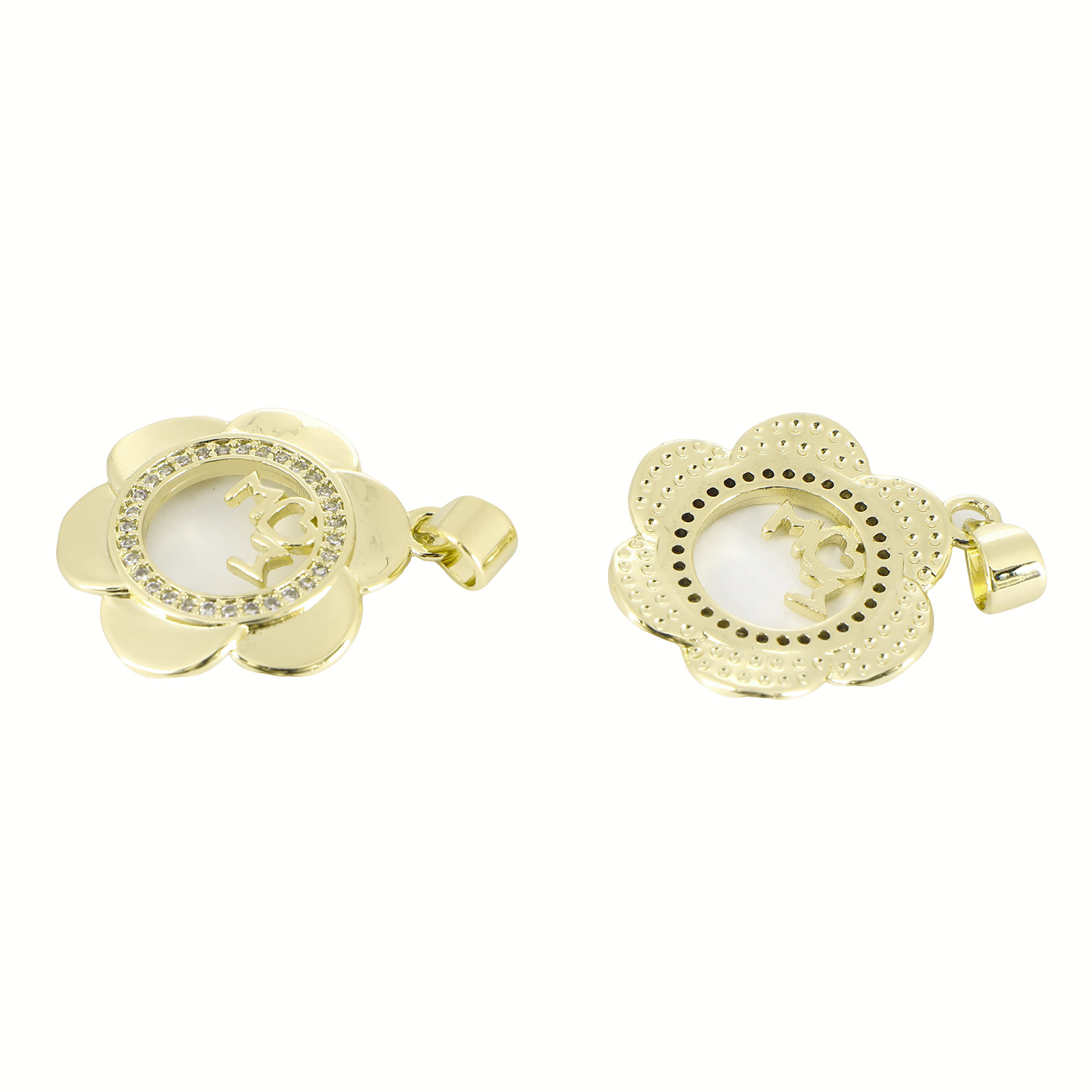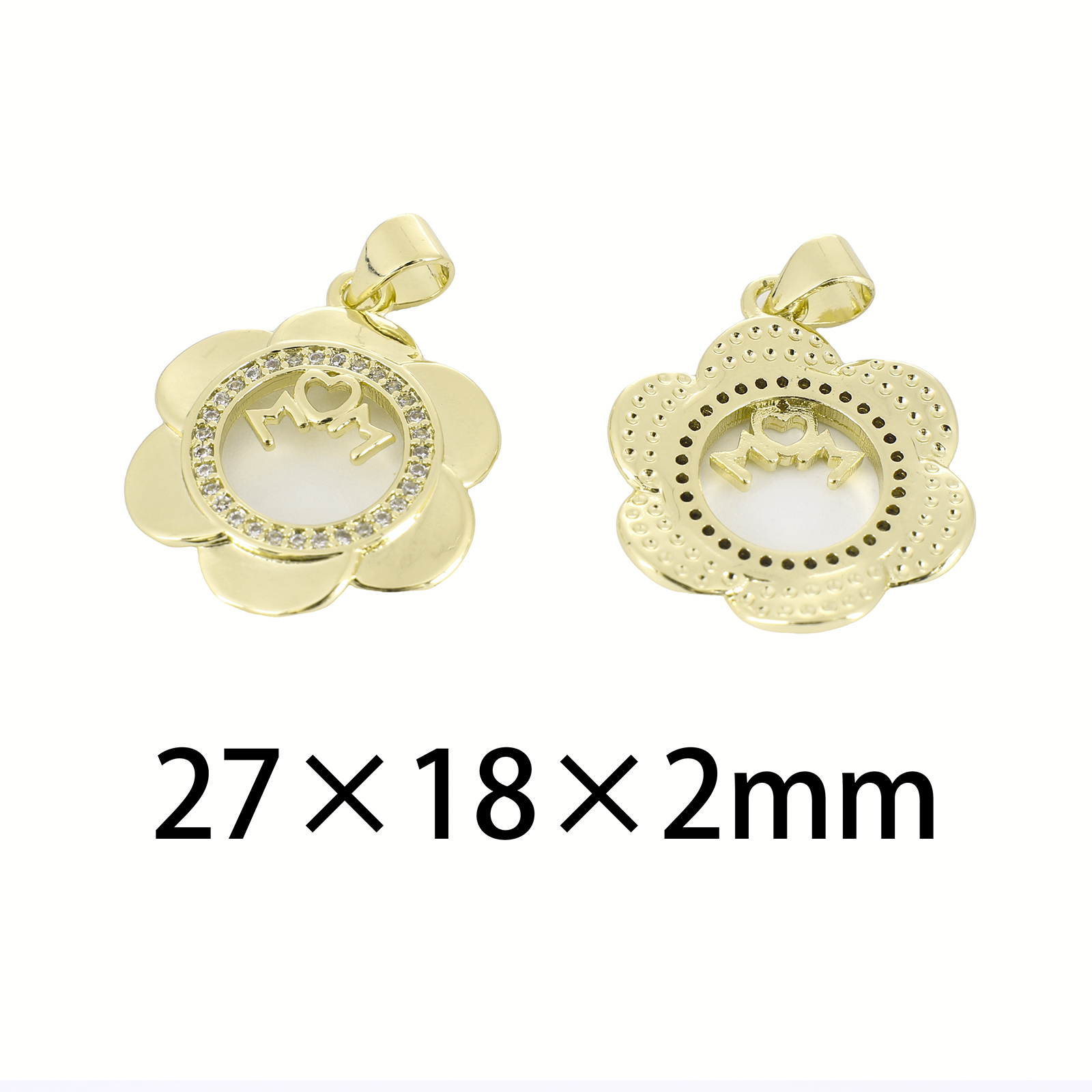 Cubic Zirconia Micro Pave Brass Pendant, Flower, gold color plated, DIY & micro pave cubic zirconia, 27x18x2mm, Sold By PC