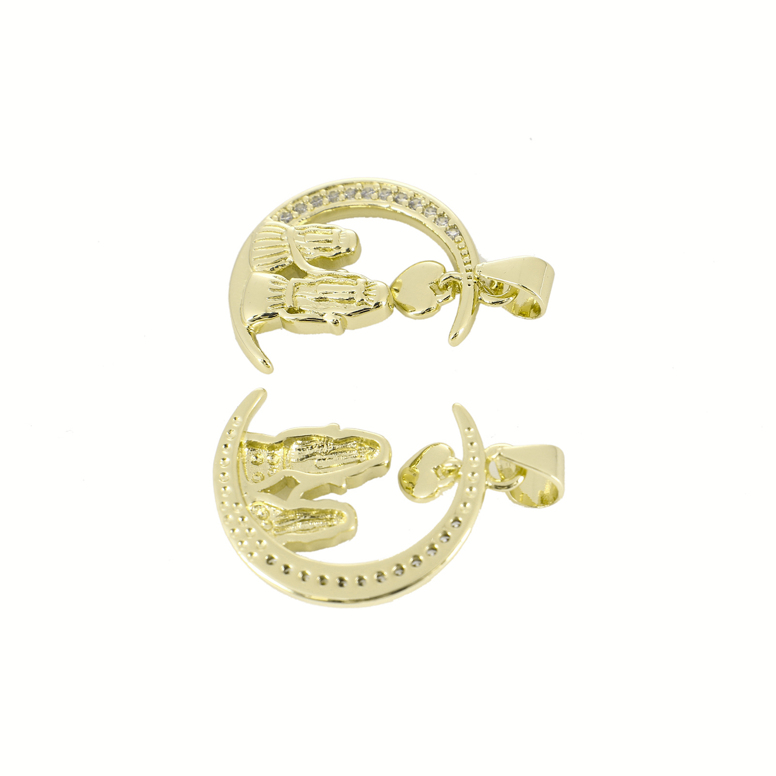 Cubic Zirconia Micro Pave Brass Pendant, Moon, gold color plated, DIY & micro pave cubic zirconia, 27x17x3mm, Sold By PC