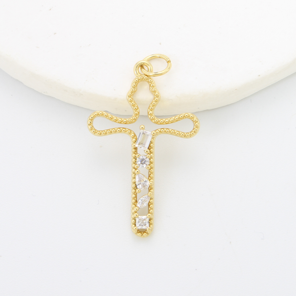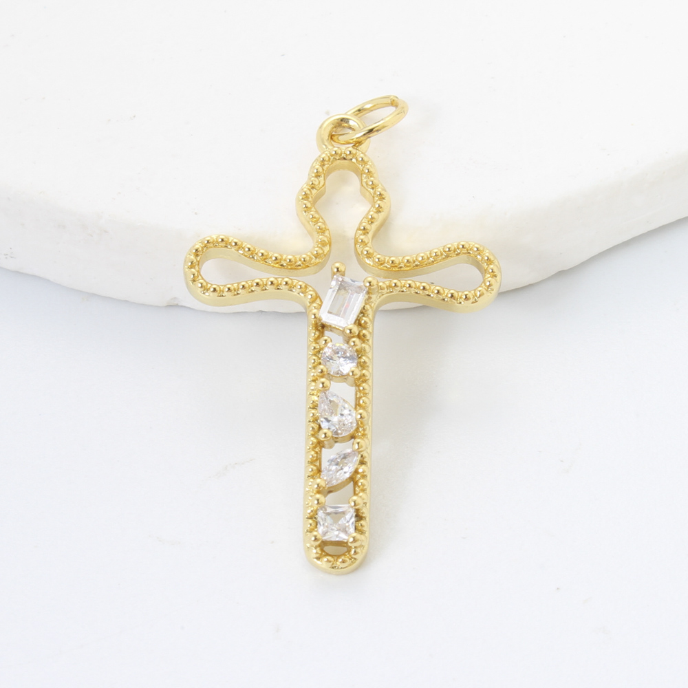 Cubic Zirconia Micro Pave Brass Pendant, Cross, plated, DIY & micro pave cubic zirconia, gold, 27.7x17.4x2.2mm, Sold By PC