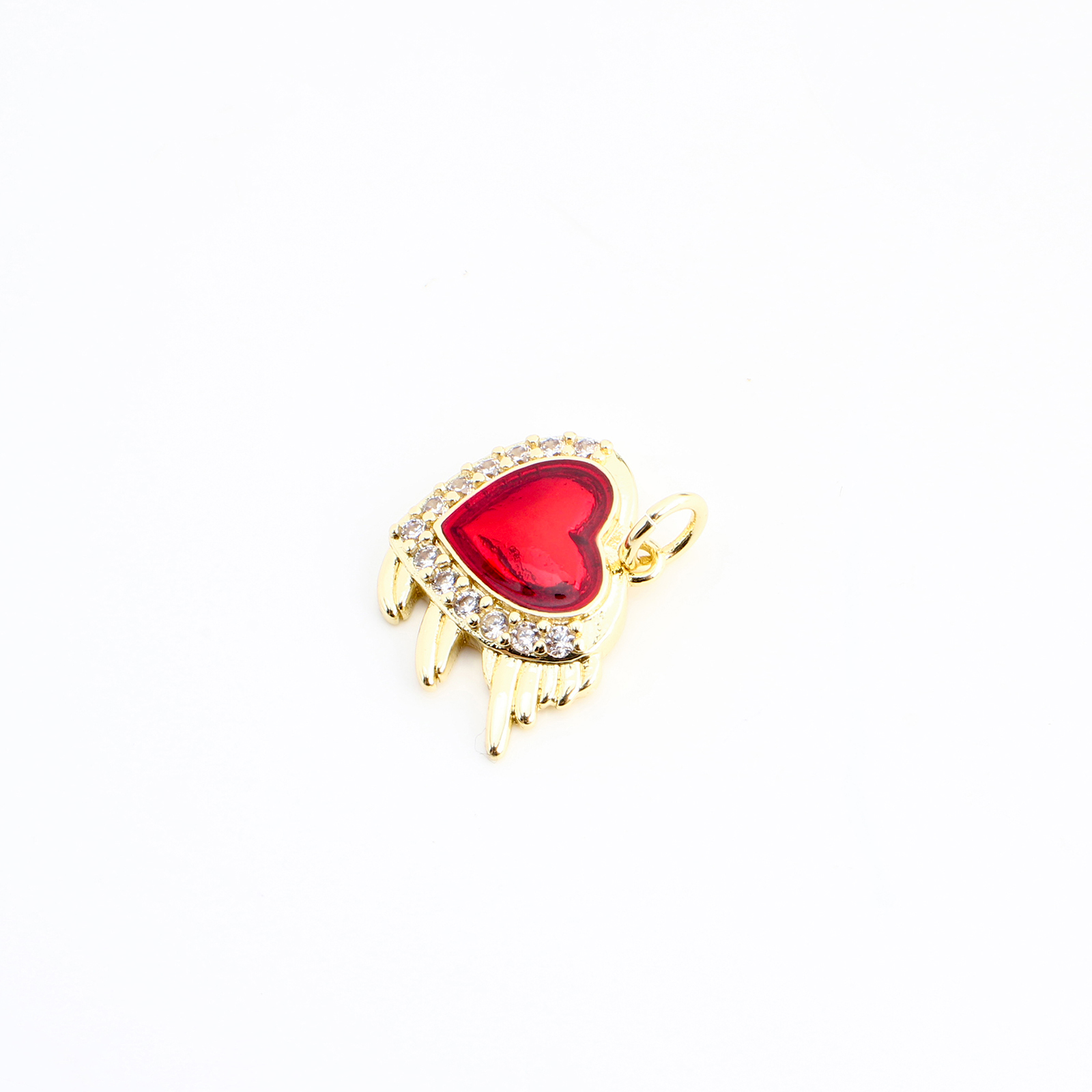 Cubic Zirconia Micro Pave Brass Pendant, Heart, DIY & micro pave cubic zirconia & enamel, golden, 13x17x3mm, Sold By PC