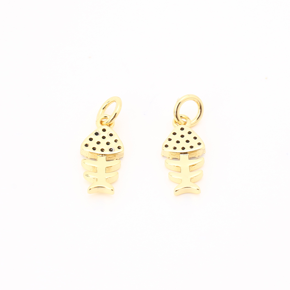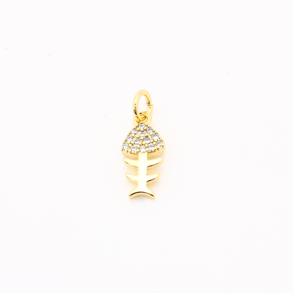 Cubic Zirconia Micro Pave Brass Pendant, Fish Bone, DIY & micro pave cubic zirconia & hollow, golden, 11x5x1mm, Sold By PC