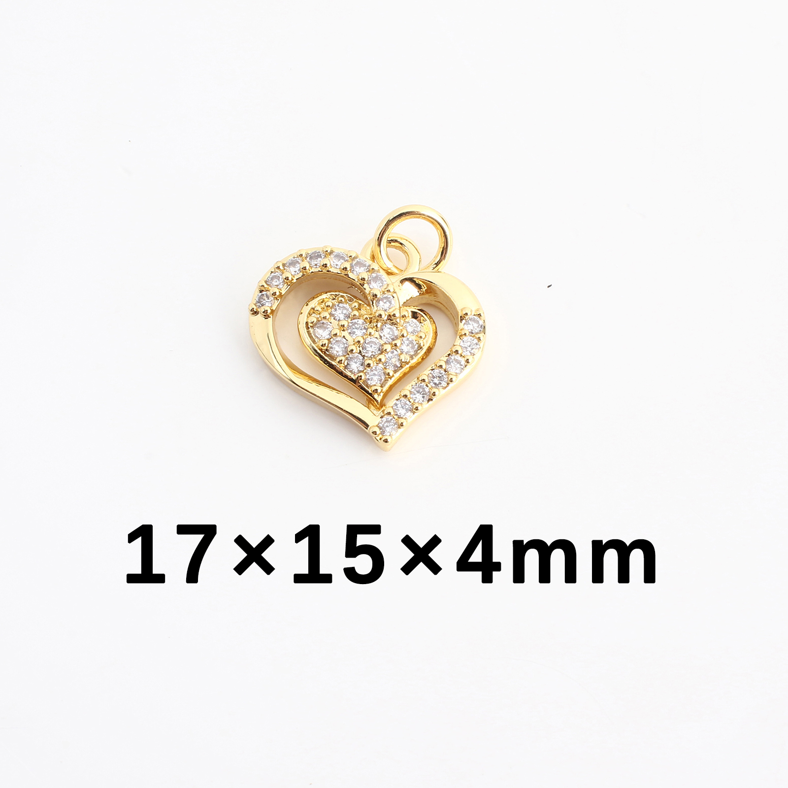 Cubic Zirconia Micro Pave Brass Pendant, Heart, DIY & micro pave cubic zirconia & hollow, golden, 17x15x4mm, Sold By PC