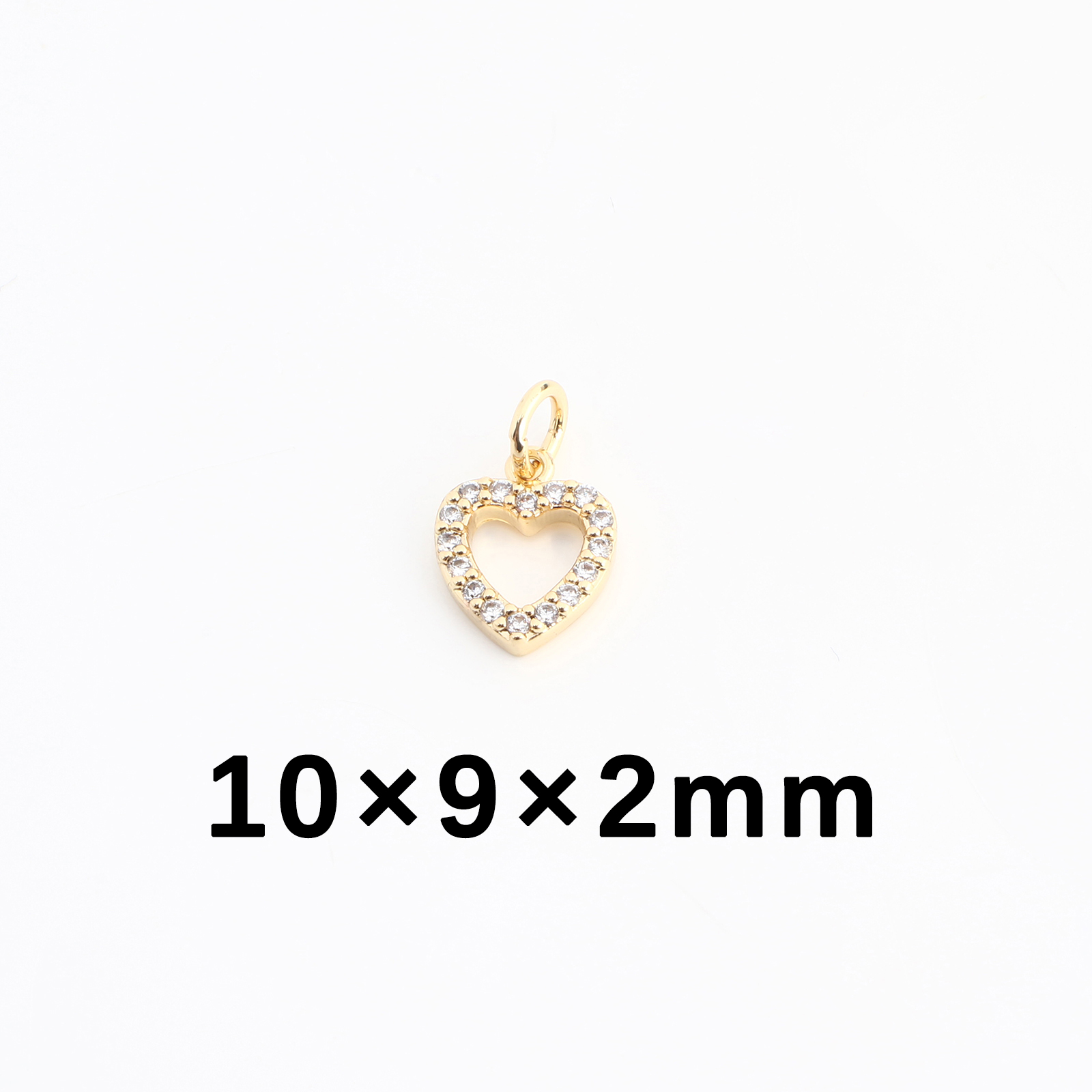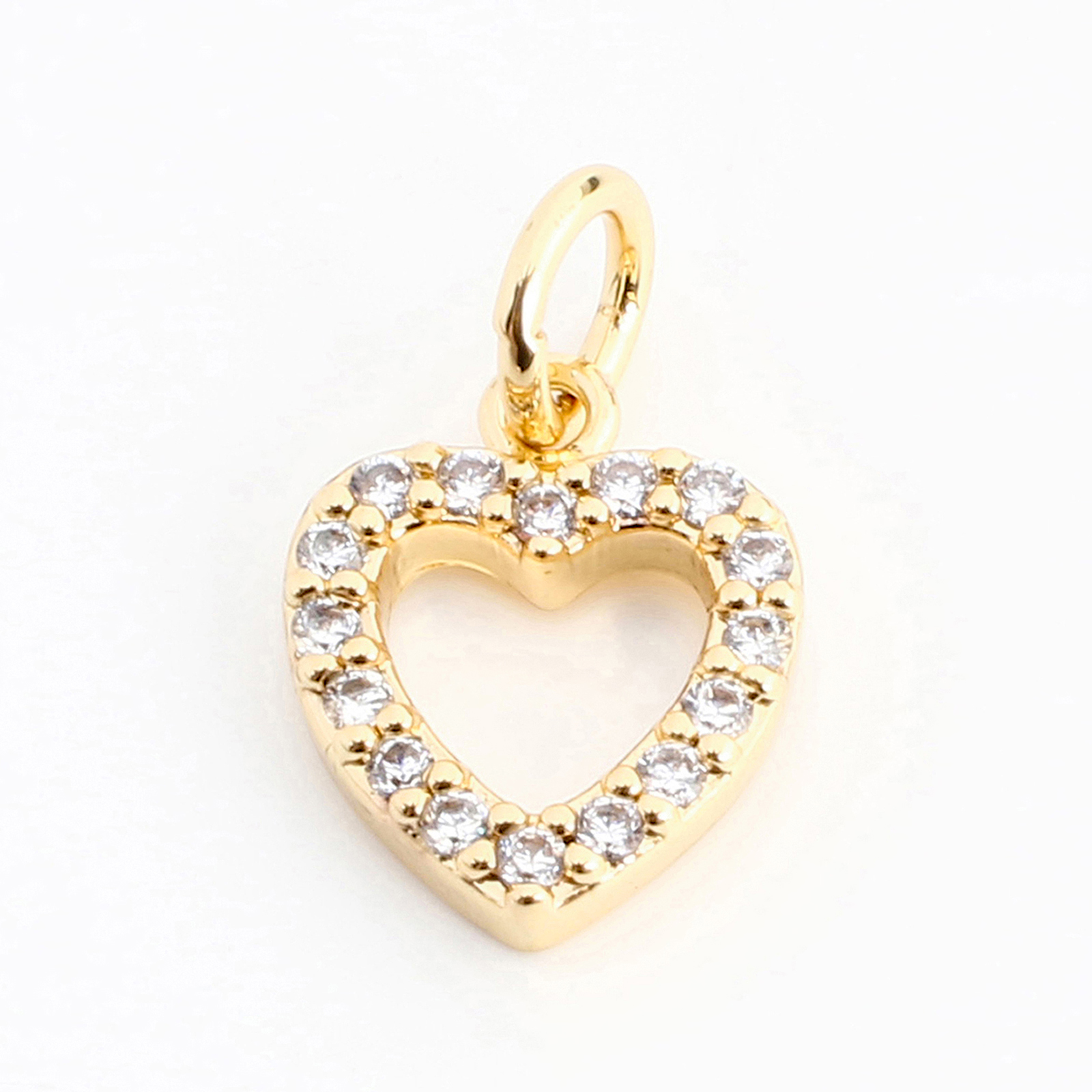 Cubic Zirconia Micro Pave Brass Pendant, Heart, DIY & micro pave cubic zirconia & hollow, golden, 10x9x2mm, Sold By PC