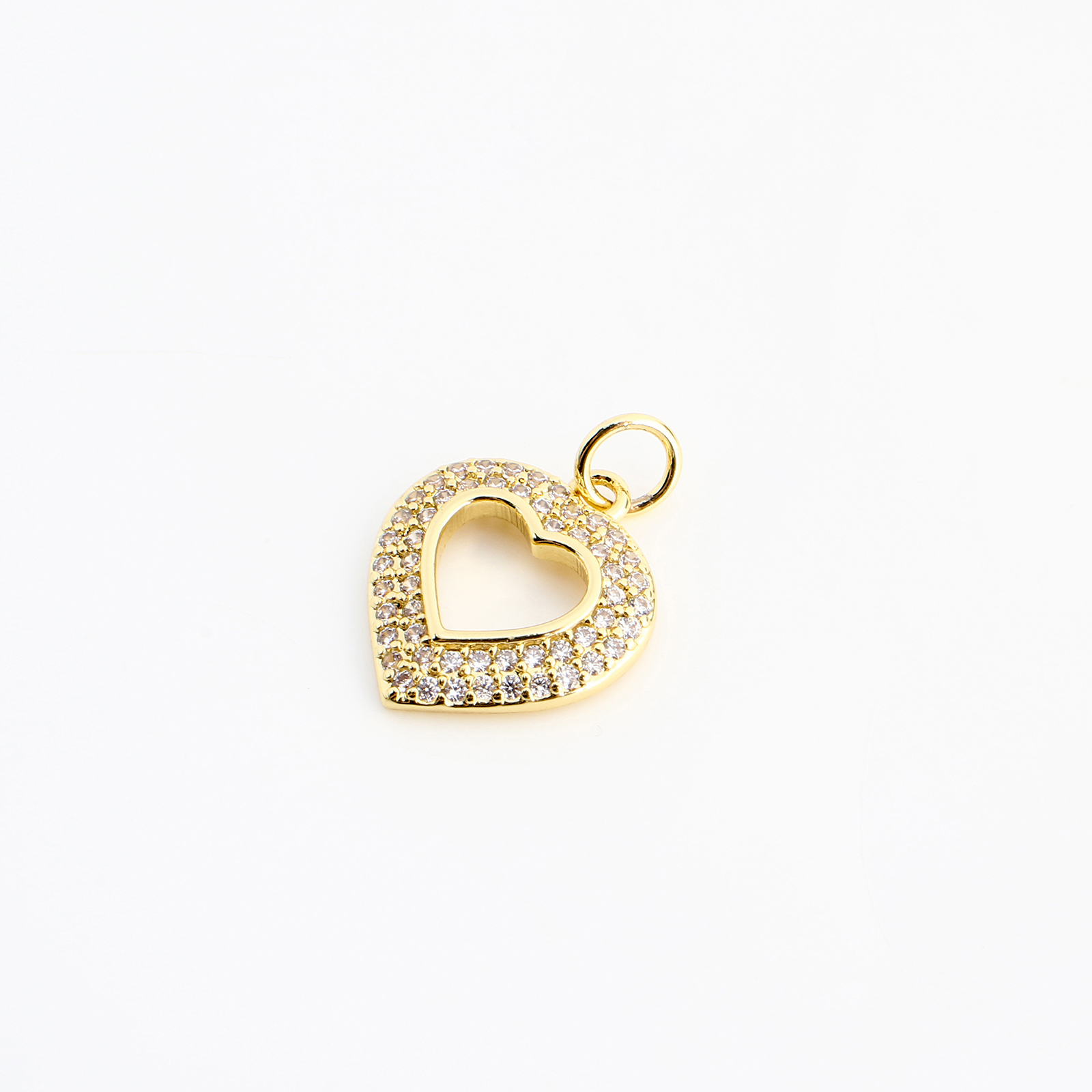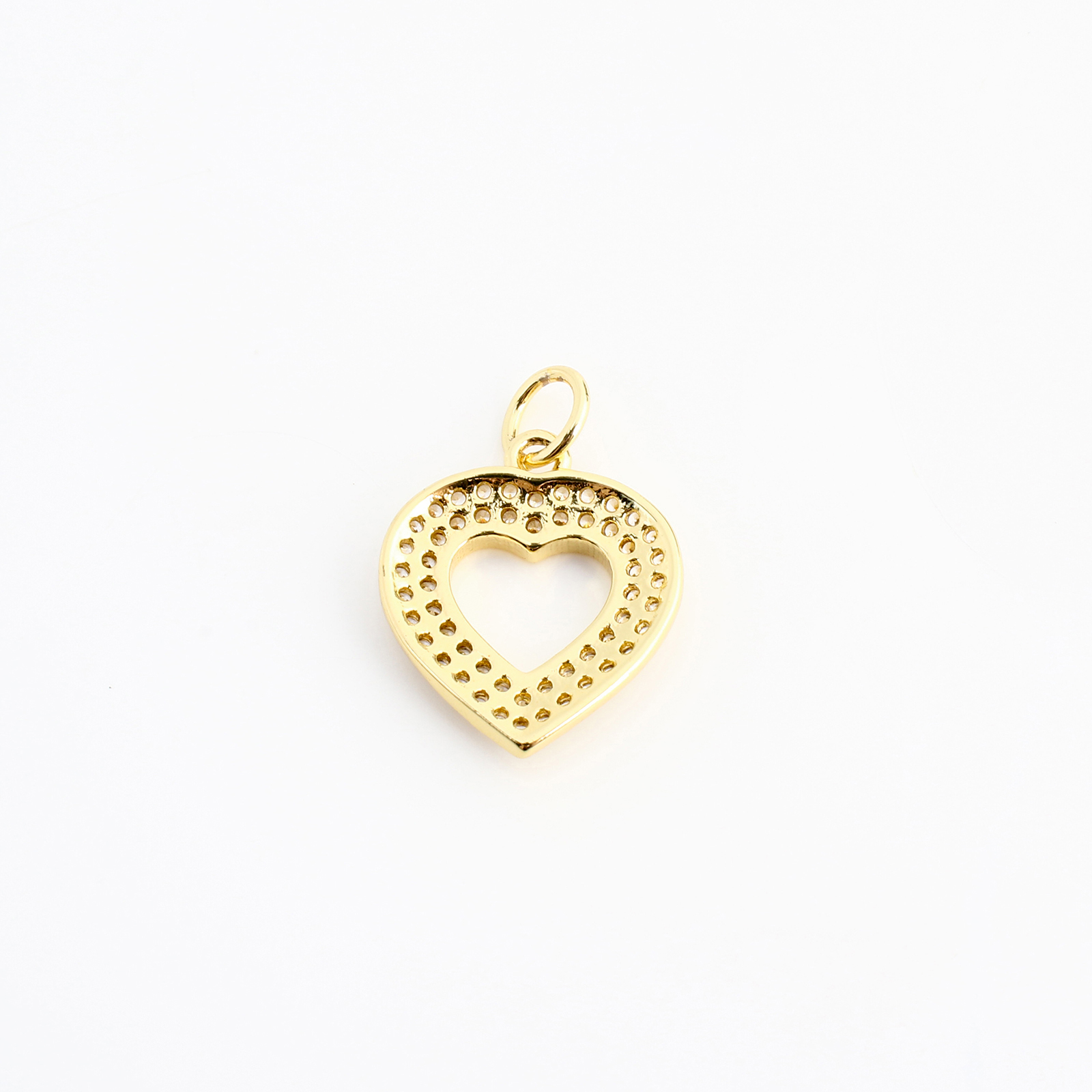 Cubic Zirconia Micro Pave Brass Pendant, Heart, DIY & micro pave cubic zirconia & hollow, golden, 15x14x2mm, Sold By PC