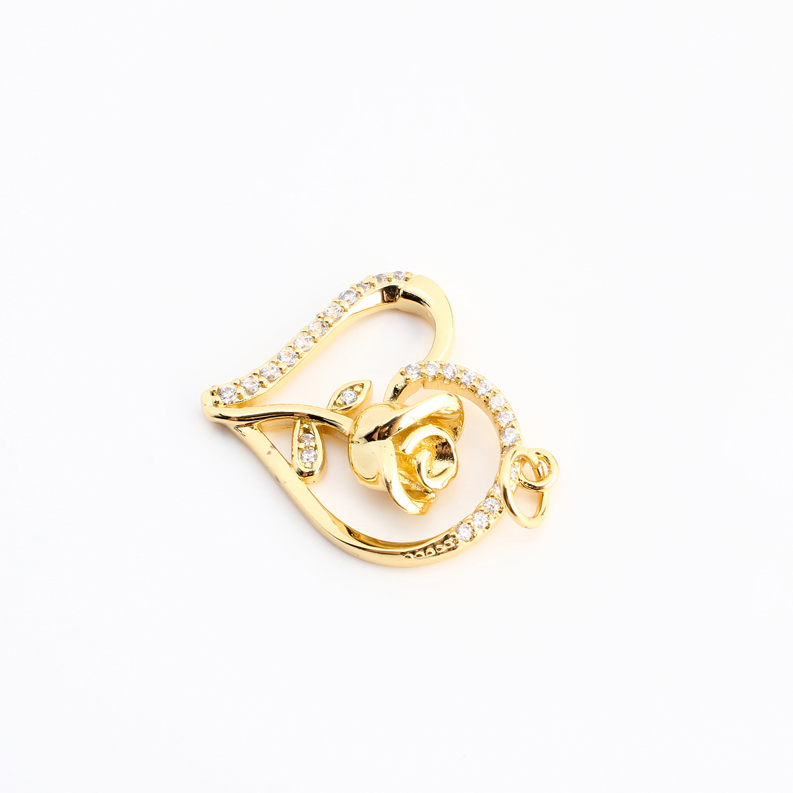 Cubic Zirconia Micro Pave Brass Pendant, petals, real gold plated, DIY & micro pave cubic zirconia 9mm