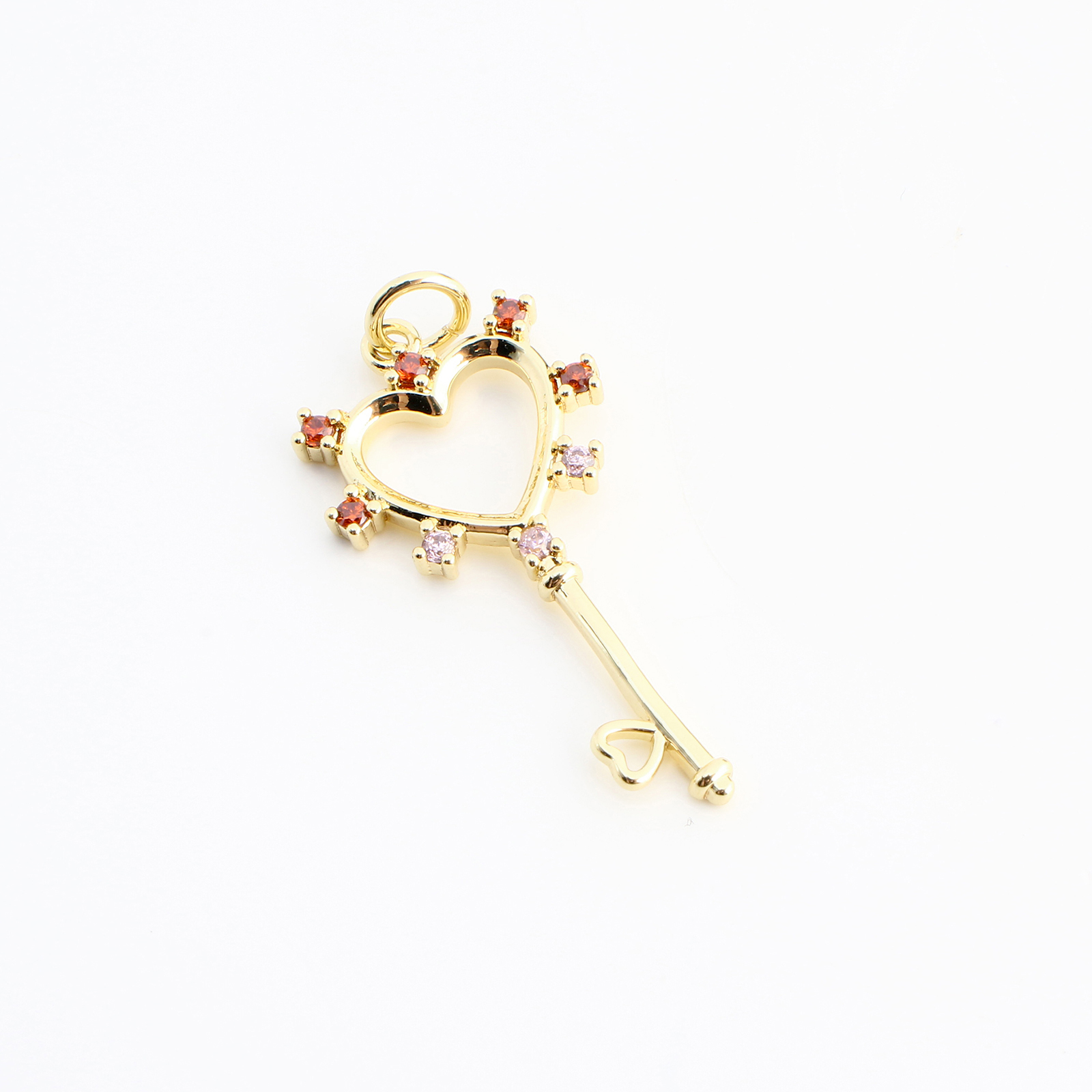 Cubic Zirconia Micro Pave Brass Pendant, Key, DIY & micro pave cubic zirconia & hollow, golden, 27x14x2mm, Sold By PC