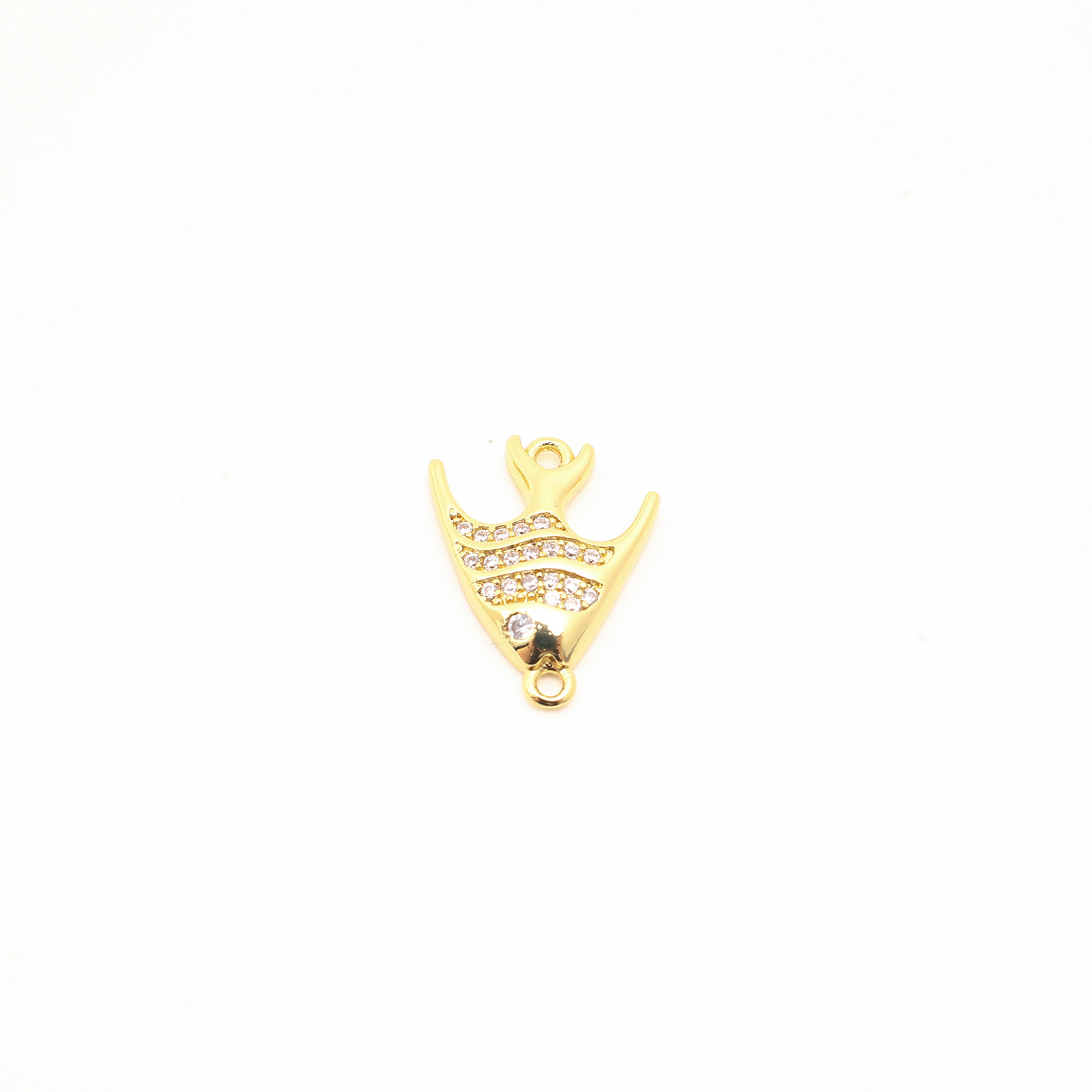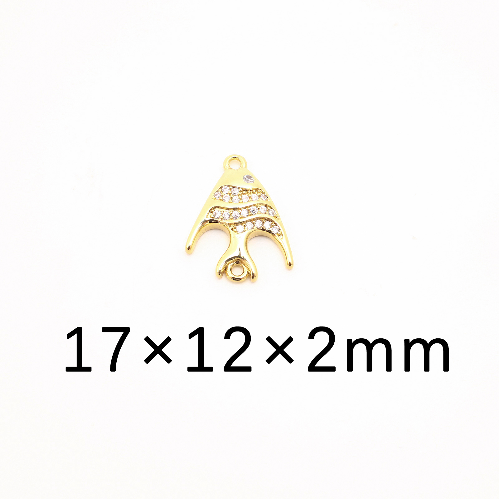 Cubic Zirconia Micro Pave Brass Pendant, Fish, DIY & micro pave cubic zirconia, golden, 17x12x2mm, Sold By PC