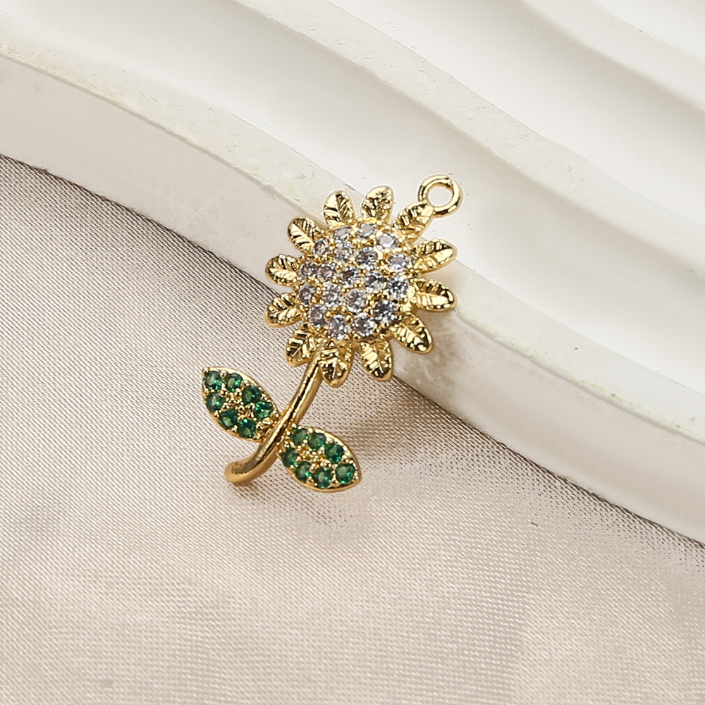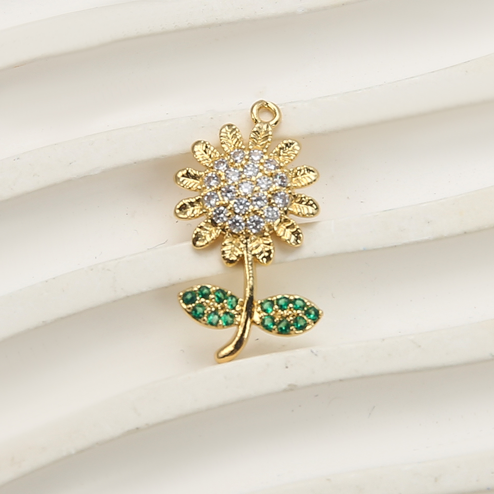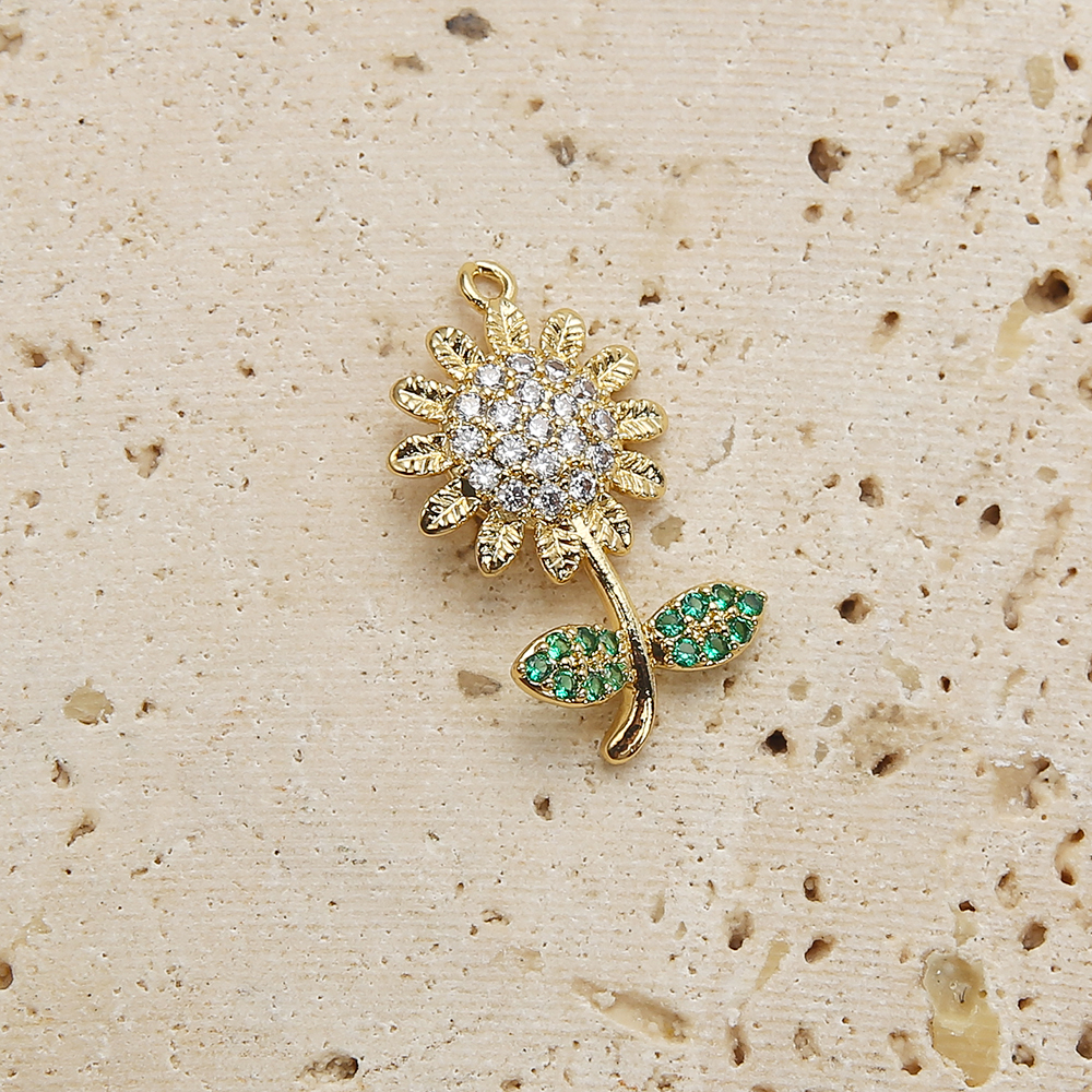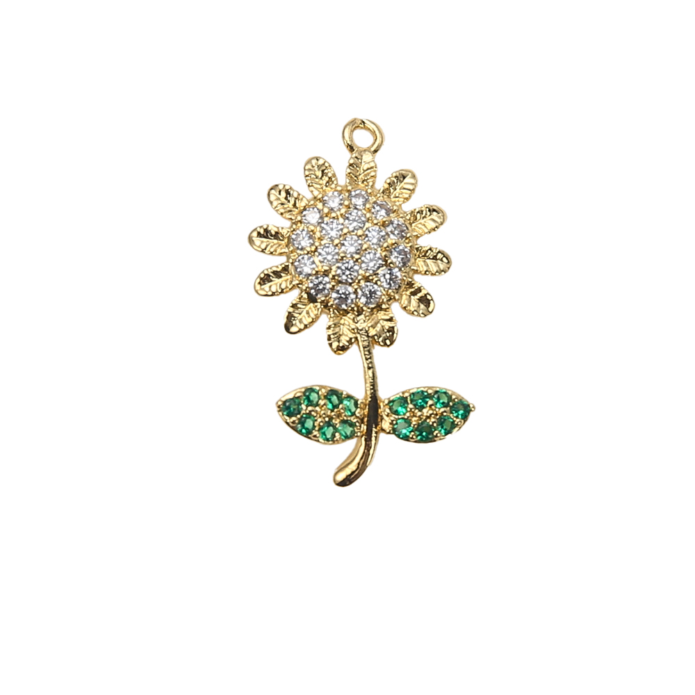 Cubic Zirconia Micro Pave Brass Pendant, Sunflower, gold color plated, DIY & micro pave cubic zirconia, golden, 15.24x3.07x24.17mm, 20PCs/Bag, Sold By Bag
