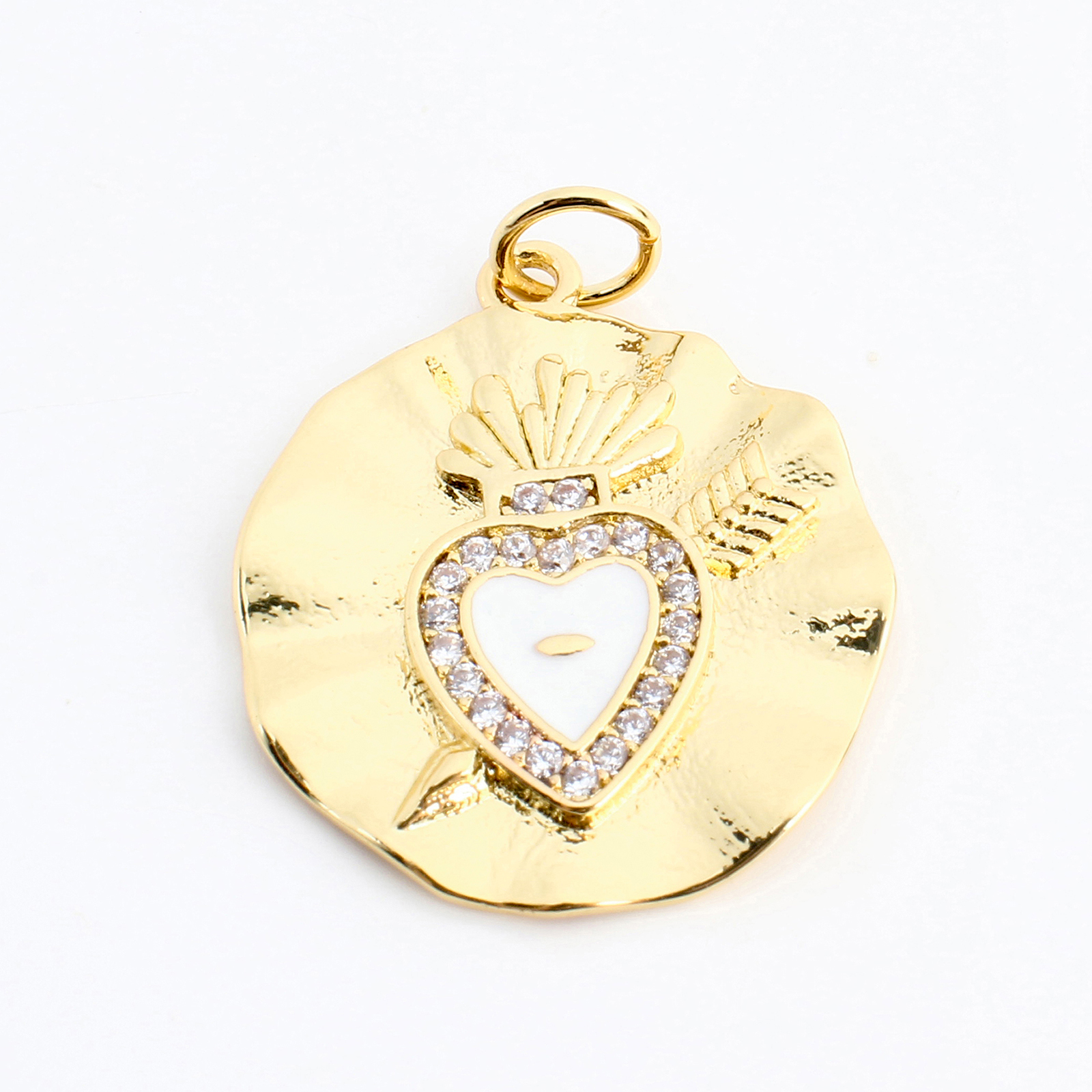 Cubic Zirconia Micro Pave Brass Pendant, Round, DIY & micro pave cubic zirconia, golden, 21x19x2mm, Sold By PC