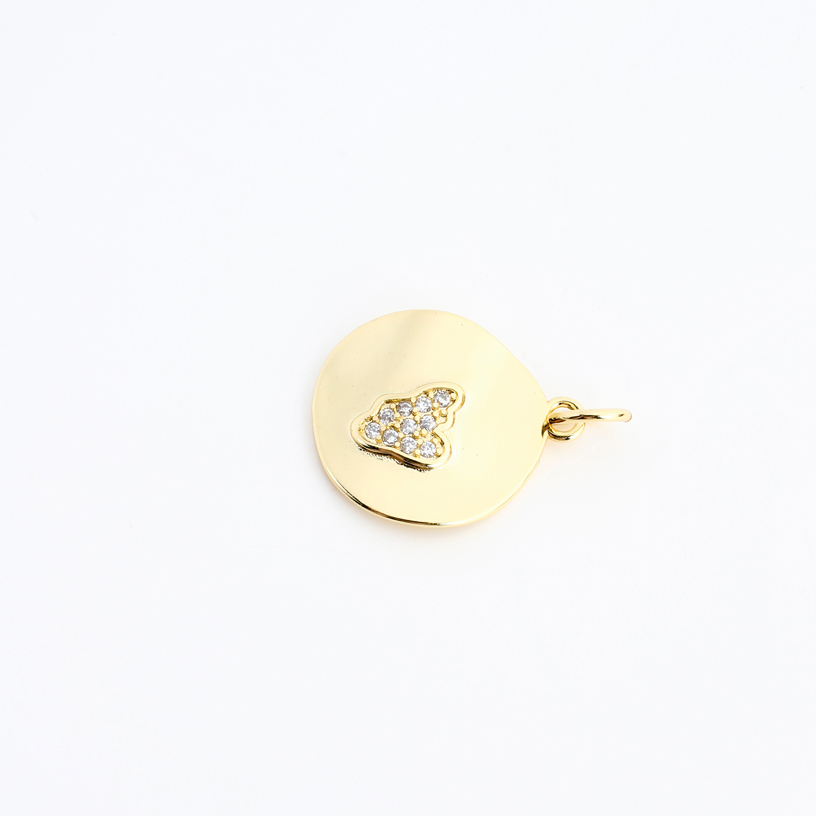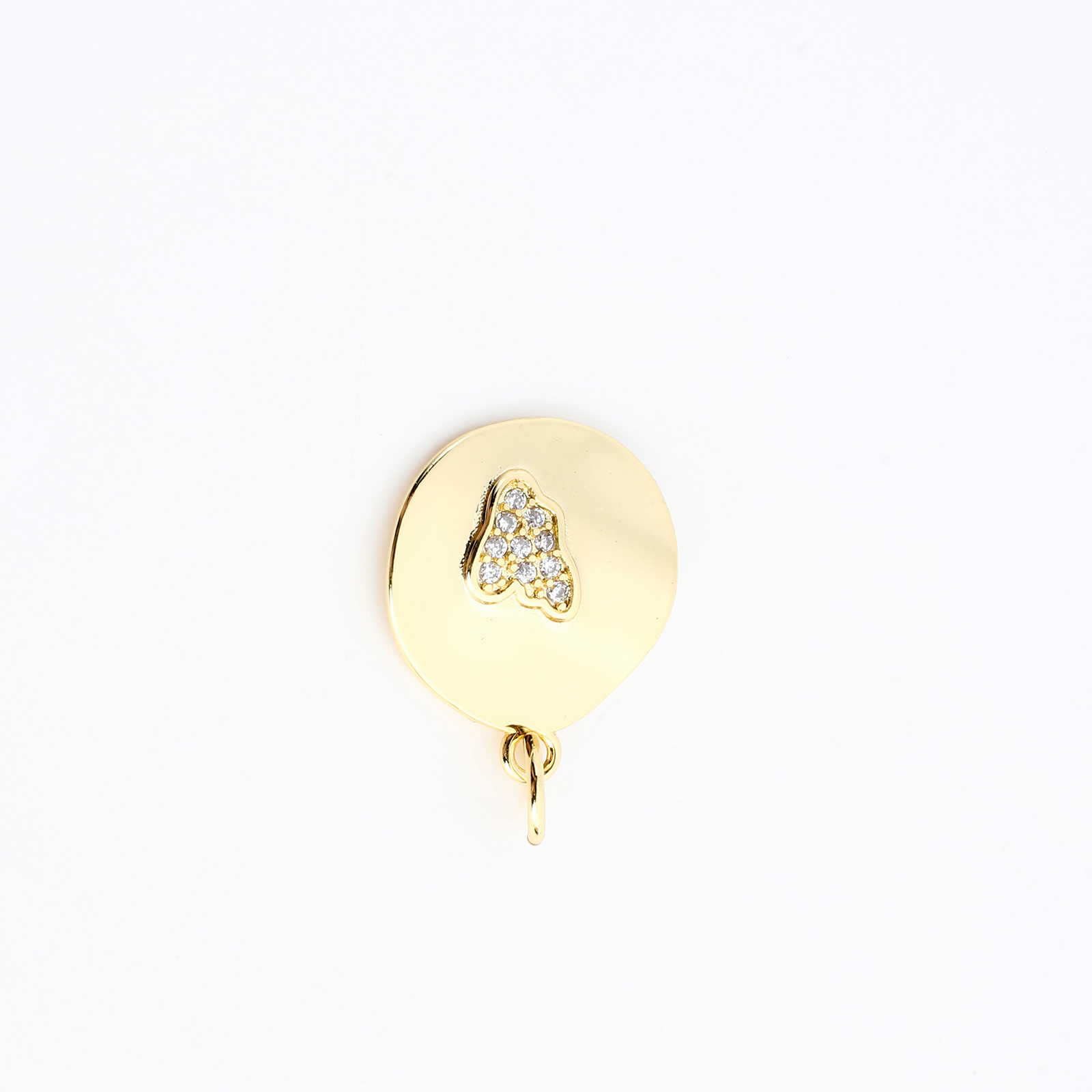 Cubic Zirconia Micro Pave Brass Pendant, Round, DIY & micro pave cubic zirconia, golden, 16x14x2mm, Sold By PC