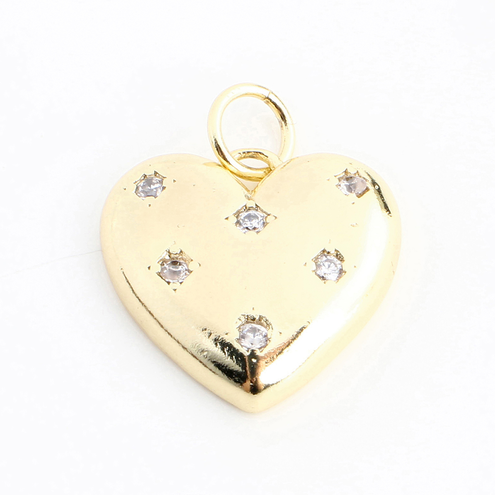 Cubic Zirconia Micro Pave Brass Pendant, Heart, DIY & micro pave cubic zirconia, golden, 15x15x3mm, Sold By PC
