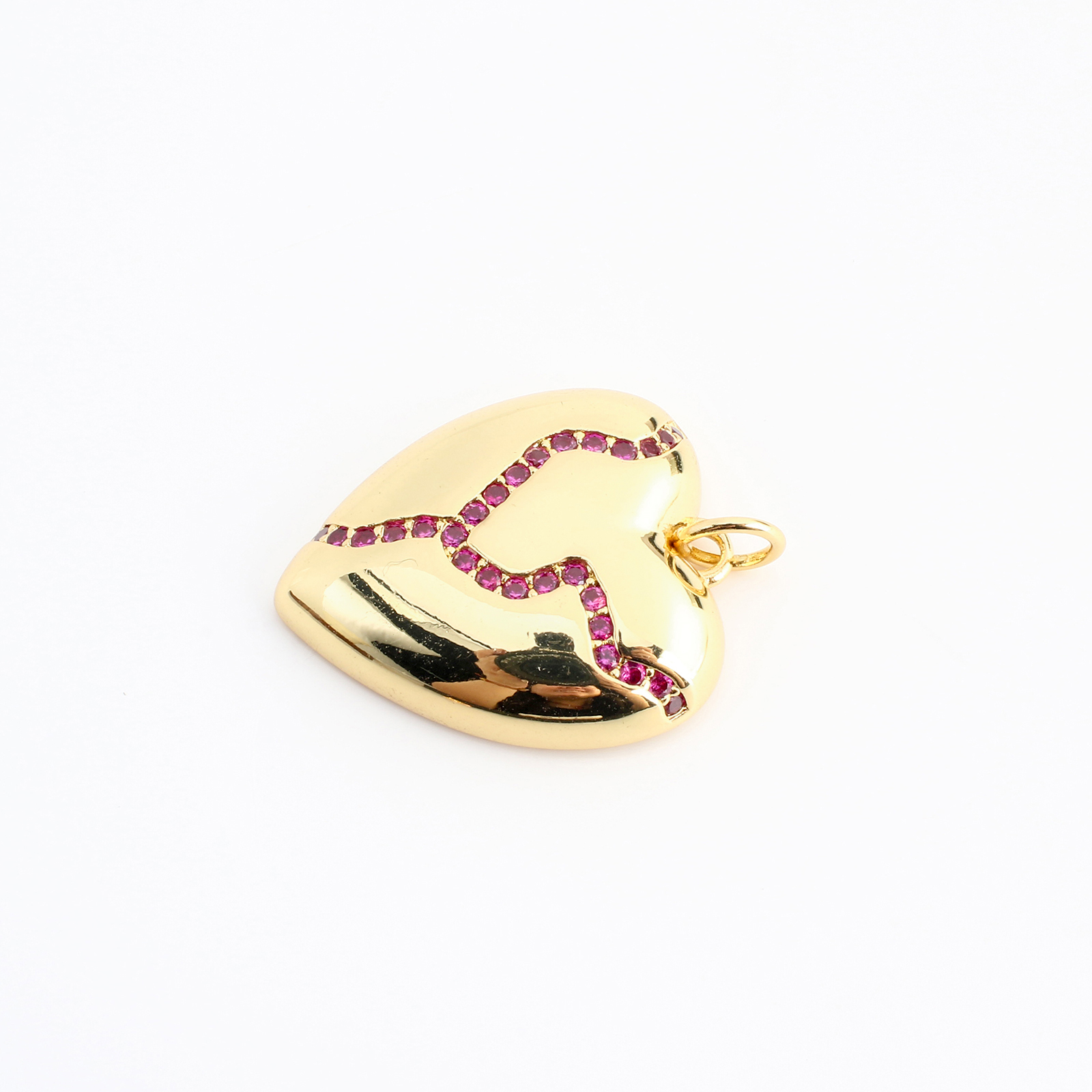 Cubic Zirconia Micro Pave Brass Pendant, Heart, DIY & micro pave cubic zirconia, golden, 20x17x4mm, Sold By PC