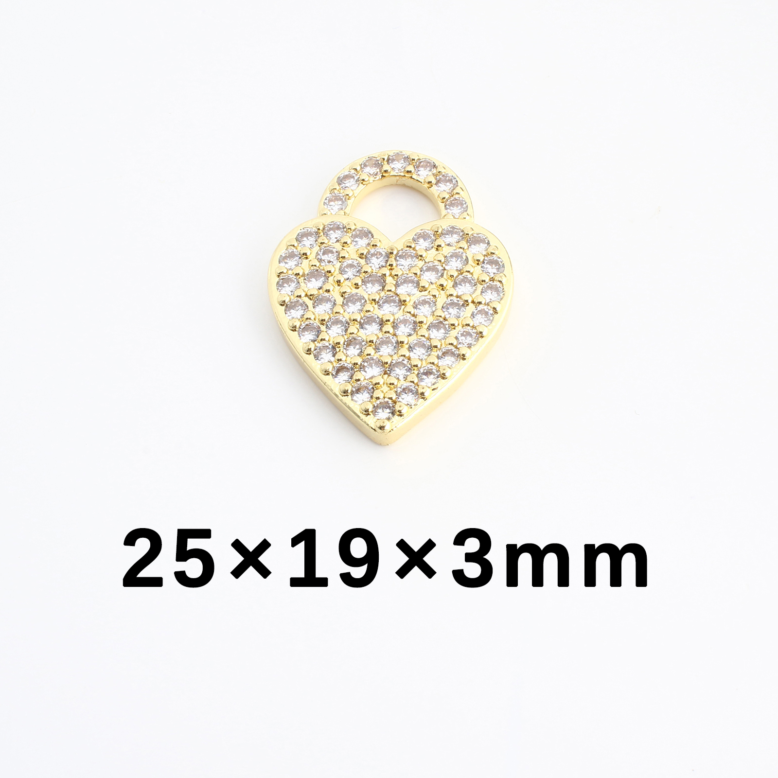 Cubic Zirconia Micro Pave Brass Pendant, Heart, DIY & micro pave cubic zirconia, golden, 25x19x3mm, Sold By PC
