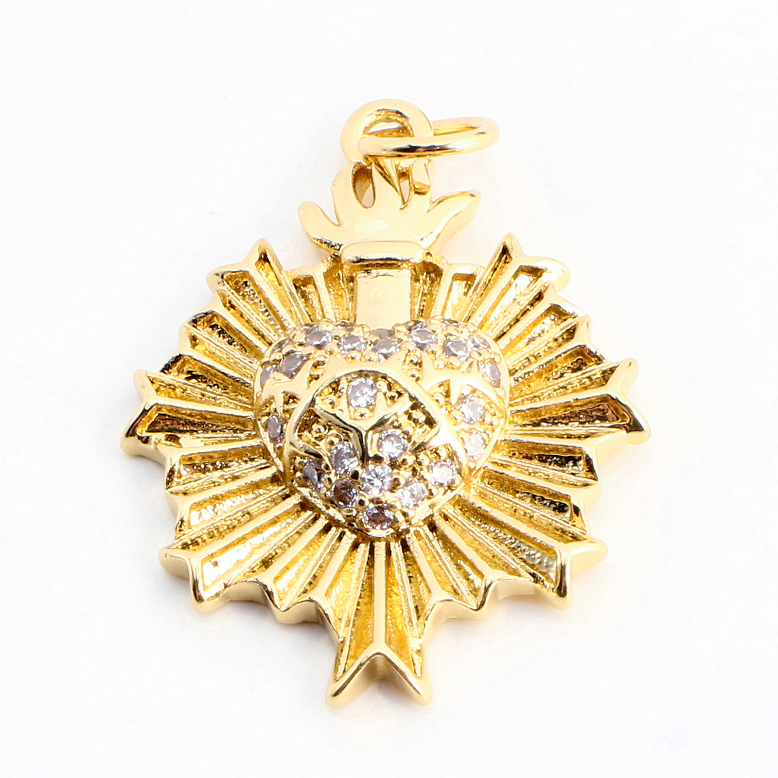 Cubic Zirconia Micro Pave Brass Pendant, DIY & micro pave cubic zirconia, golden, 23x18x4mm, Sold By PC