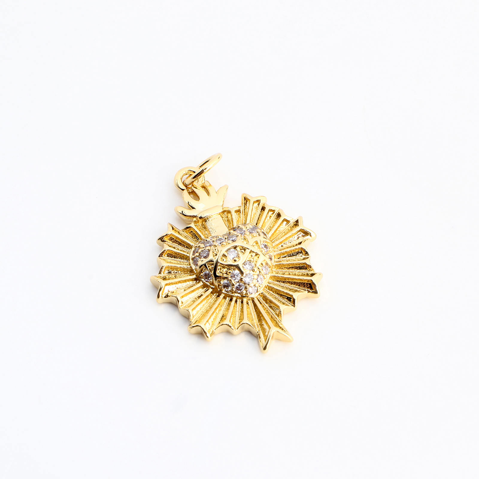 Cubic Zirconia Micro Pave Brass Pendant, petals, real gold plated, DIY & micro pave cubic zirconia 9mm