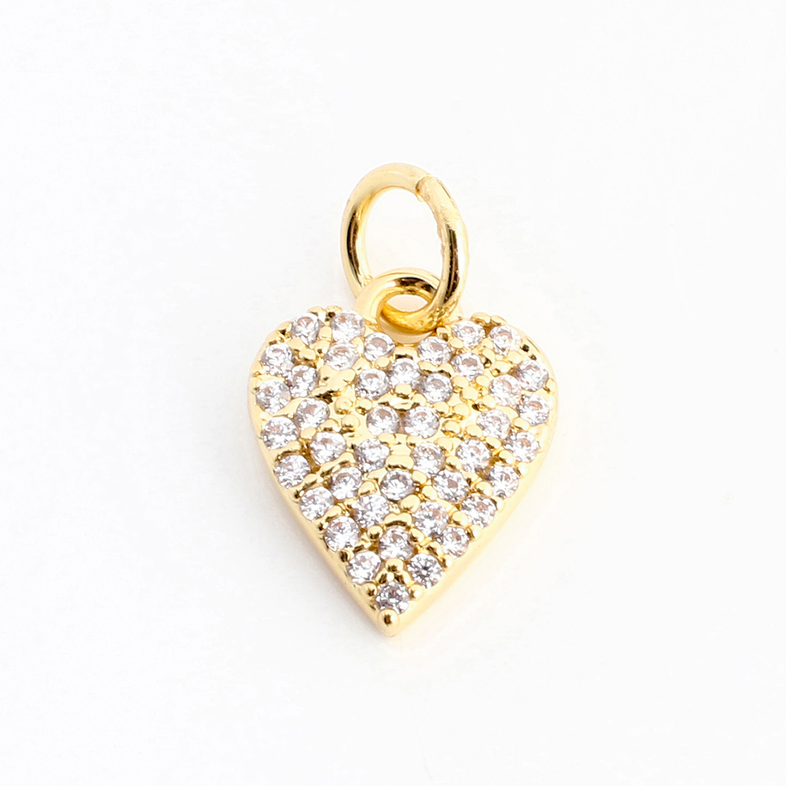 Cubic Zirconia Micro Pave Brass Pendant, Heart, DIY & micro pave cubic zirconia, golden, 11x9x2mm, Sold By PC