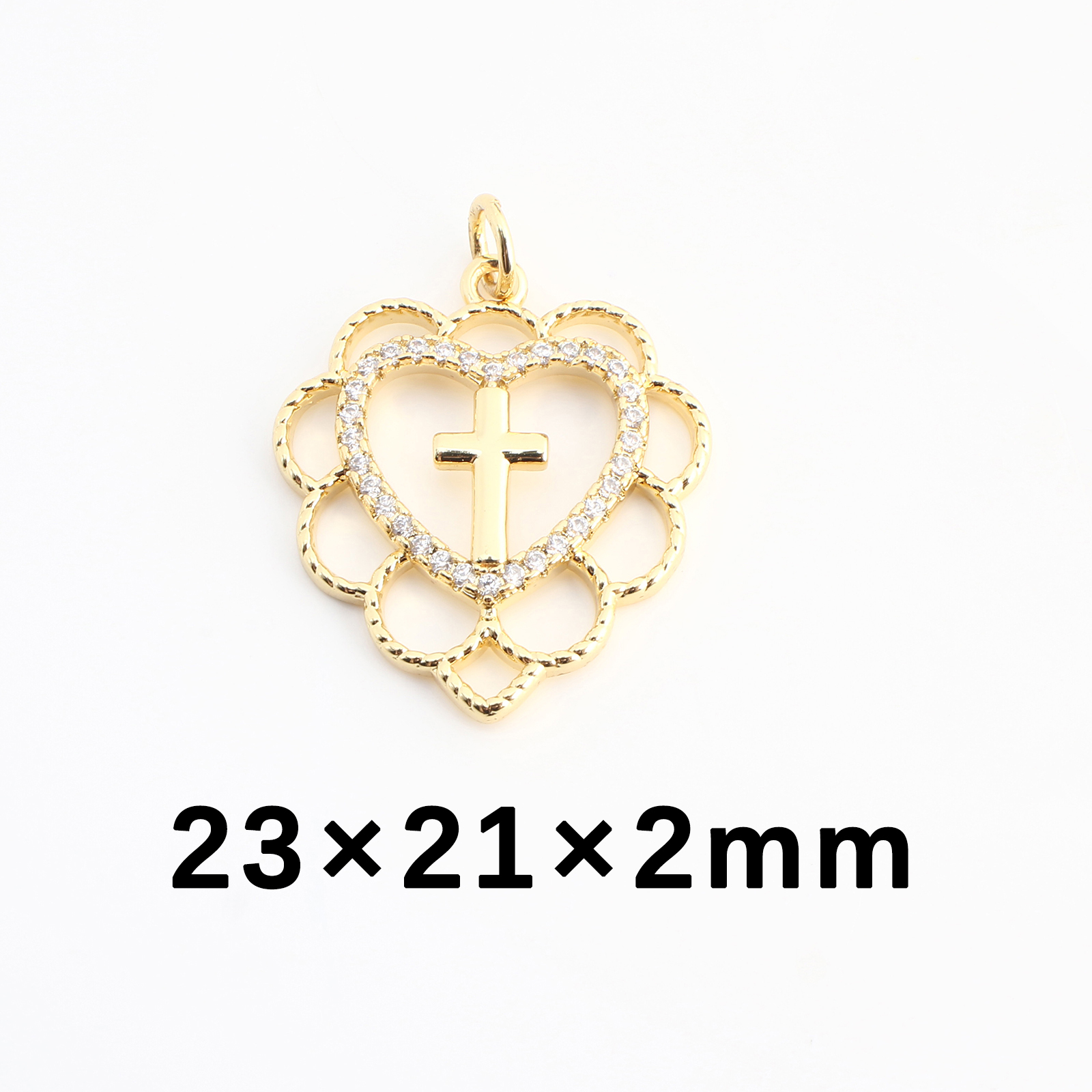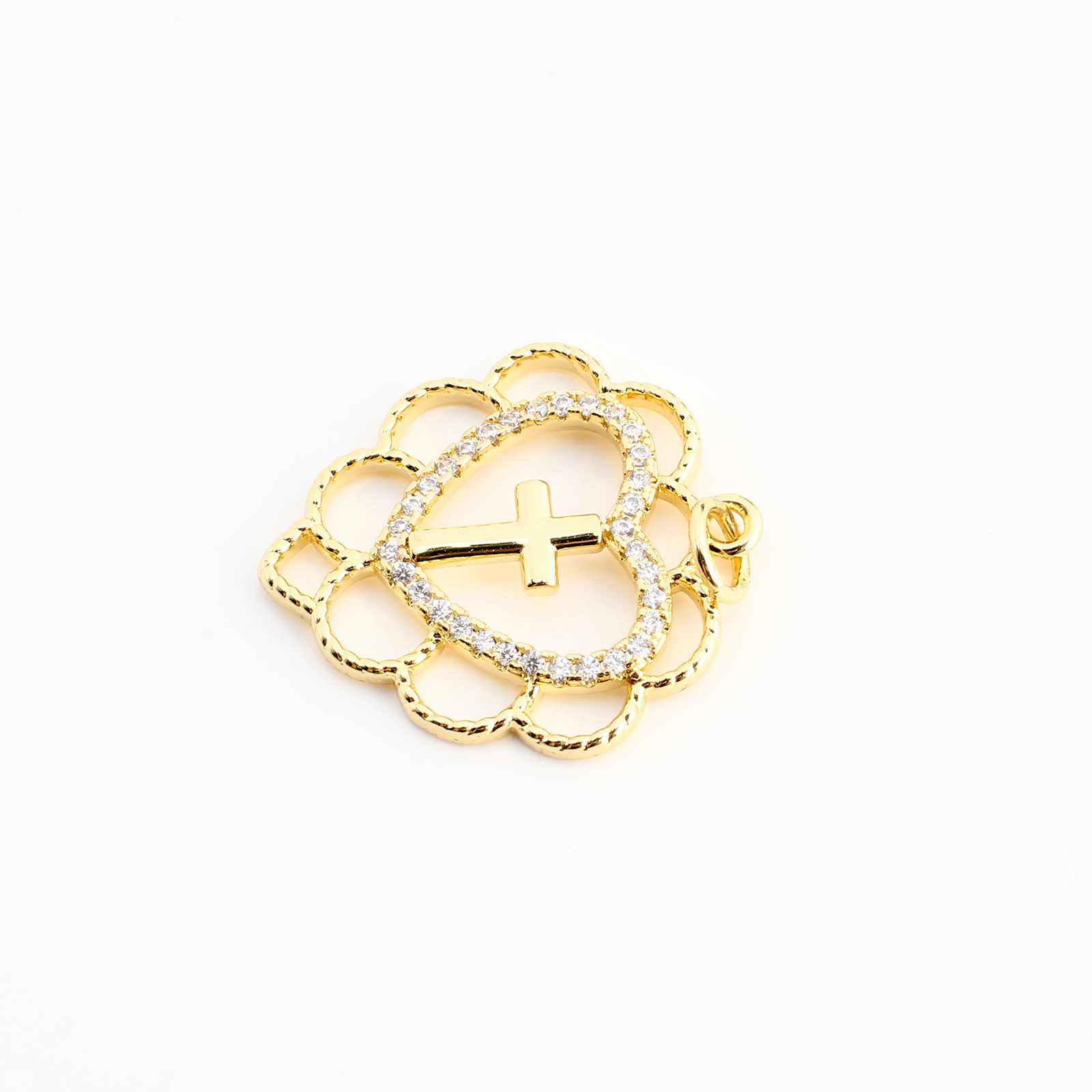 Cubic Zirconia Micro Pave Brass Pendant, DIY & micro pave cubic zirconia & hollow, golden, 23x21x2mm, Sold By PC