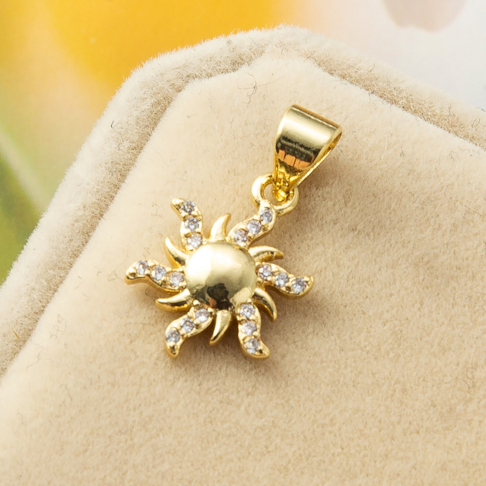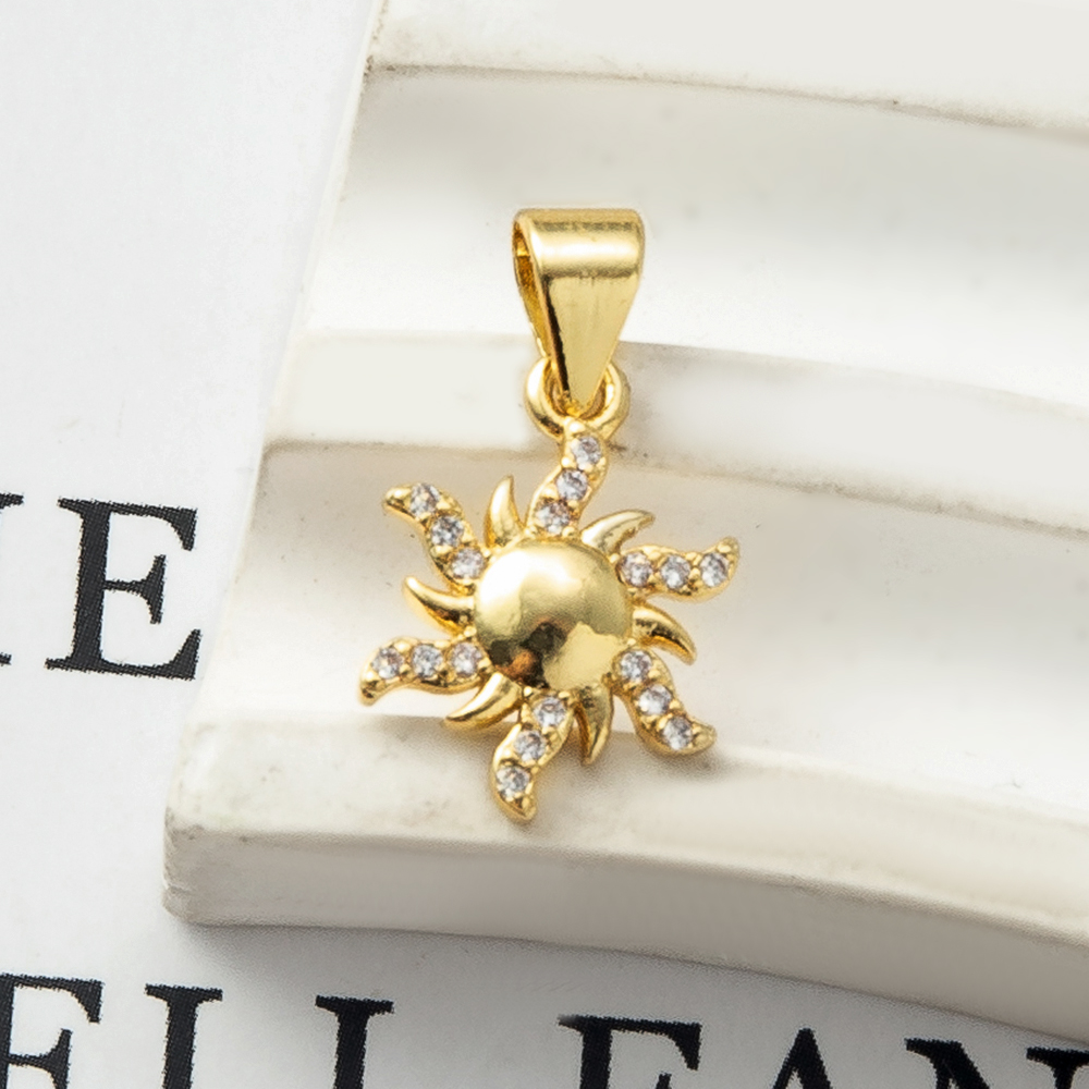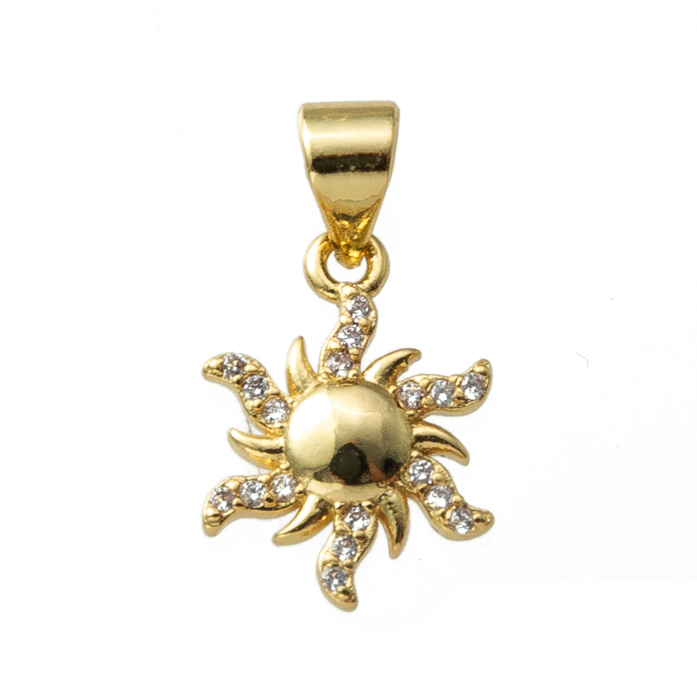 Cubic Zirconia Micro Pave Brass Pendant, Sun, plated, fashion jewelry & micro pave cubic zirconia, golden, nickel, lead & cadmium free, 10.66x2.25x19mm, Sold By PC