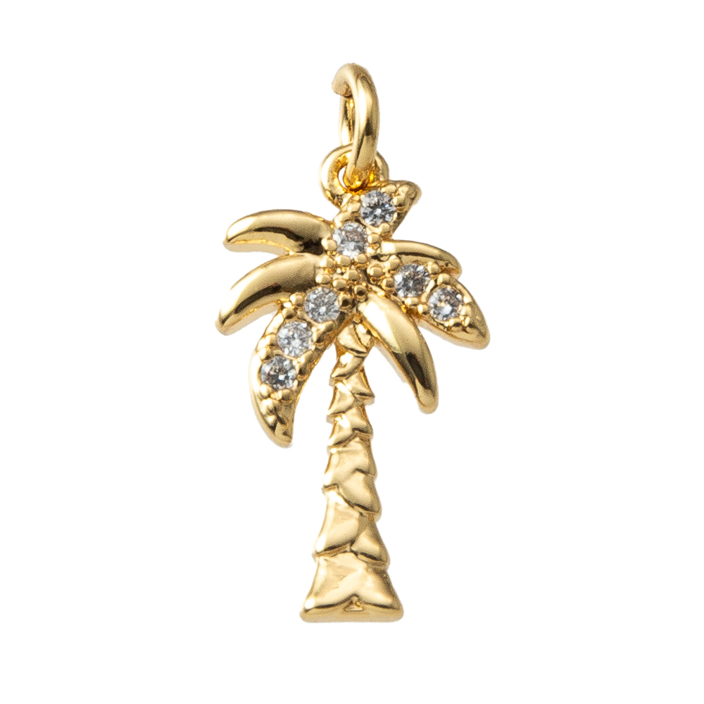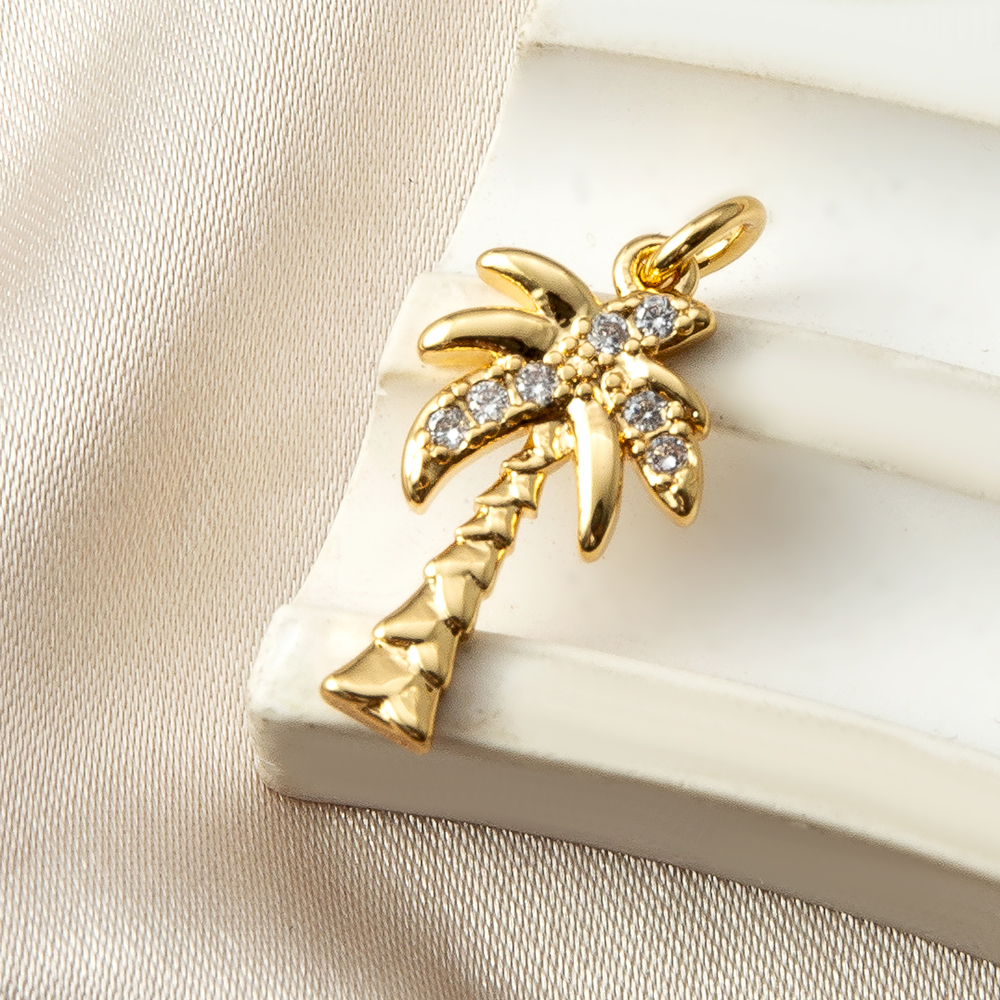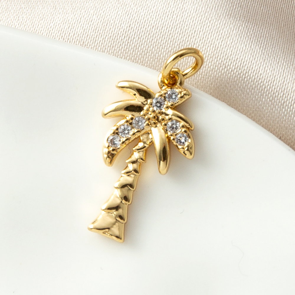 Cubic Zirconia Micro Pave Brass Pendant, Palm Tree, plated, fashion jewelry & micro pave cubic zirconia, golden, nickel, lead & cadmium free, 10.85x1.9x22.3mm, Sold By PC