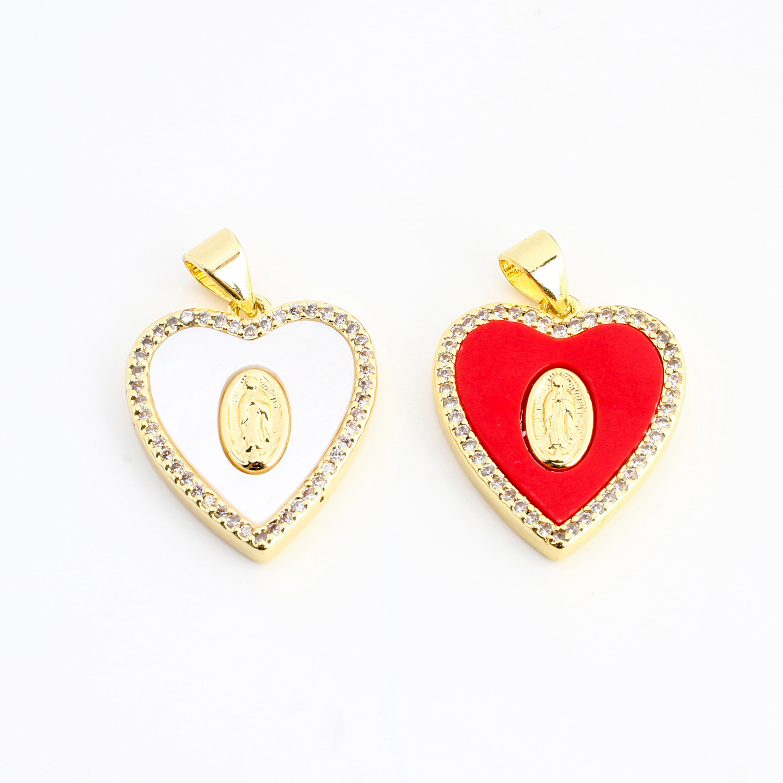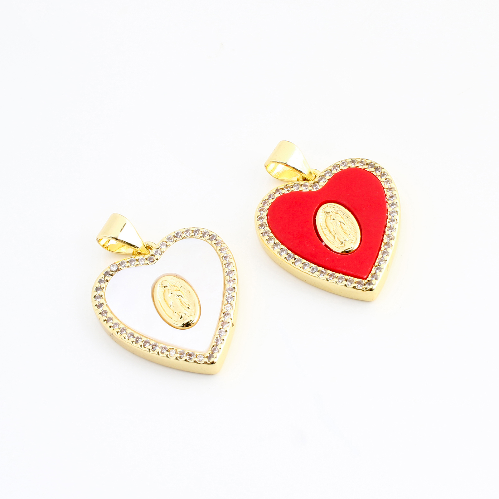 Cubic Zirconia Micro Pave Brass Pendant, with Acrylic, Heart, gold color plated, DIY & micro pave cubic zirconia, more colors for choice, 24x17x4mm, Sold By PC