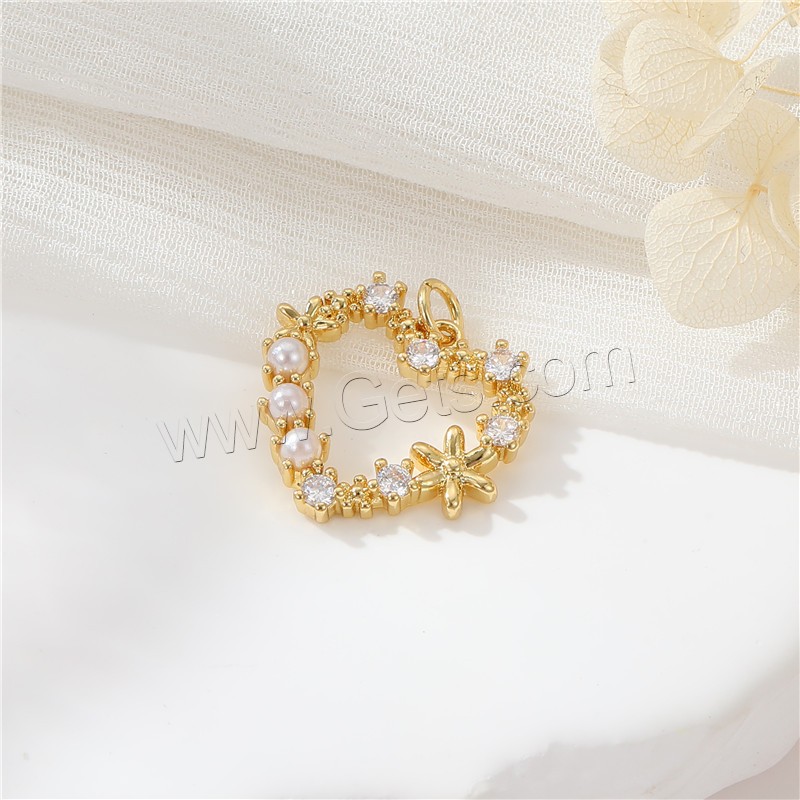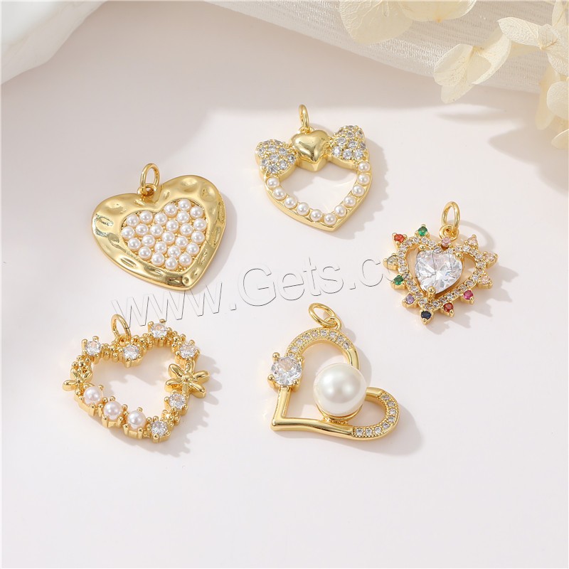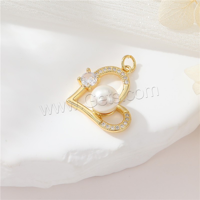 Cubic Zirconia Micro Pave Brass Pendant, with Plastic Pearl, plated, DIY & different styles for choice & micro pave cubic zirconia, golden, Sold By PC