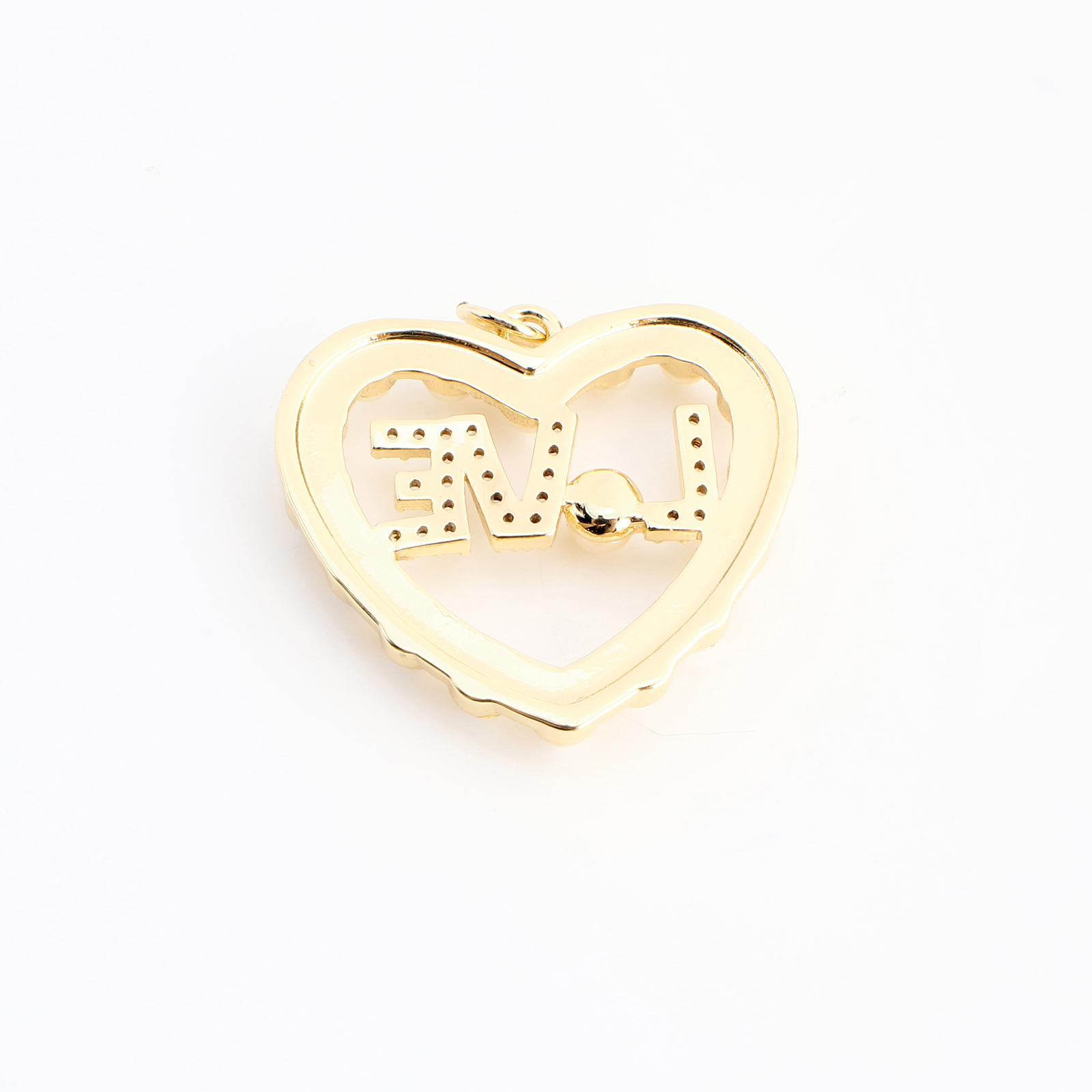 Cubic Zirconia Micro Pave Brass Pendant, with Plastic Pearl, Heart, DIY & micro pave cubic zirconia & hollow, golden, 23x26x5mm, Sold By PC