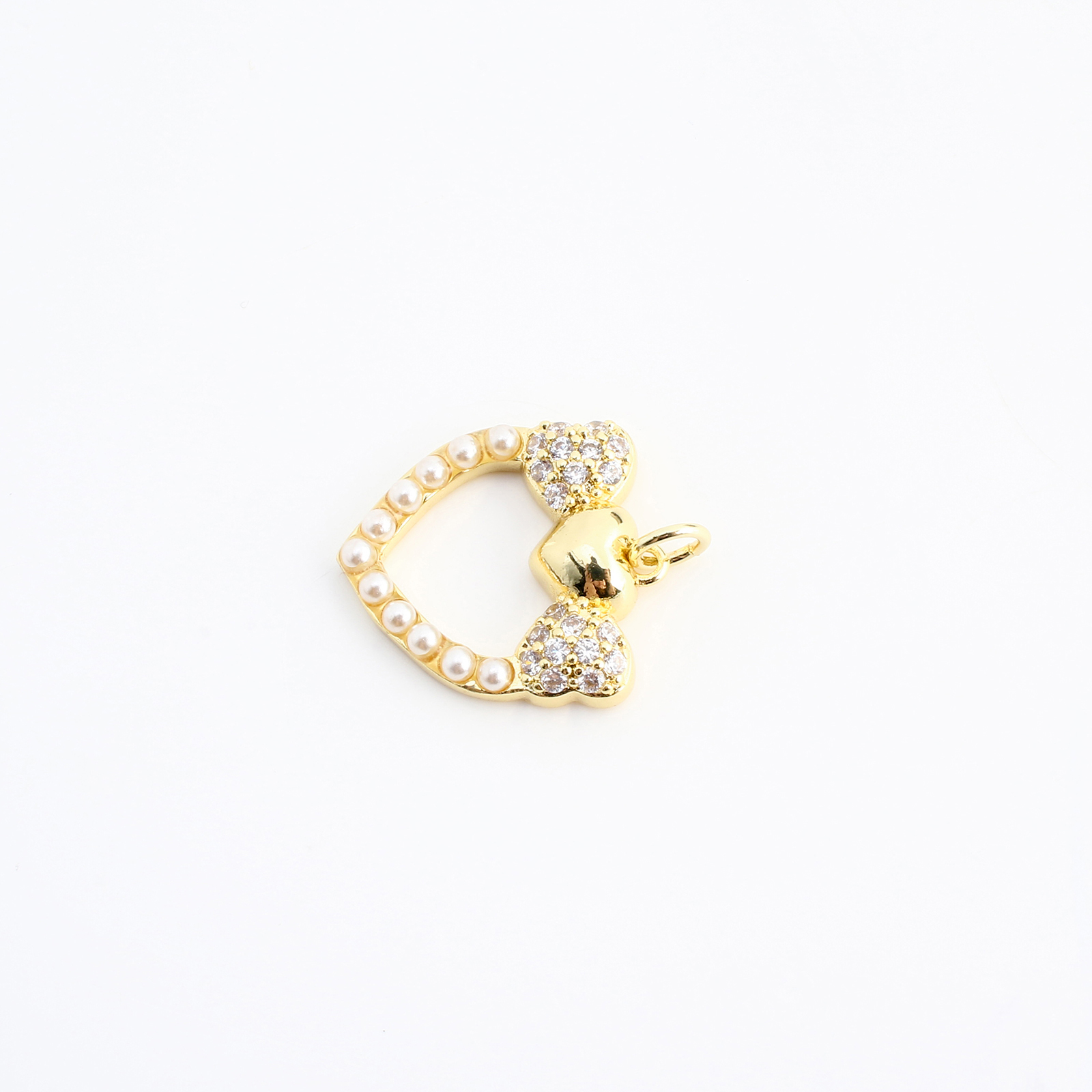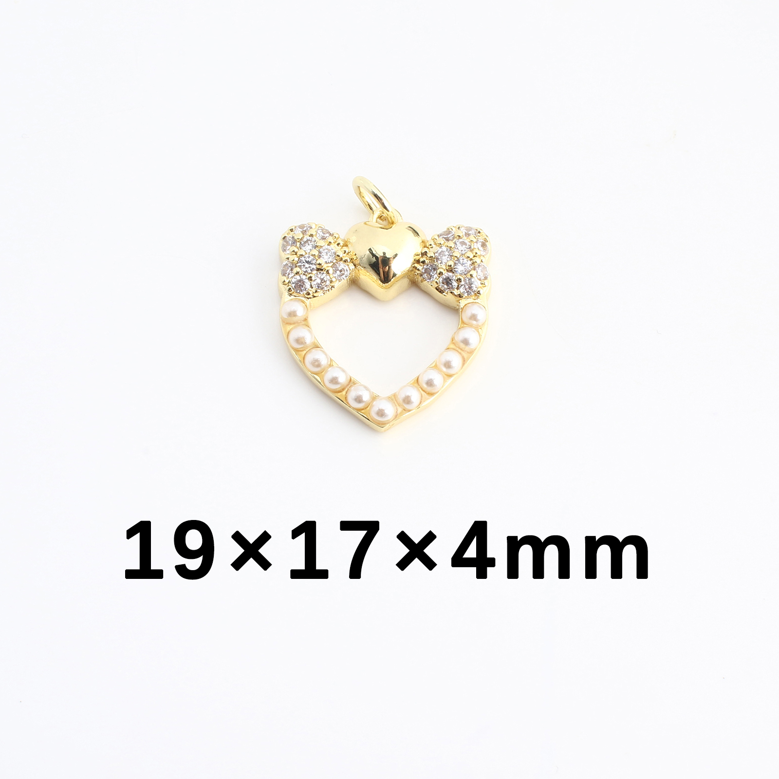 Cubic Zirconia Micro Pave Brass Pendant, with Plastic Pearl, Heart, DIY & micro pave cubic zirconia & hollow, golden, 19x17x4mm, Sold By PC