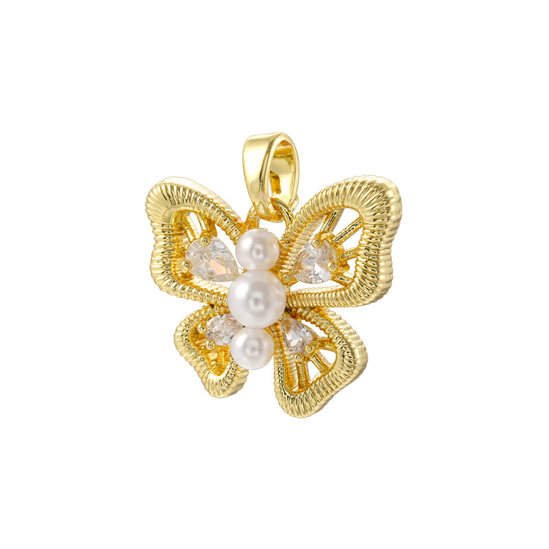 Cubic Zirconia Micro Pave Brass Pendant, with Plastic Pearl, gold color plated, DIY & different styles for choice & micro pave cubic zirconia & hollow, Sold By PC
