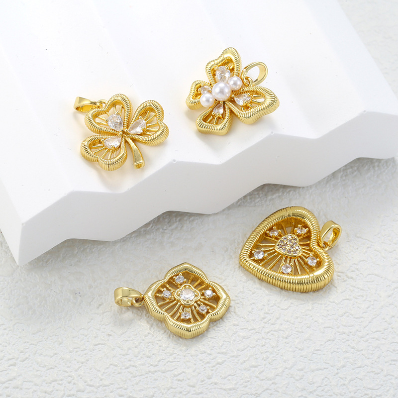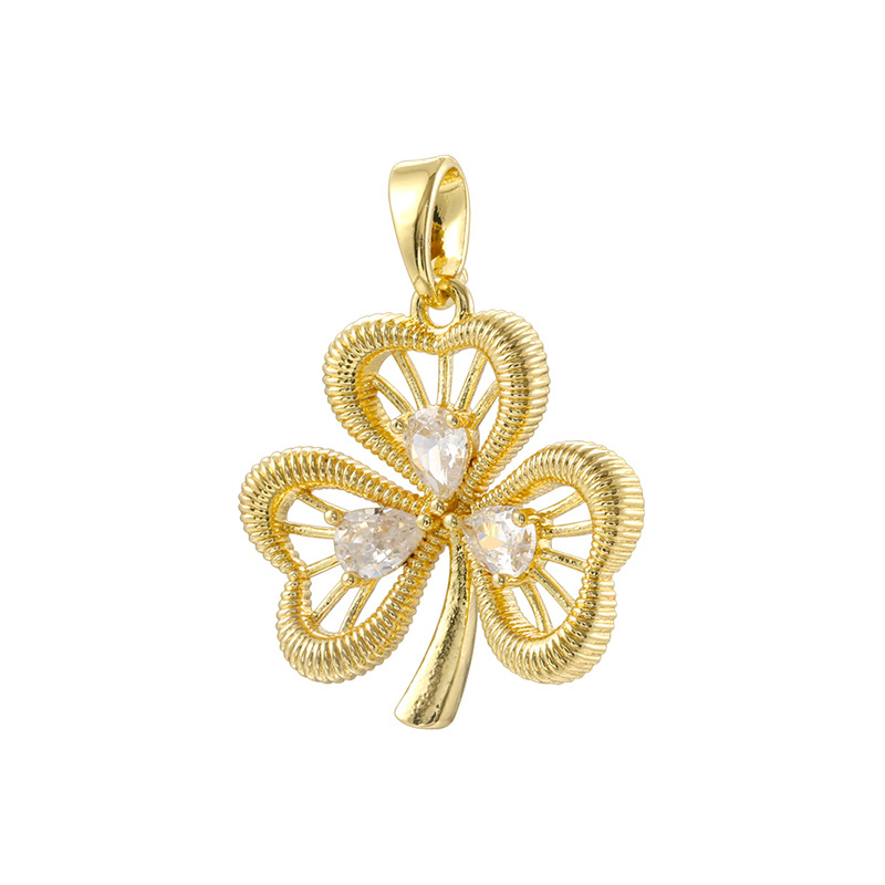 Cubic Zirconia Micro Pave Brass Pendant, Four Leaf Clover, plated, DIY & micro pave cubic zirconia